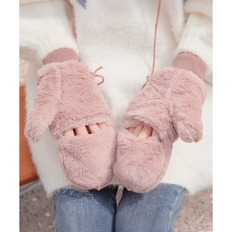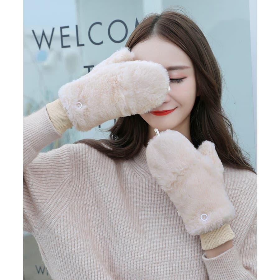 フワフワのエコファーで、シーズンライクに仕上げた裏起毛ミトングローブ。