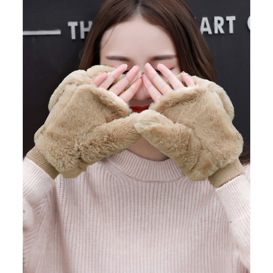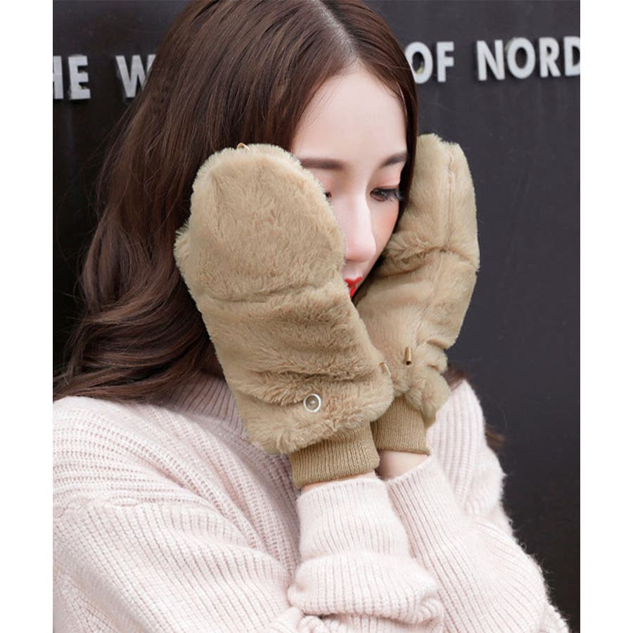 ミトンカバー付手袋 保温裏フリース厚手 お出かけ 冷え対策