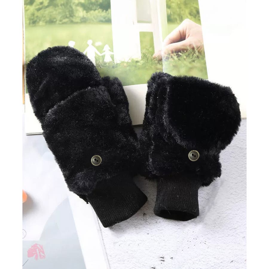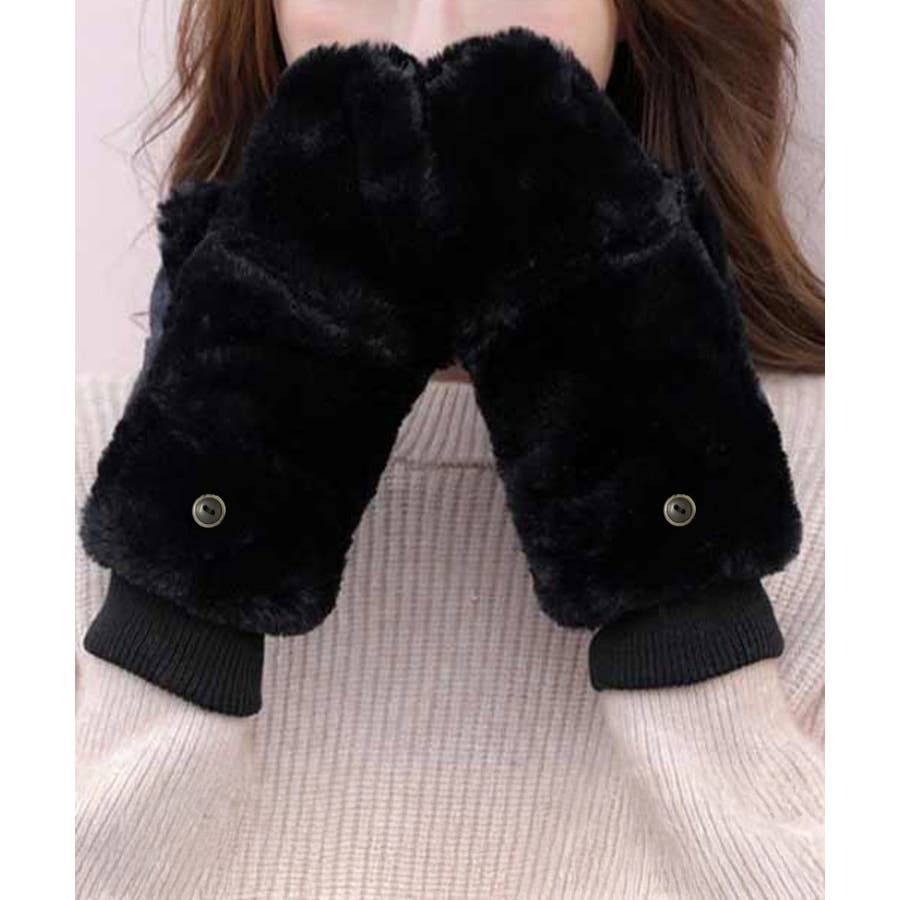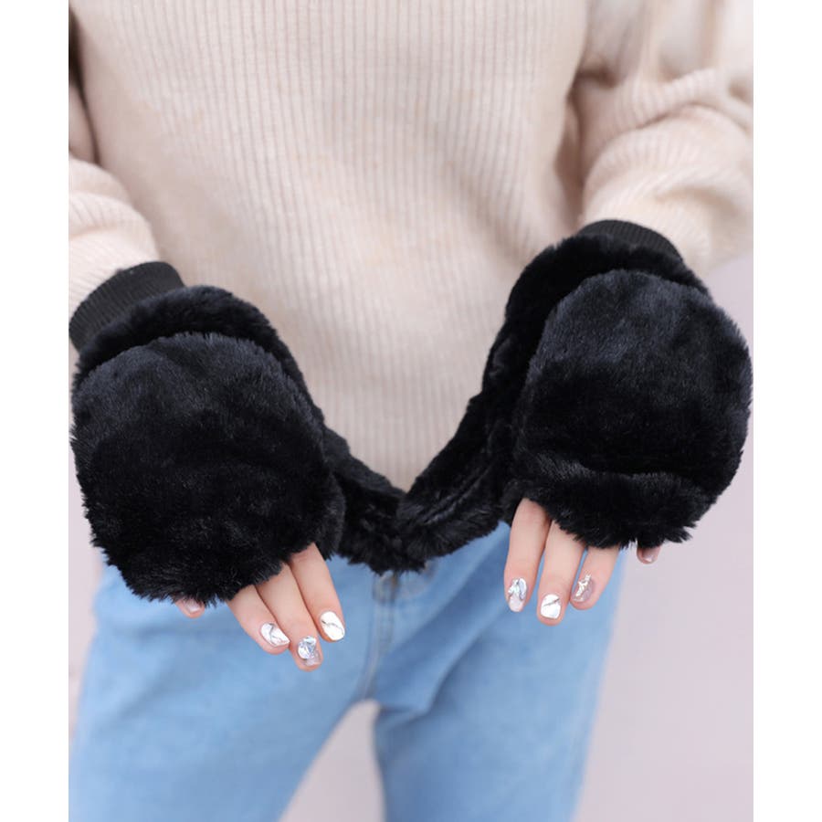 【ブラック】ボア手袋 裏起毛ミトングローブ あったか
