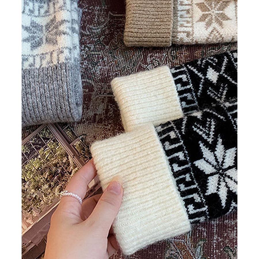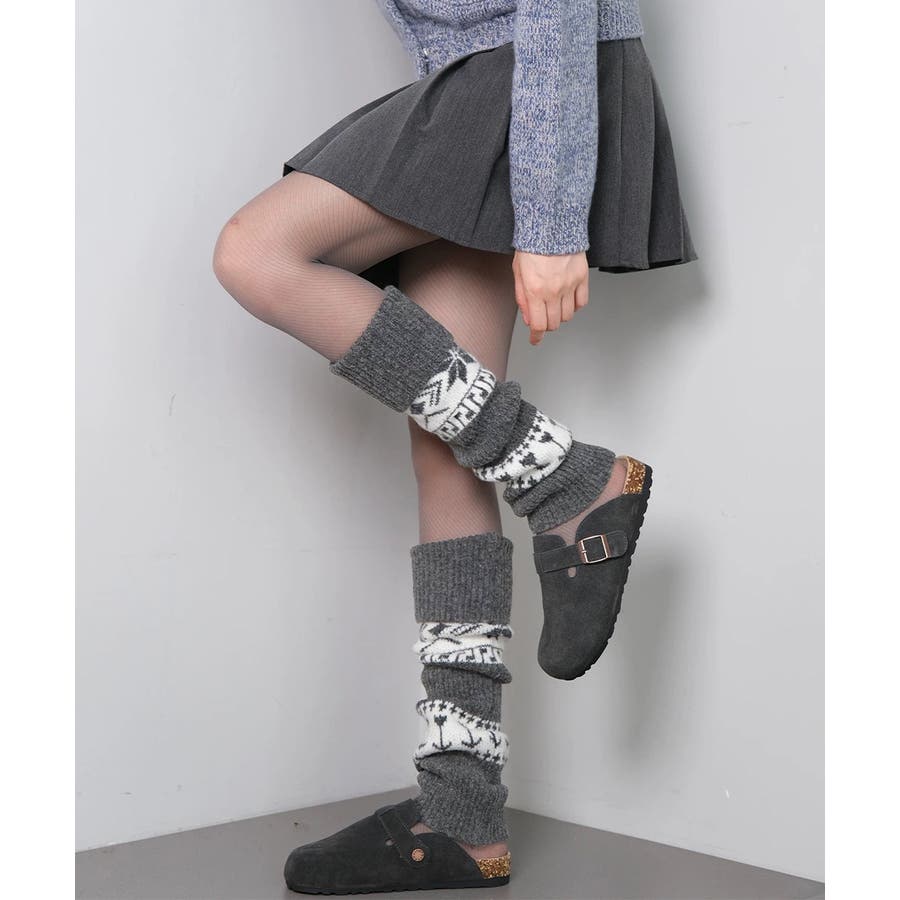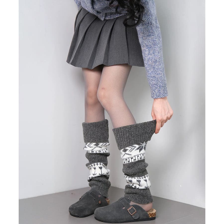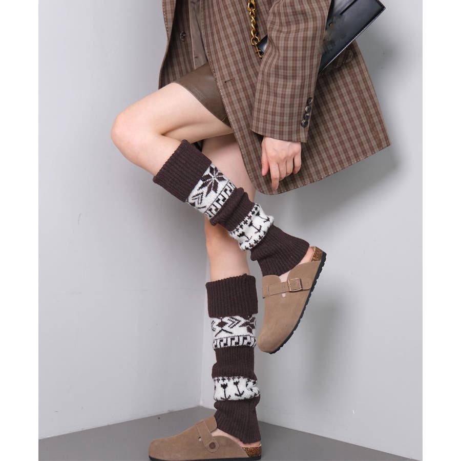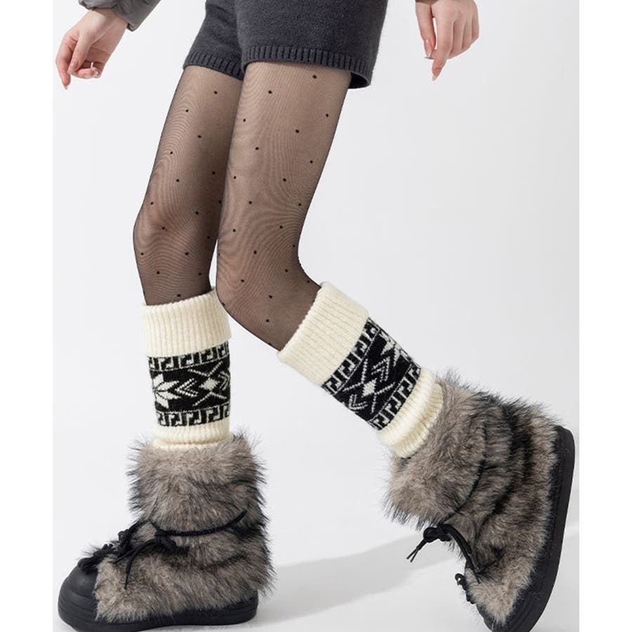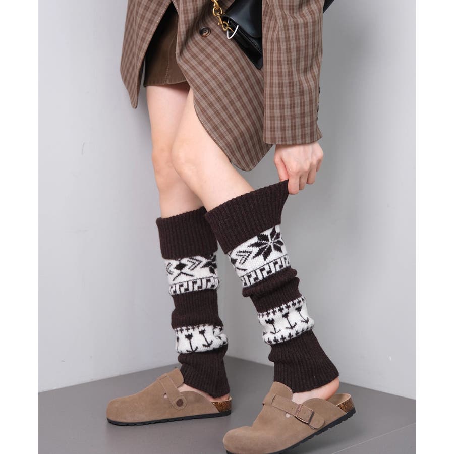 ウールタッチの厚手ニット素材を使用した、レディーススノーフレーク柄レッグウォーマー。