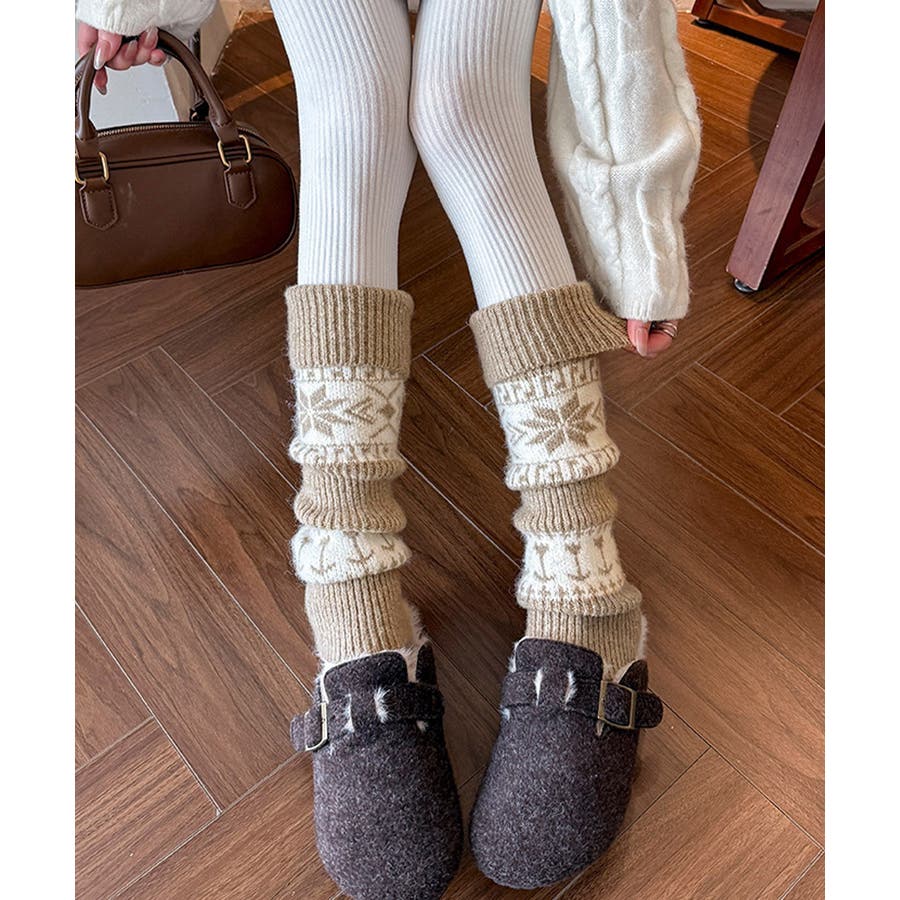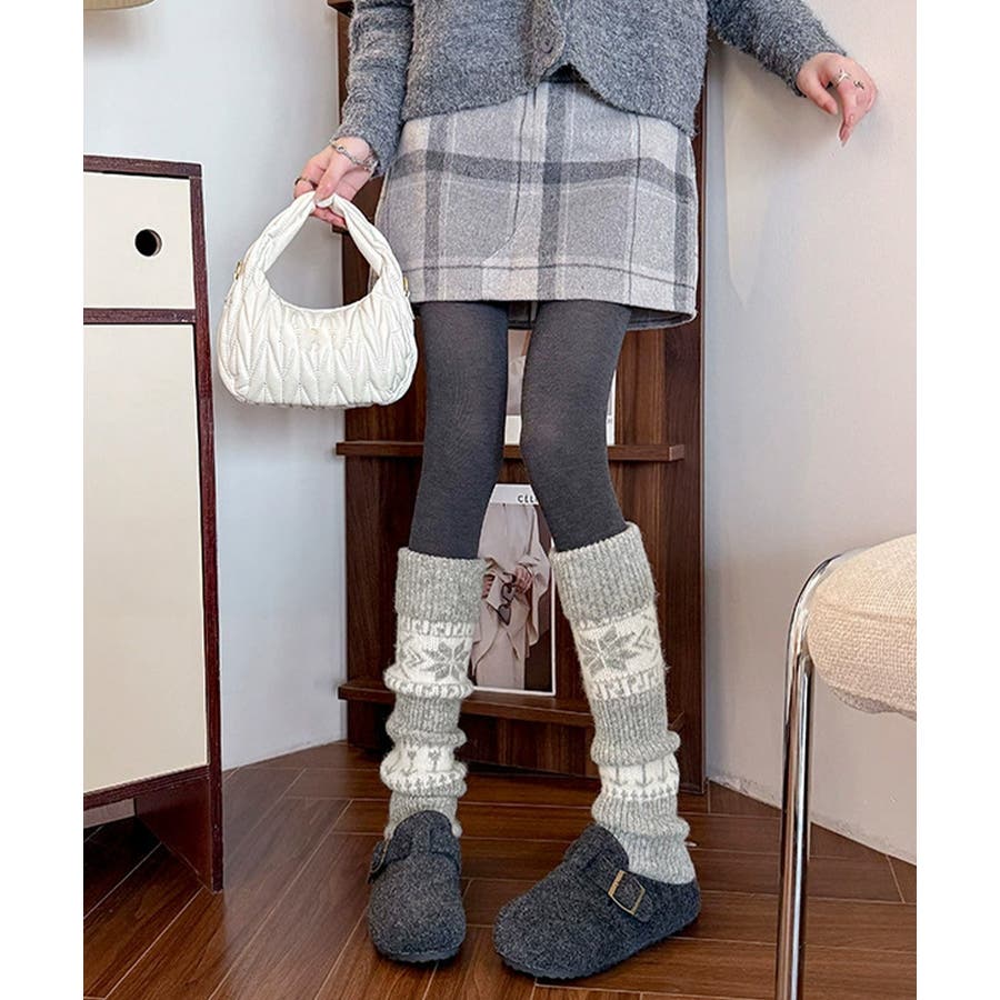 レッグカバー冬小物 冷え性対策ソックス 雪柄 脚カバー厚手