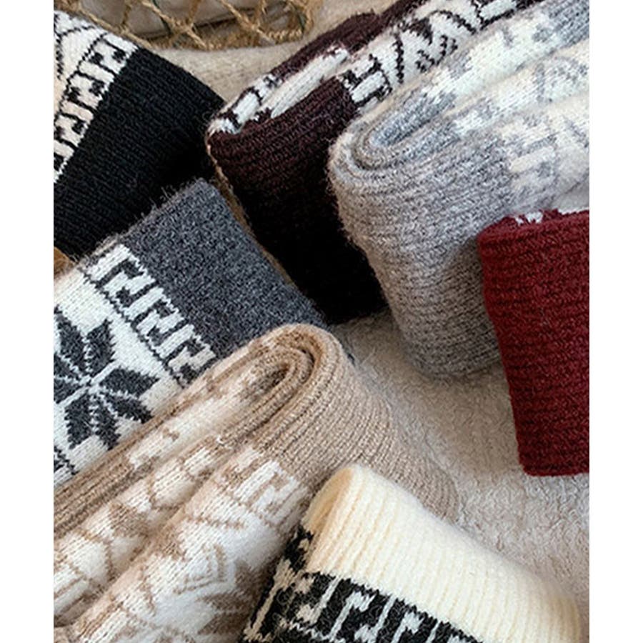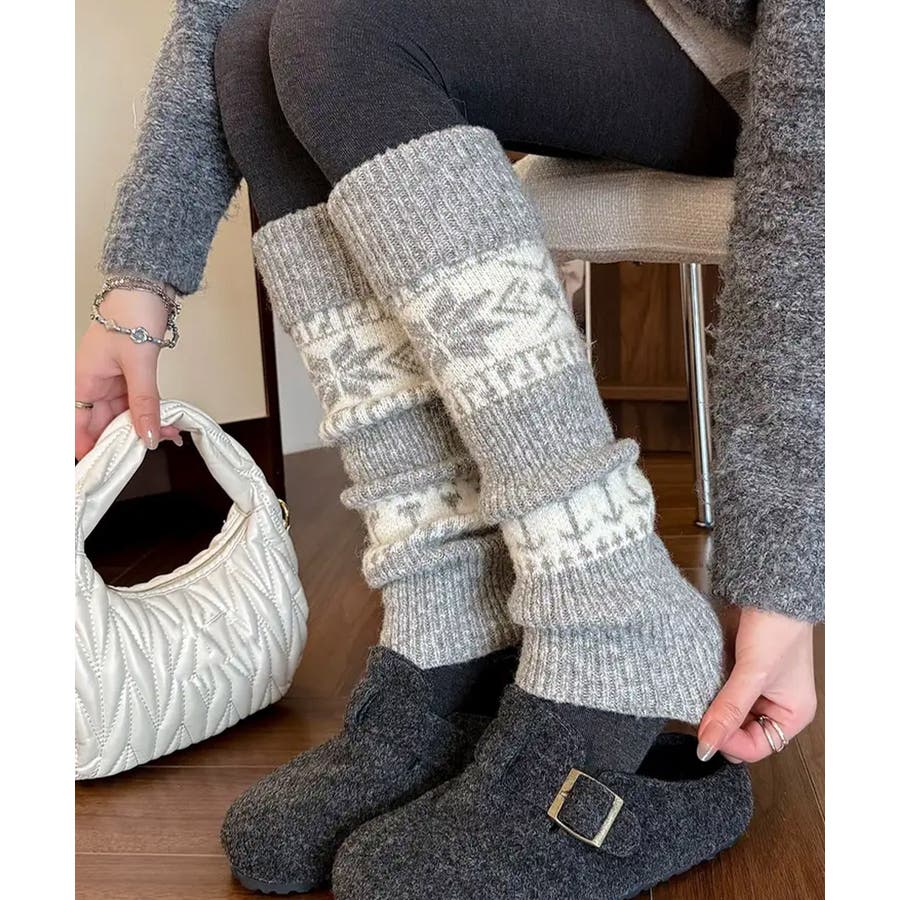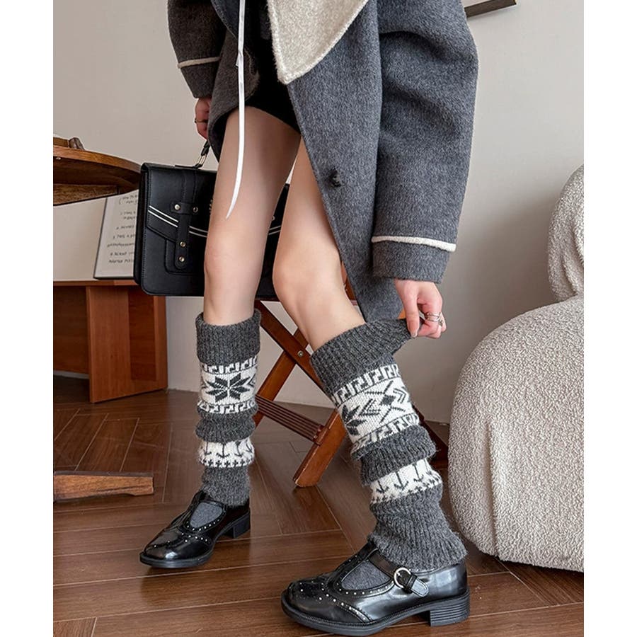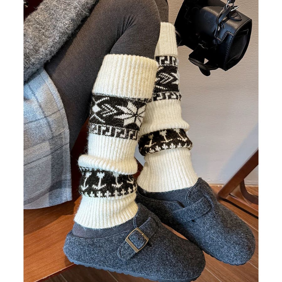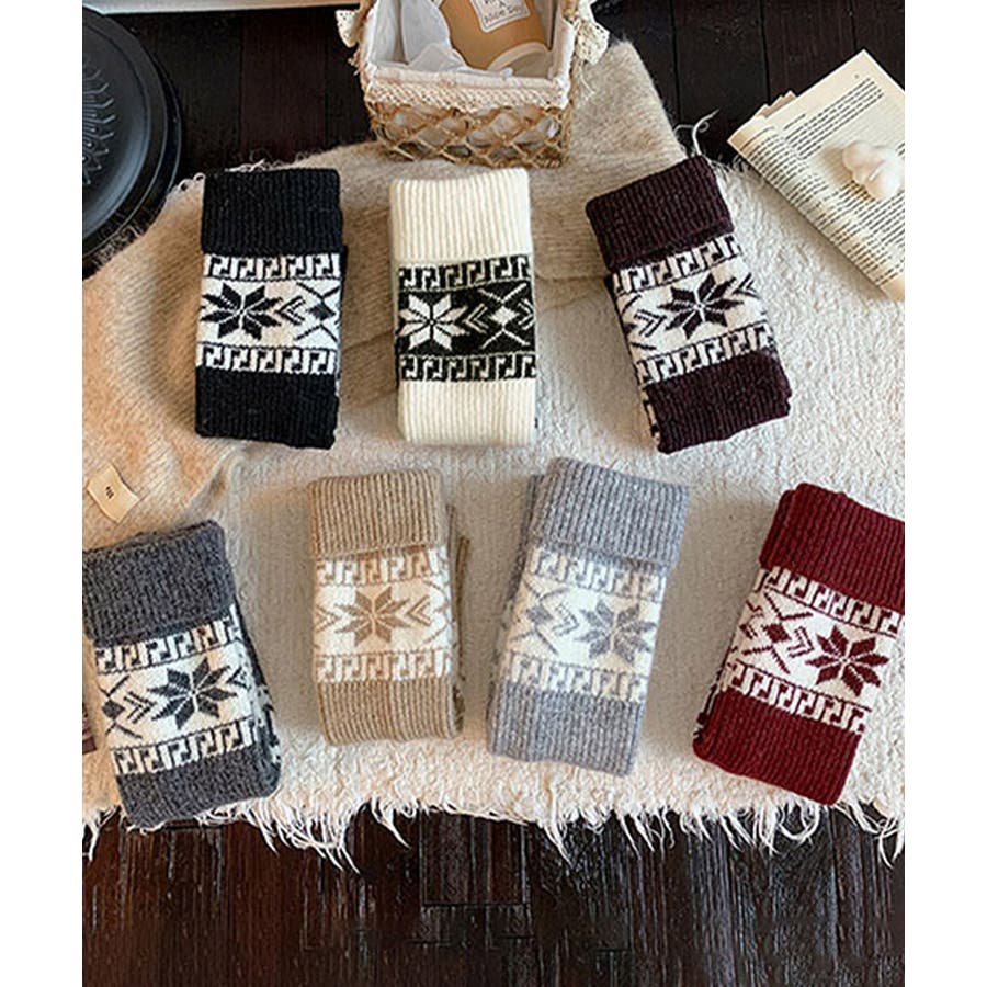 【ワインレッド】ノルディック柄レッグウォーマー暖かい靴下