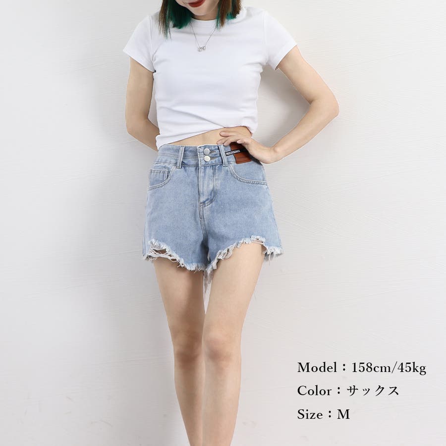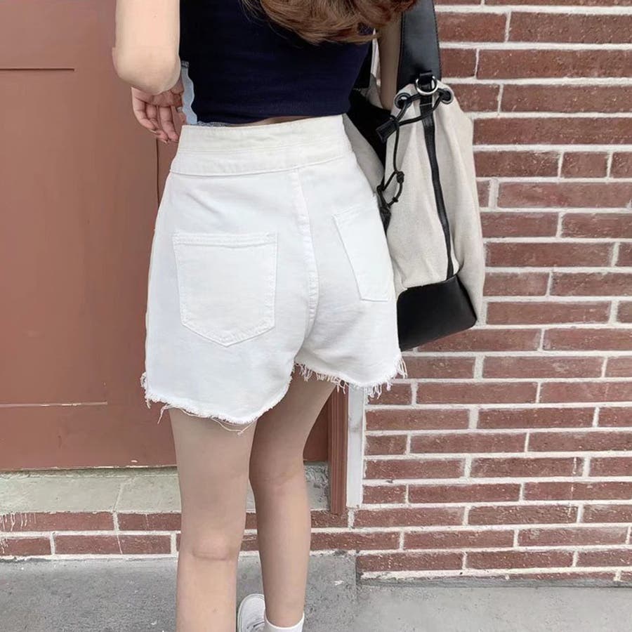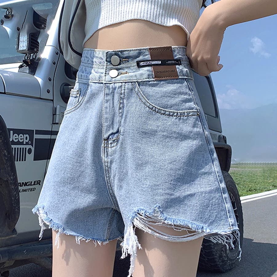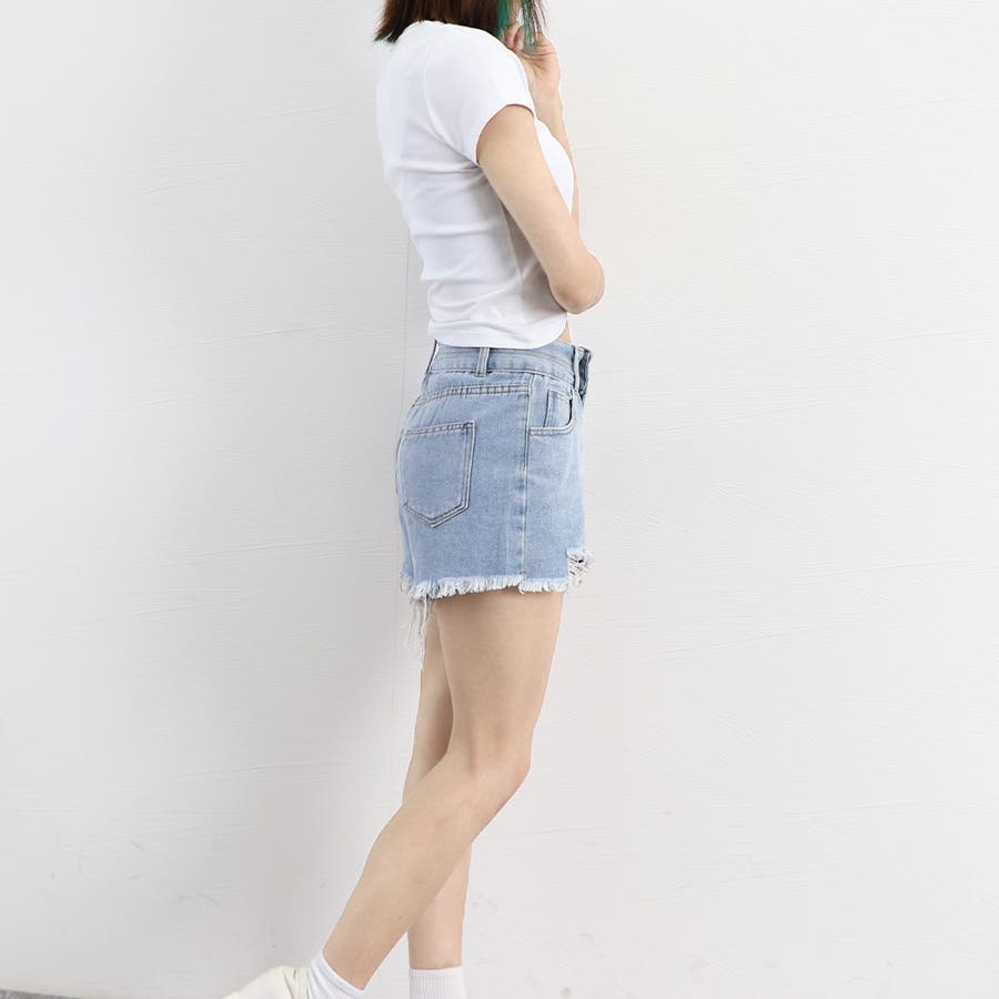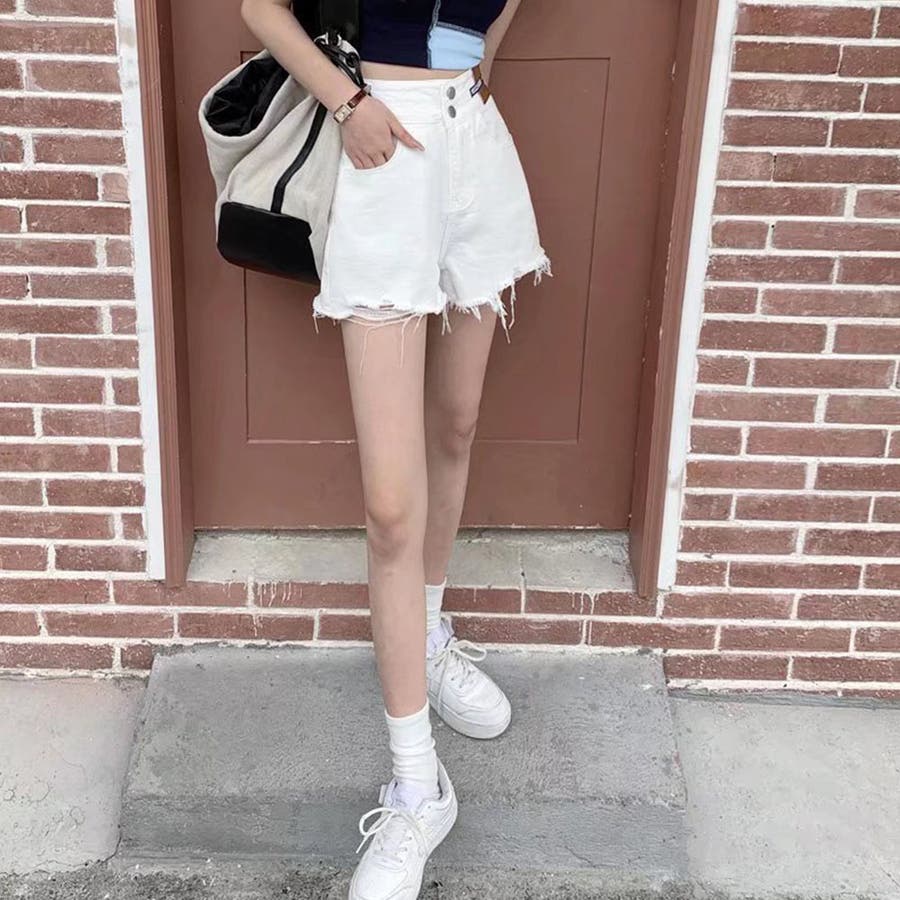 ダメージ加工デニムショートパンツ 韓国風