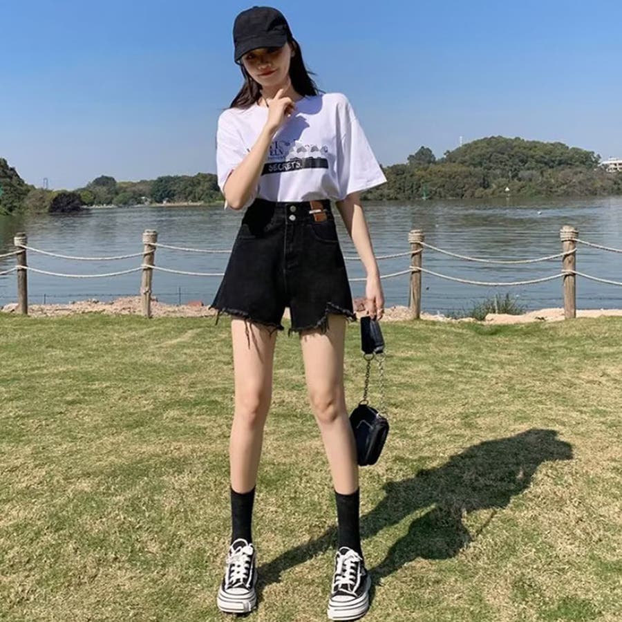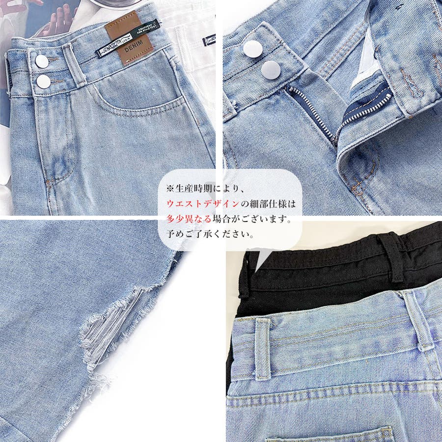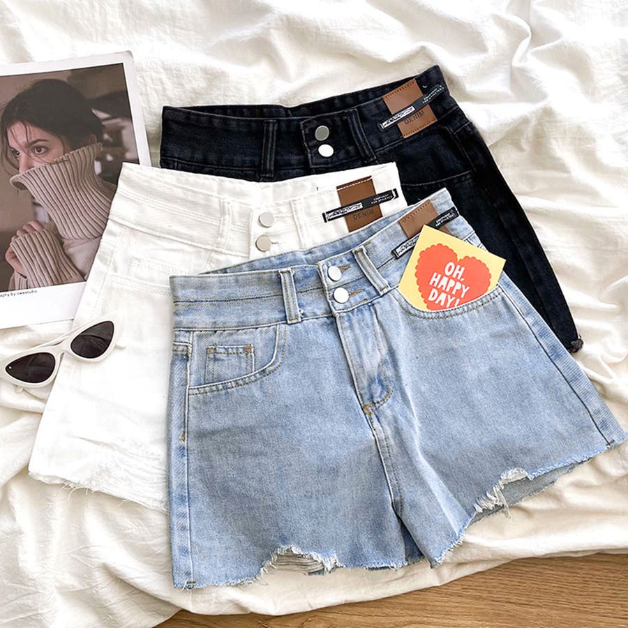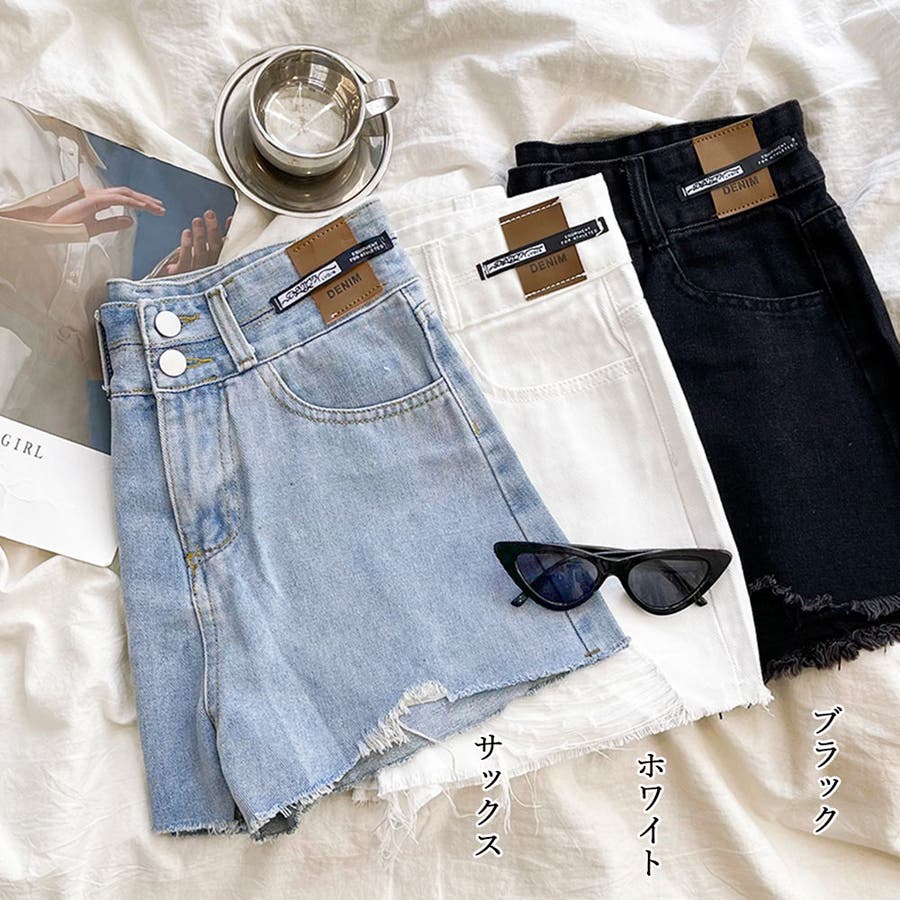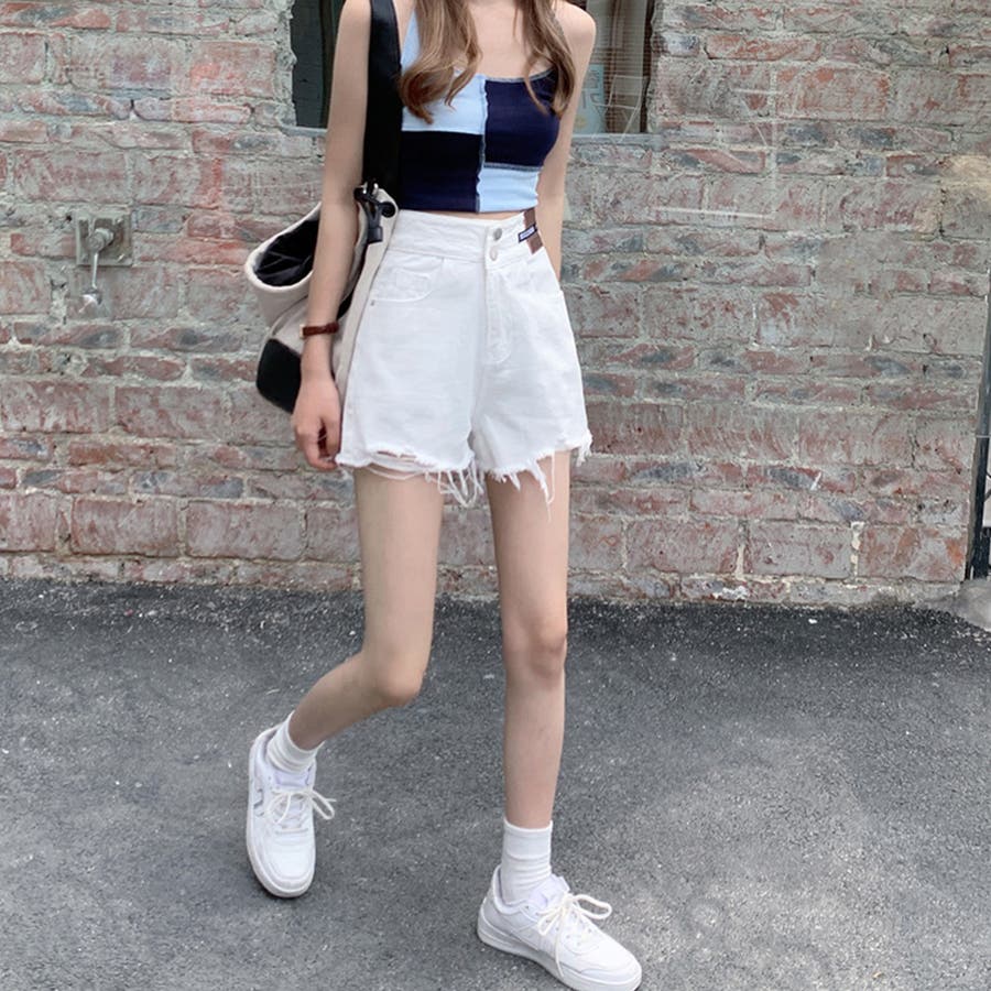 ダメージ加工デニムショートパンツ 韓国風