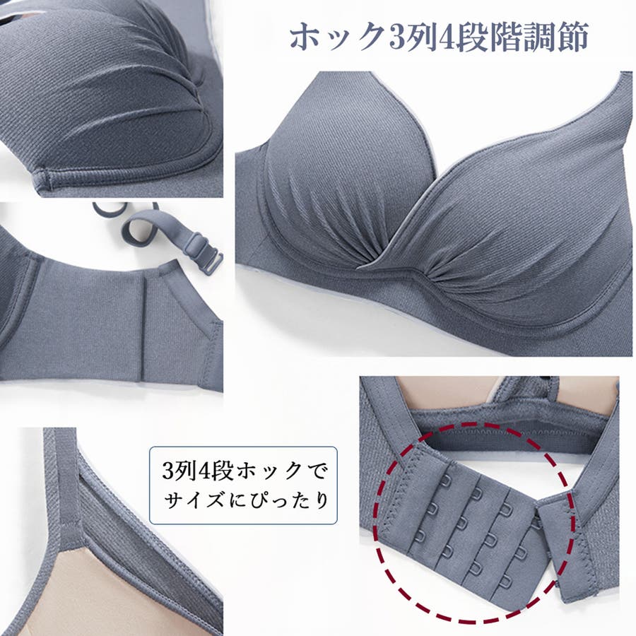 3/4カップ、ホック3列4段階調節、肩紐取外し不可、ワイヤー:なし