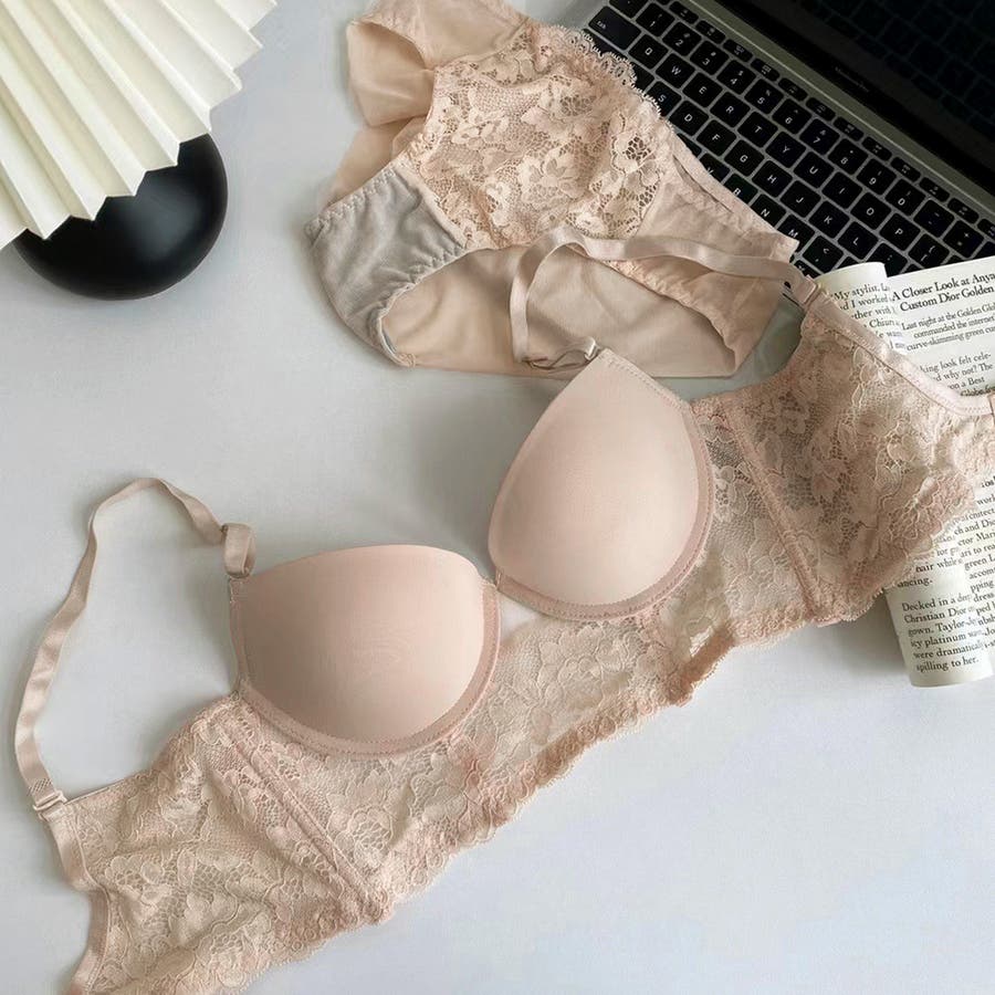 カジュアルなデザインに花柄レースをあしらった可愛いランジェリー上下セット