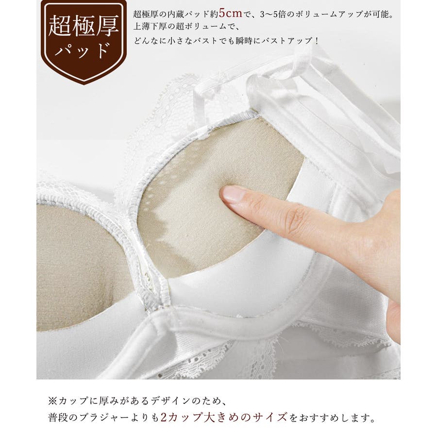 厚みのあるカップで、小胸でもしっかりとボリュームアップし、自然なふくらみを演出する