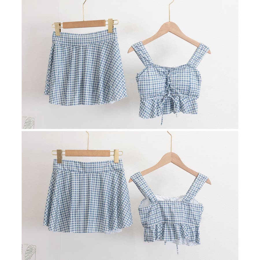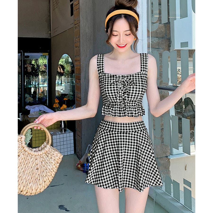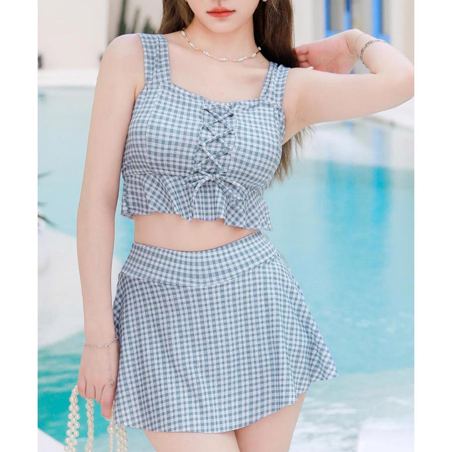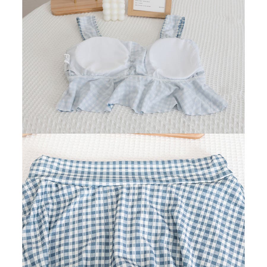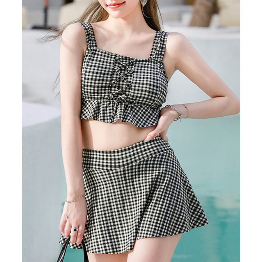 大人ガーリーな印象を演出するギンガムチェックのツーピース水着