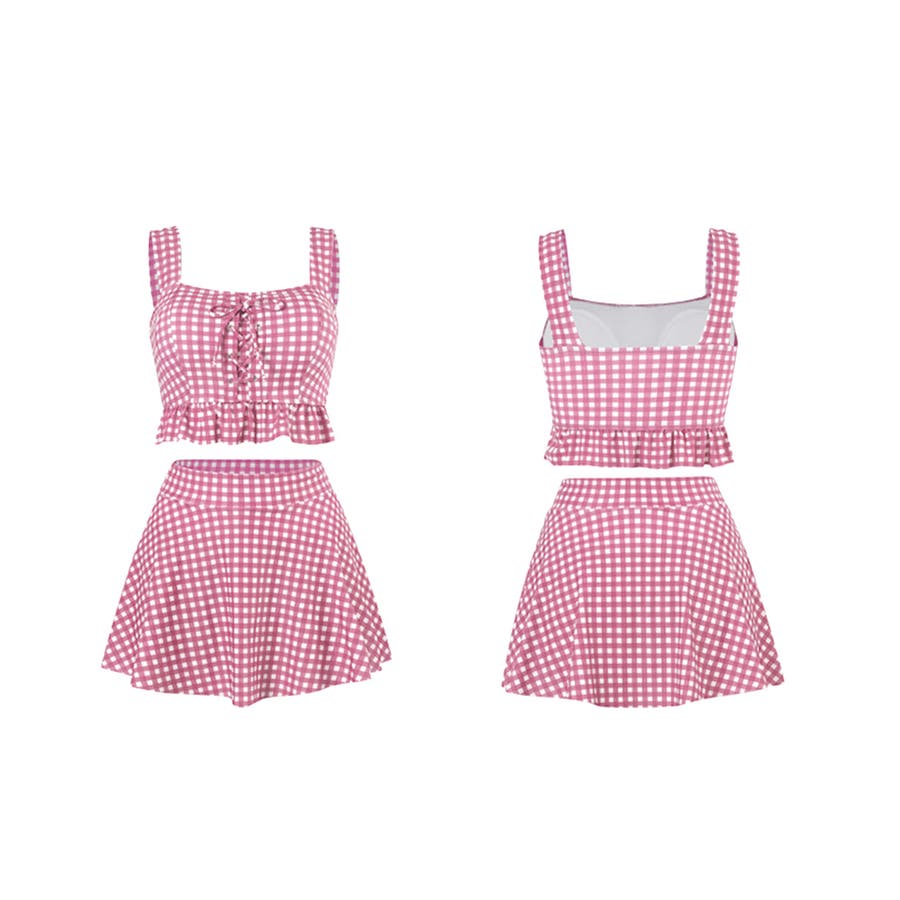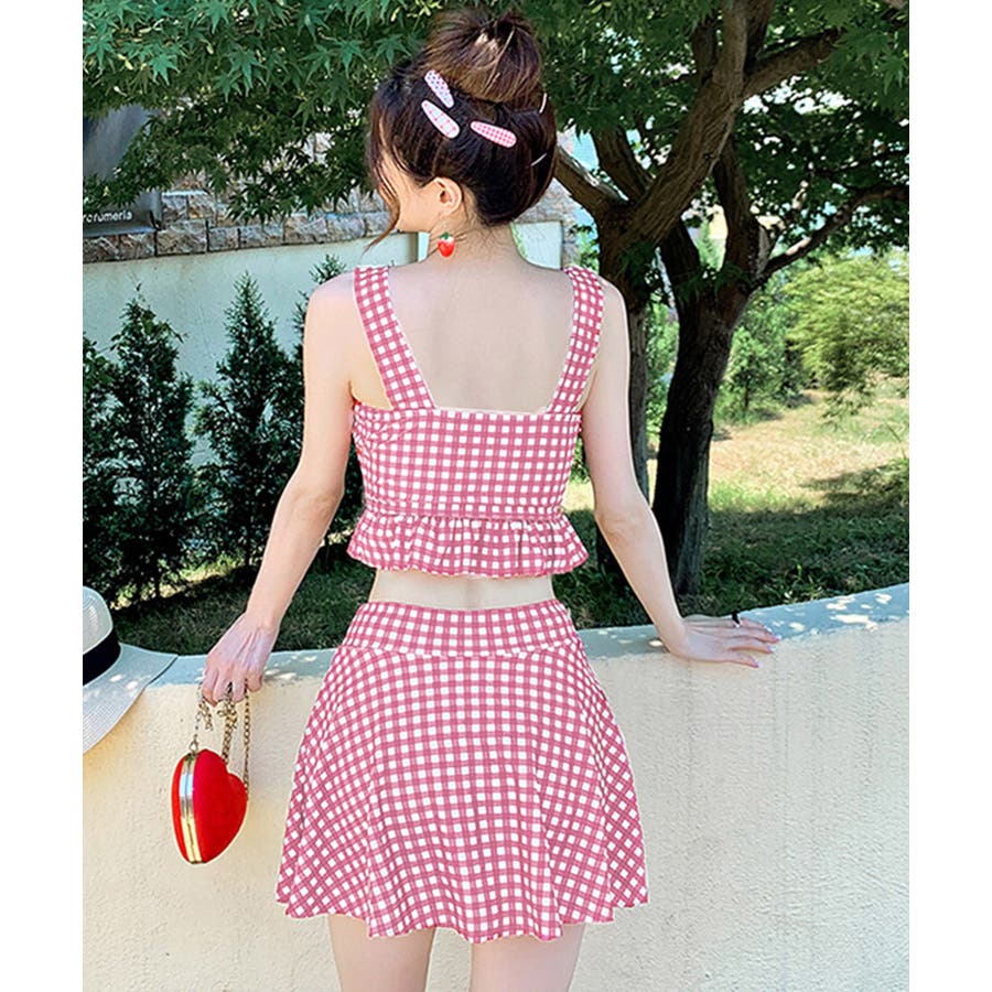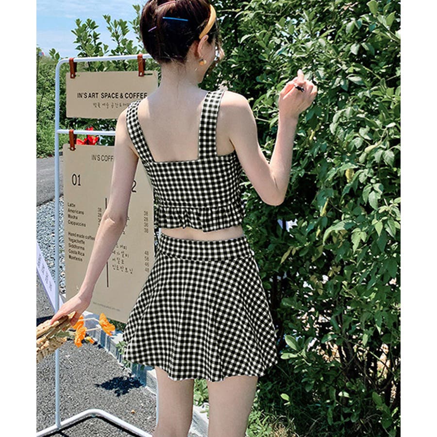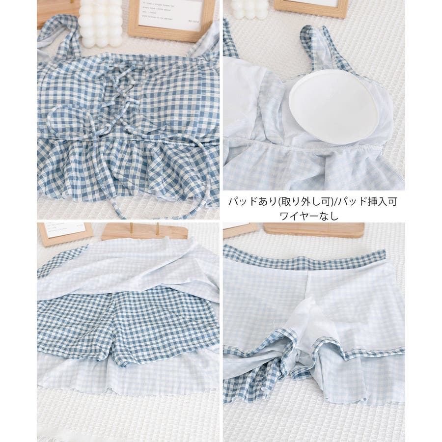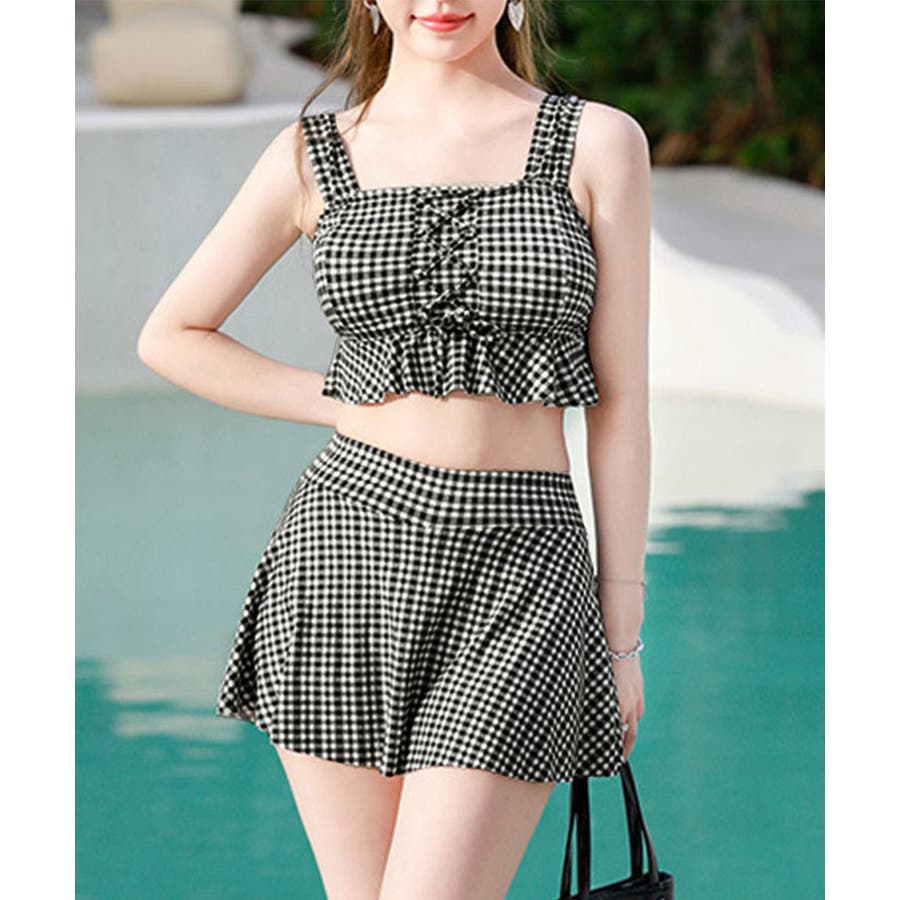 大人ガーリーな印象を演出するギンガムチェックのツーピース水着