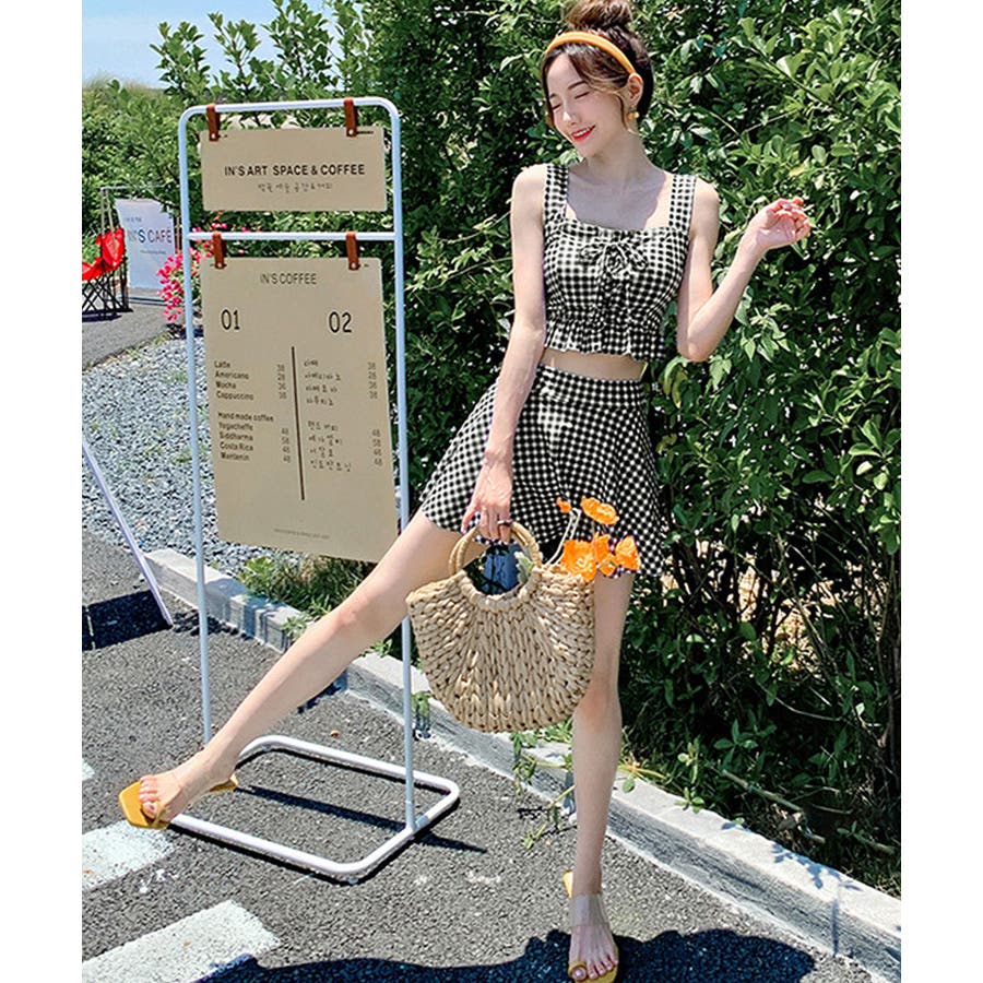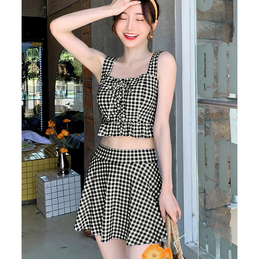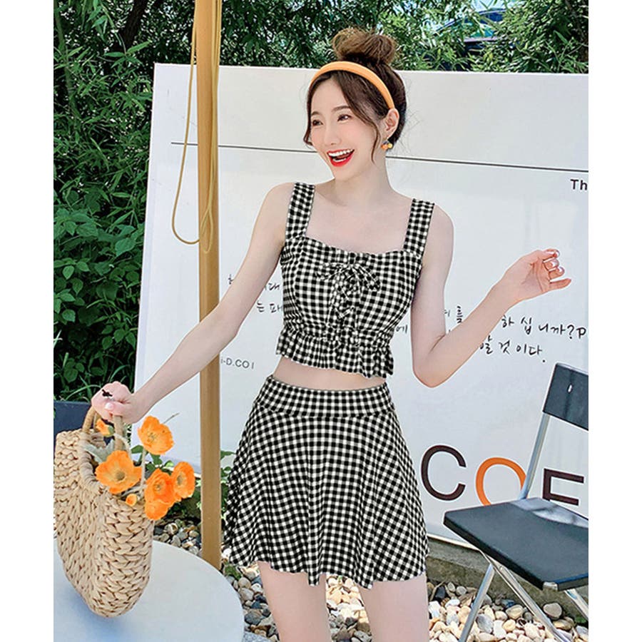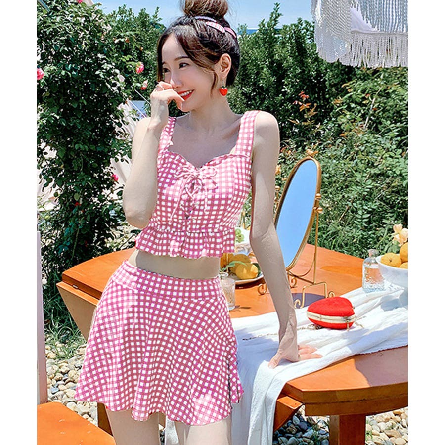 露出控えめ水着人気 海水浴ビスチェ水着 韓国風 ビーチ水着