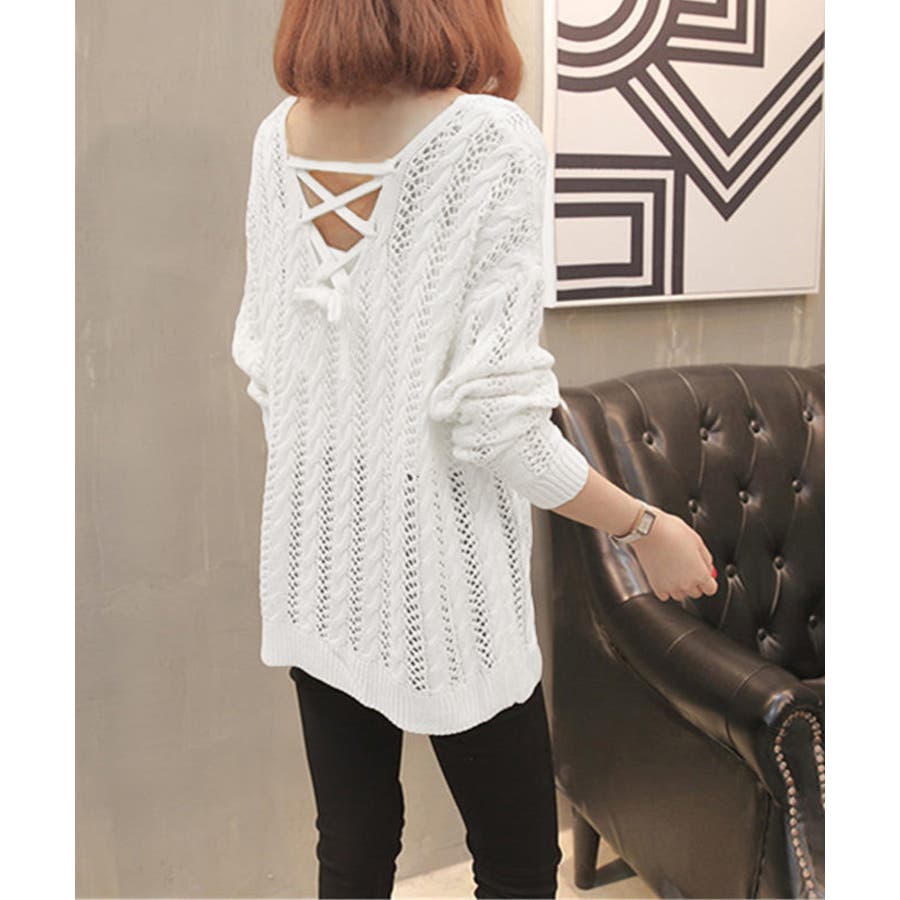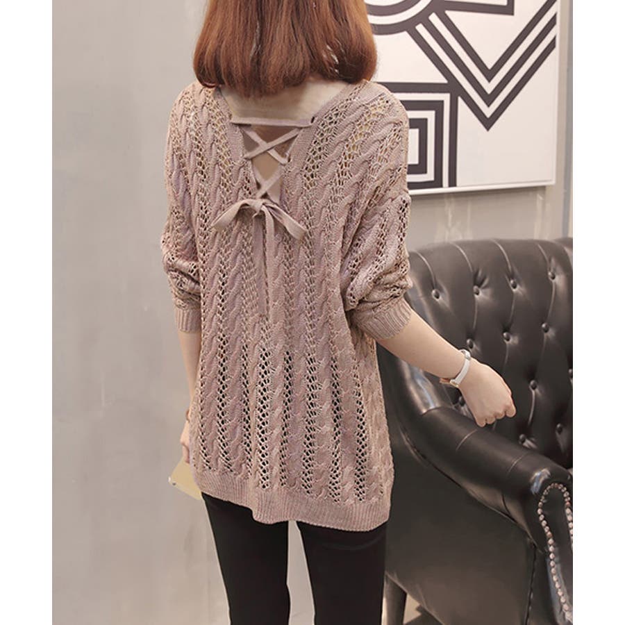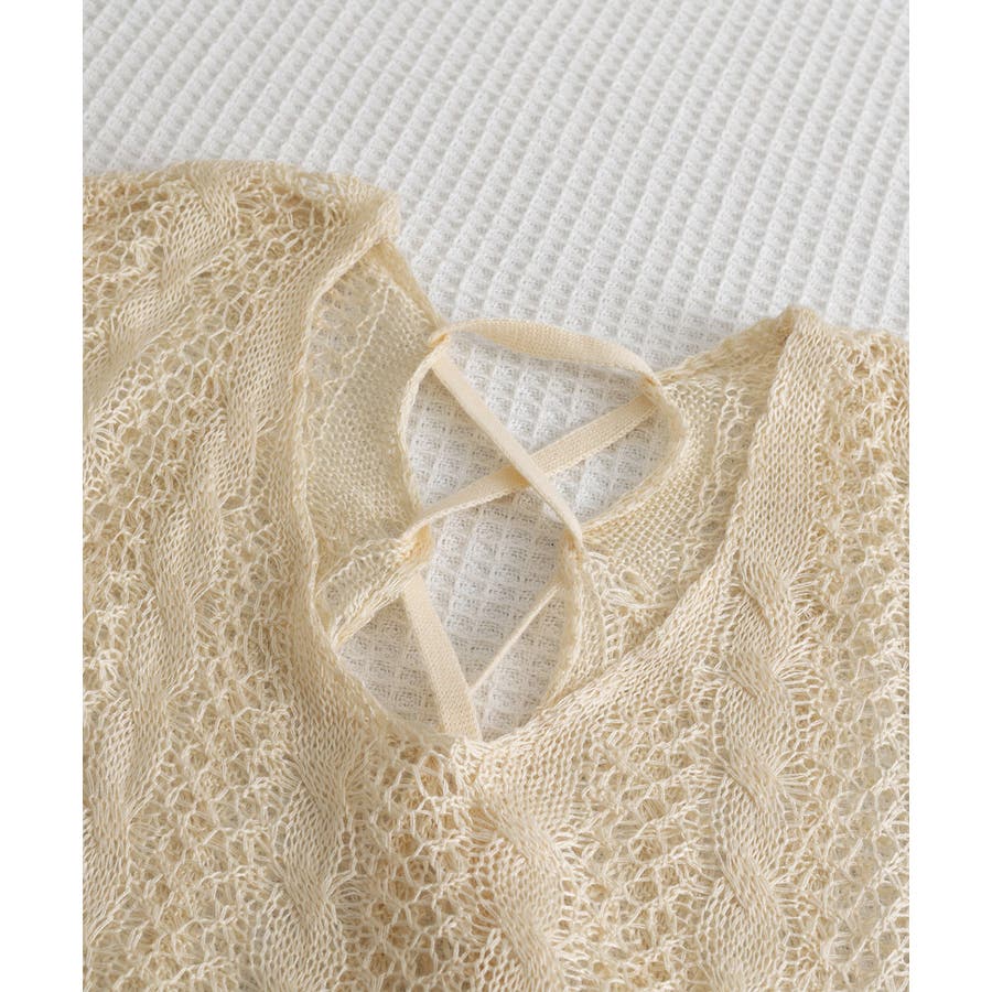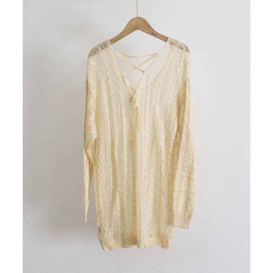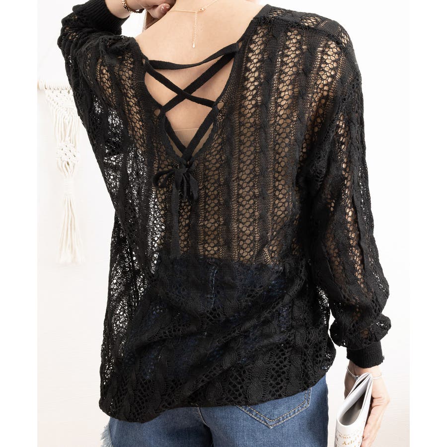 バッグレースアップ 透かし編みニット