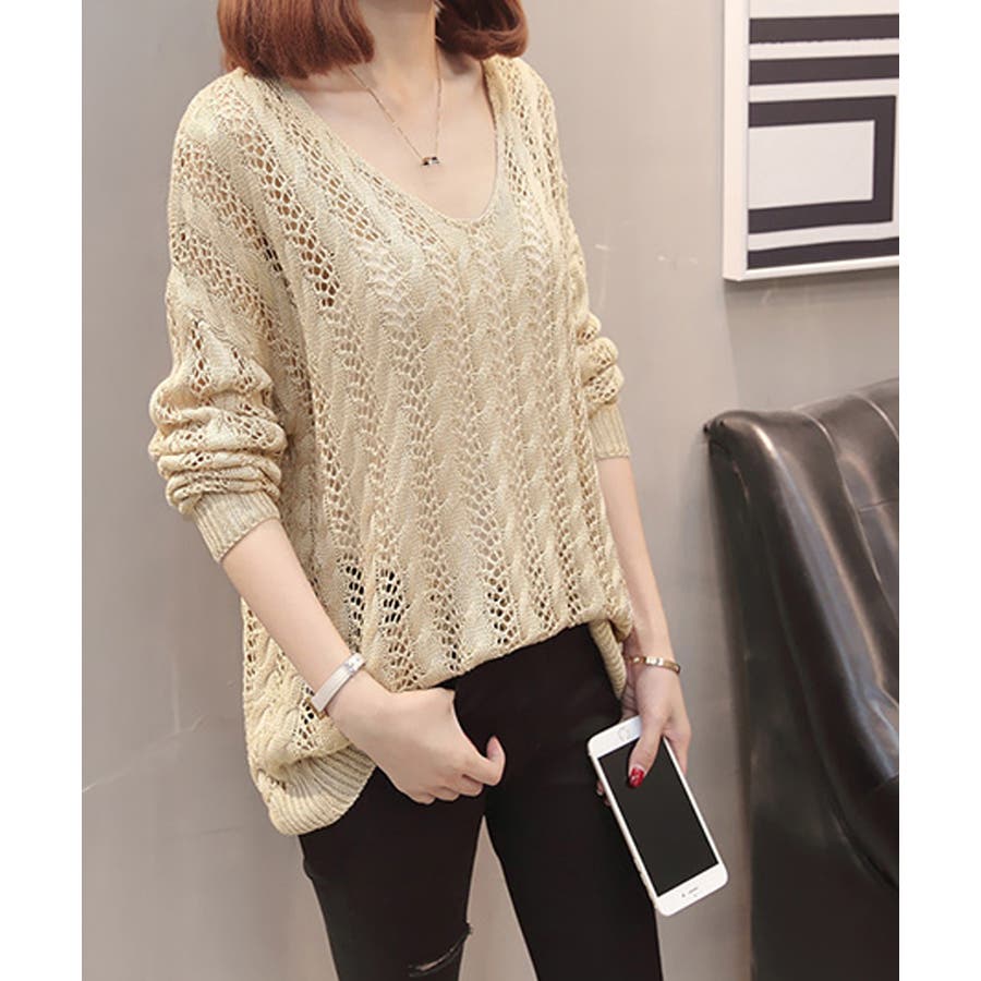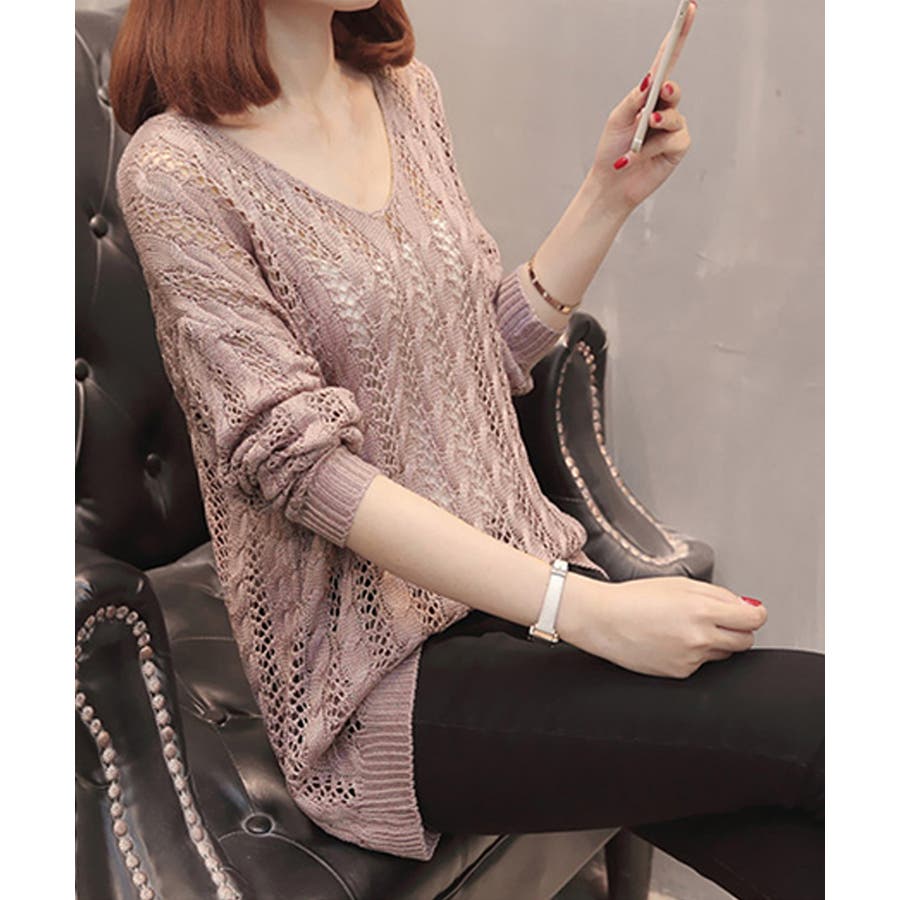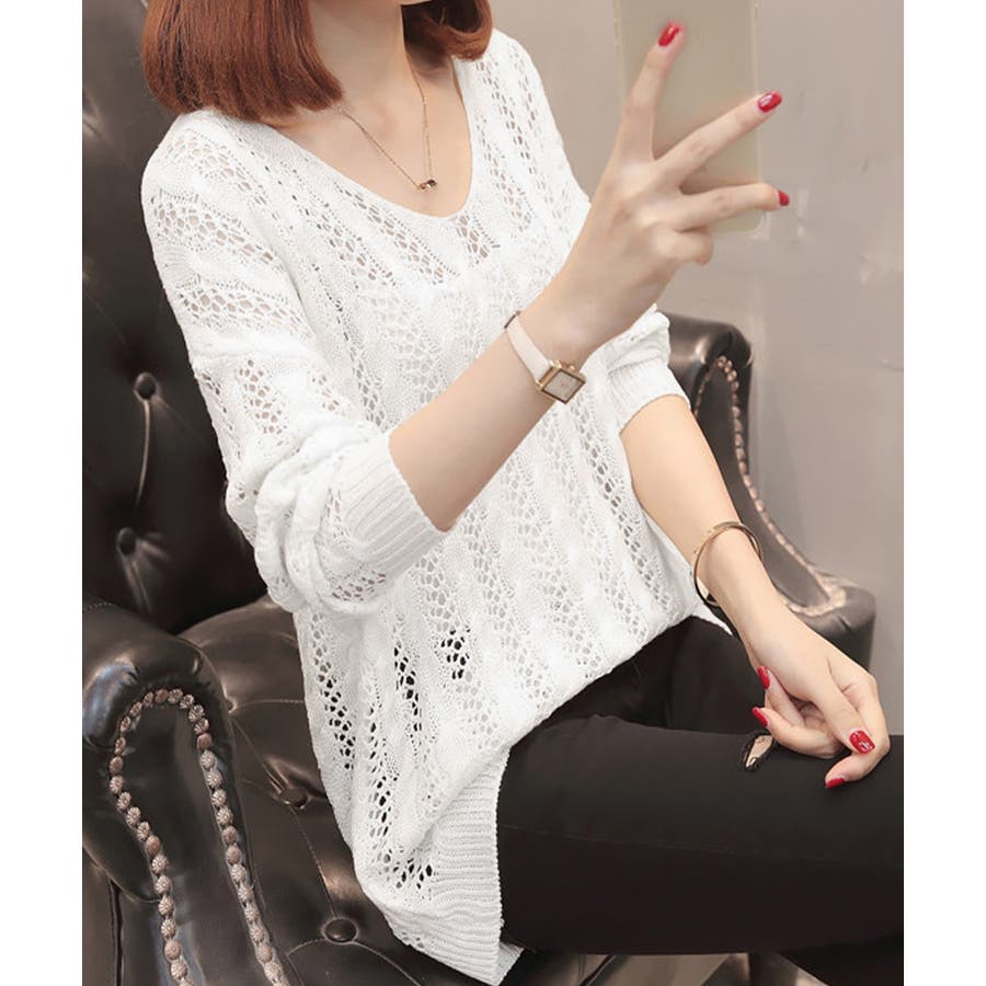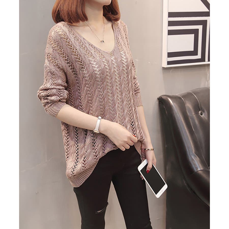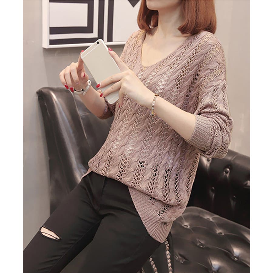 韓国風 春夏秋服 透け感ニット着やせ 肌見せニットお洒落