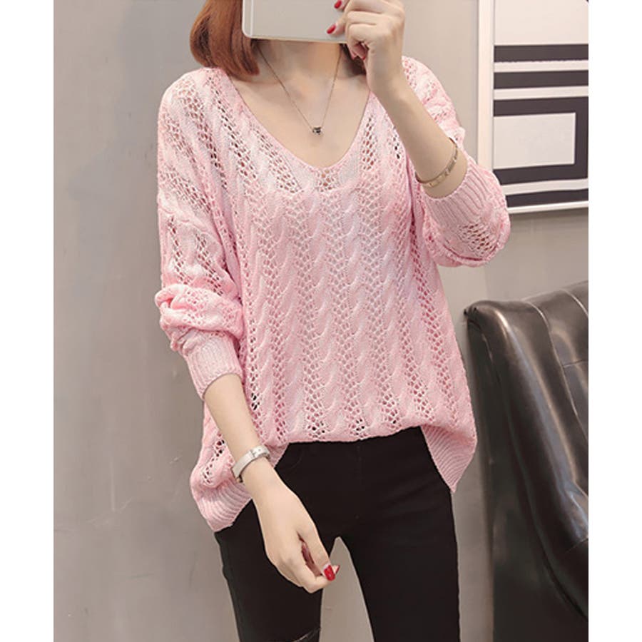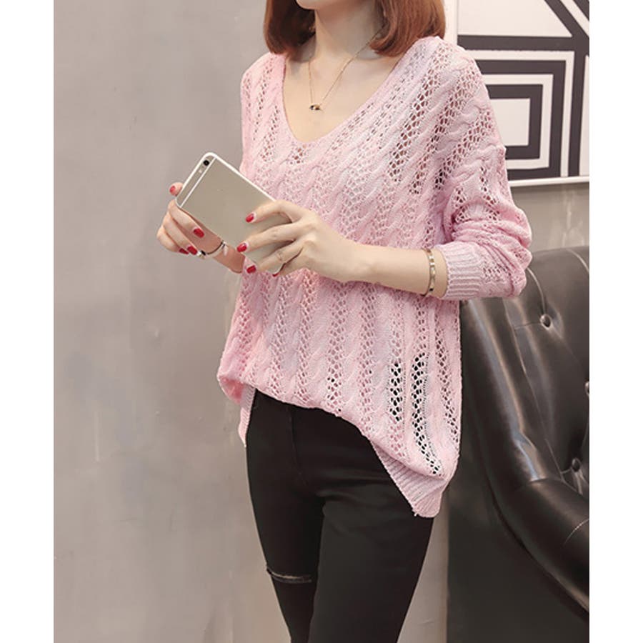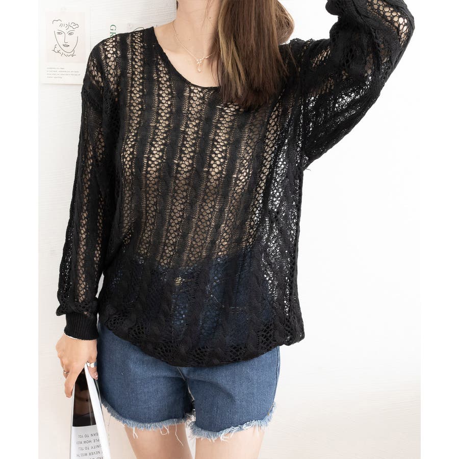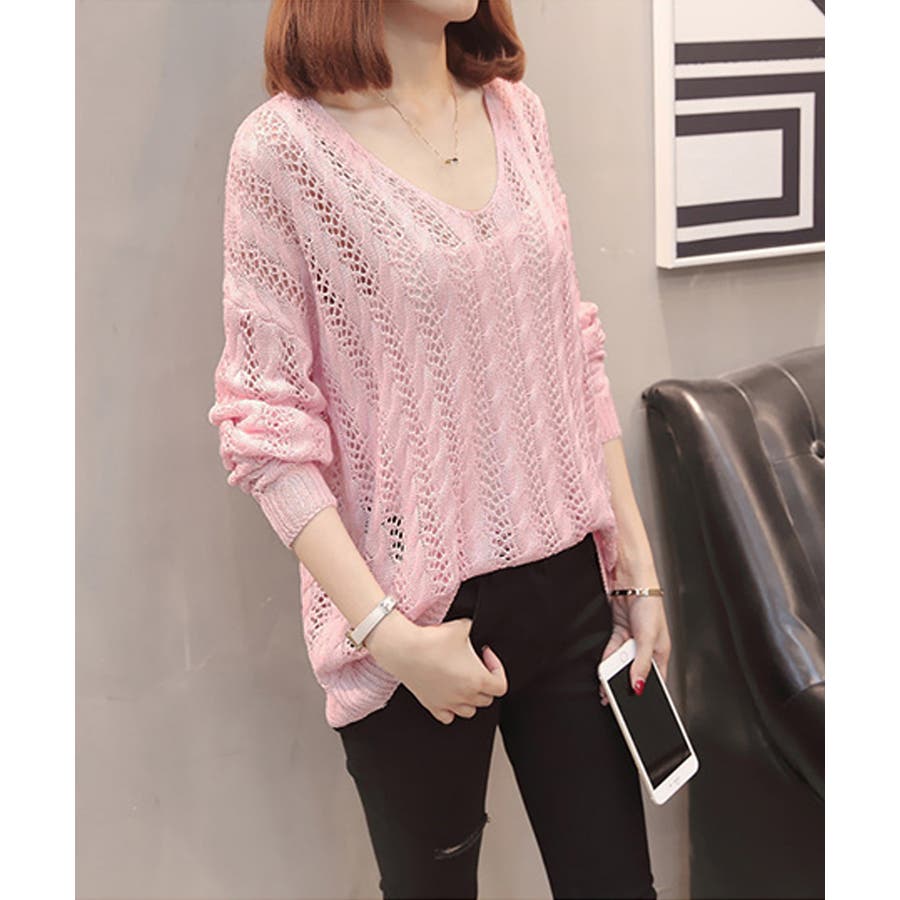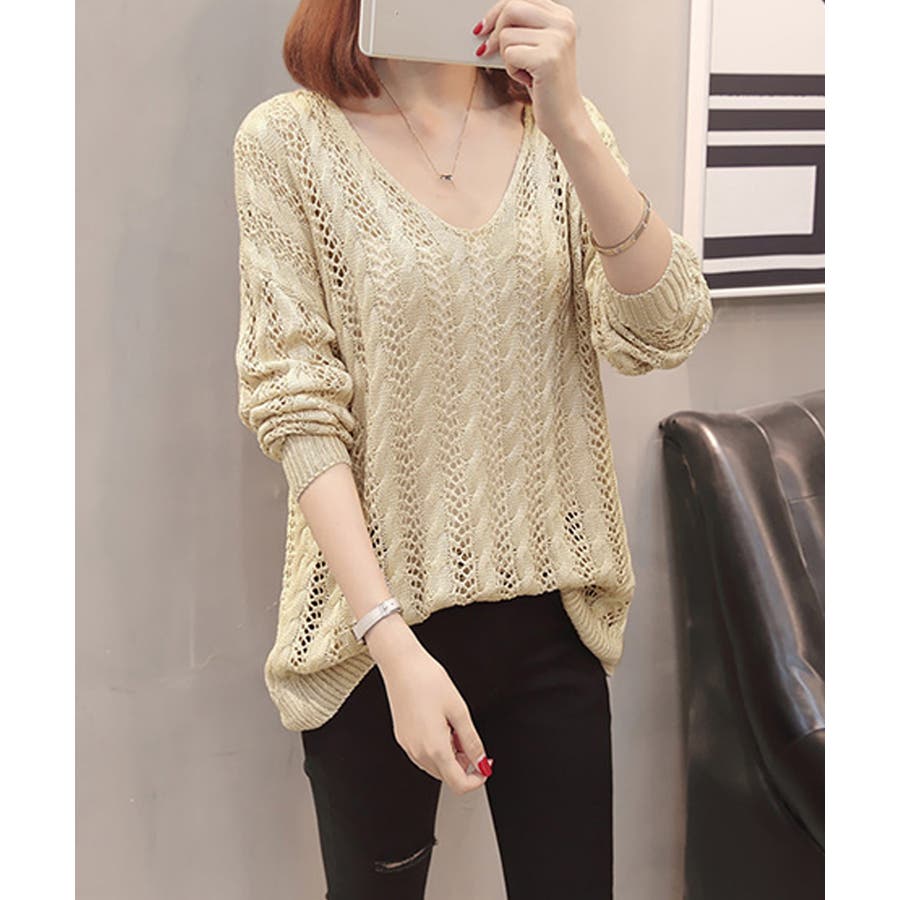 韓国風 春夏秋服 透け感ニット着やせ 肌見せニットお洒落