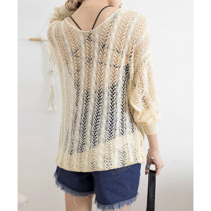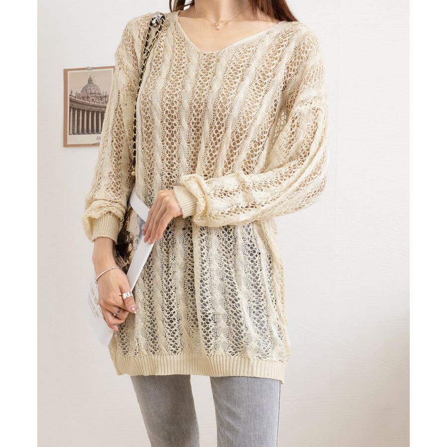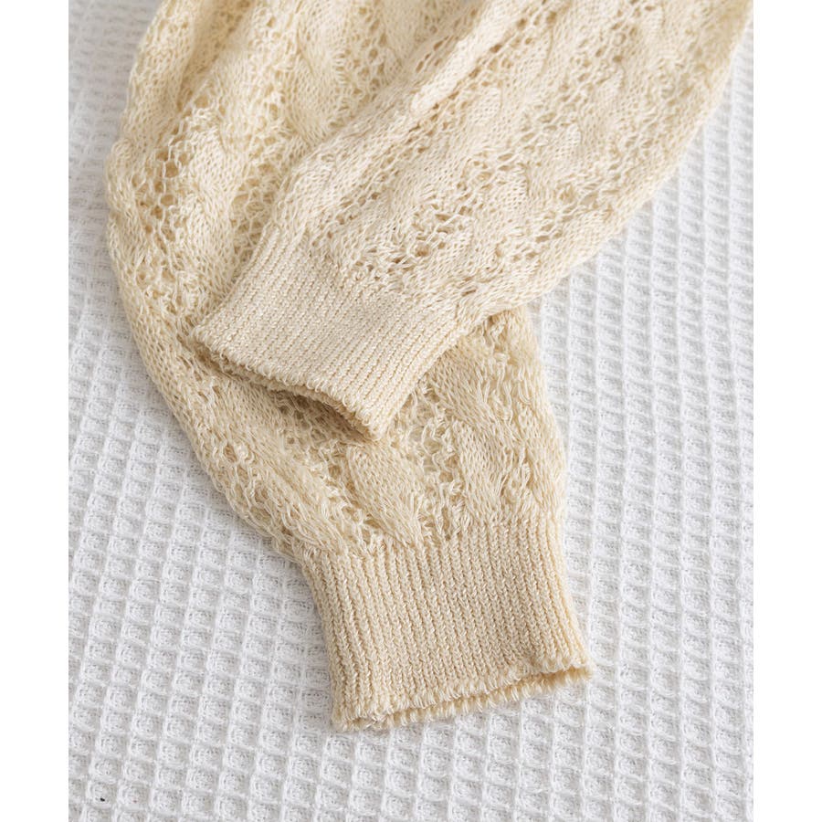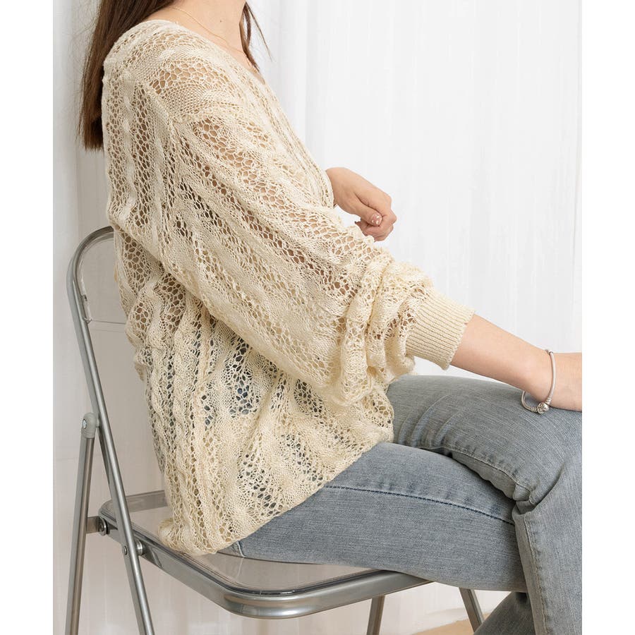 透かし編みの程よい透け感が、女性らしさをプラス。