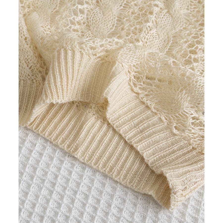 フェミニンでトレンド感たっぷりの透かし編みニットトップス。