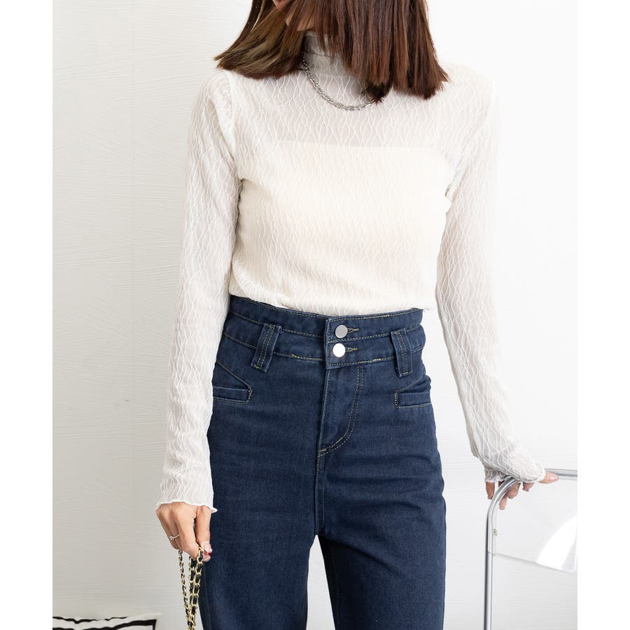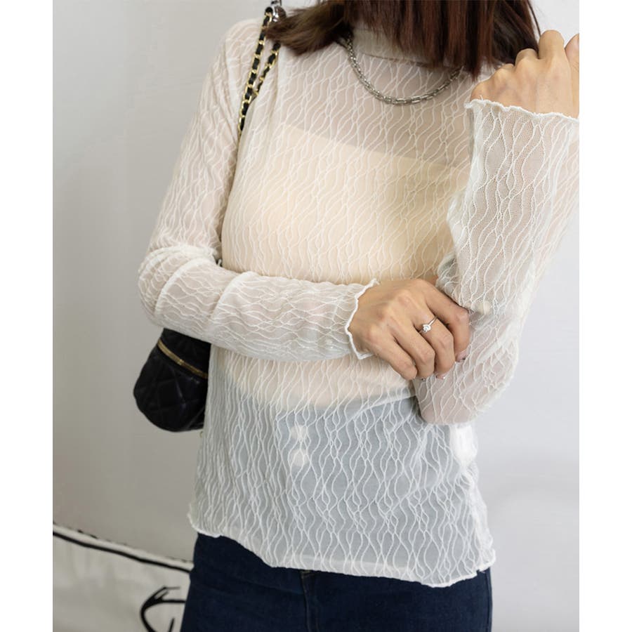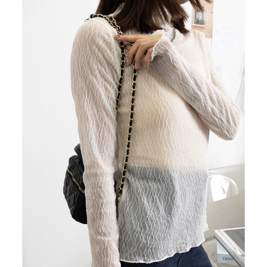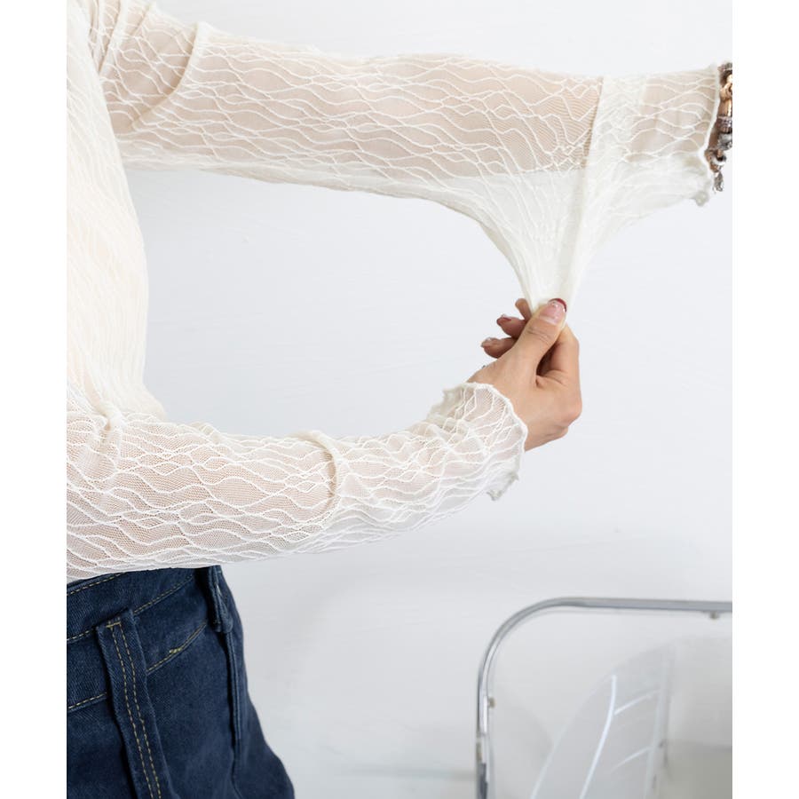 薄手のシースルー素材に繊細な模様を施したレーストップス
