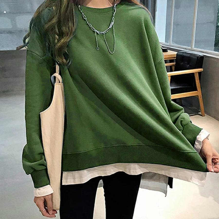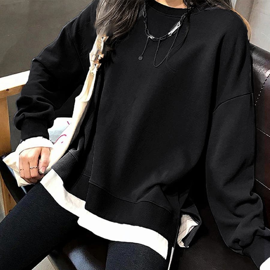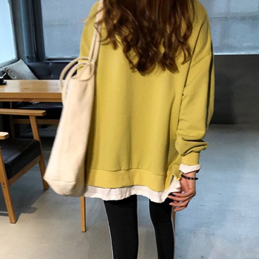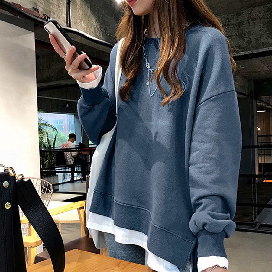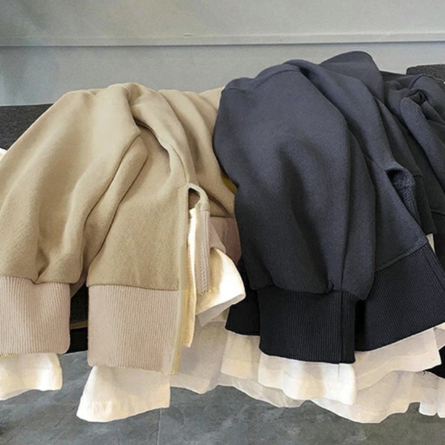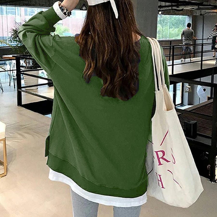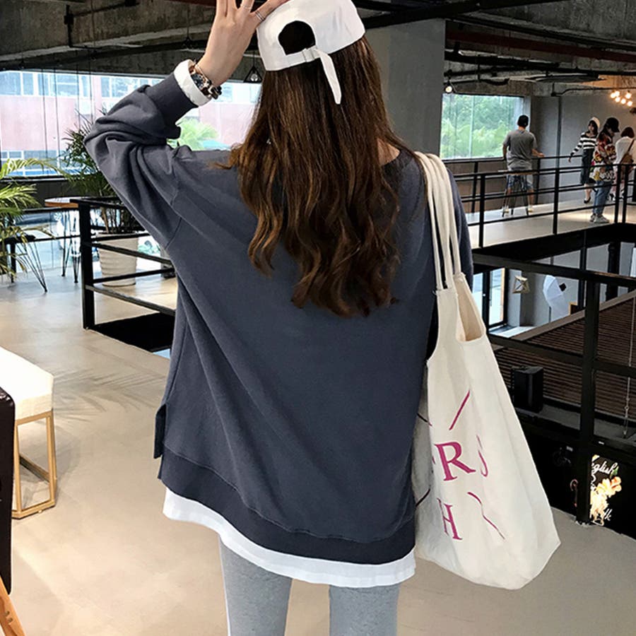 カジュアルのデザインが魅力のレイヤード風ゆるスウェットトレーナーです