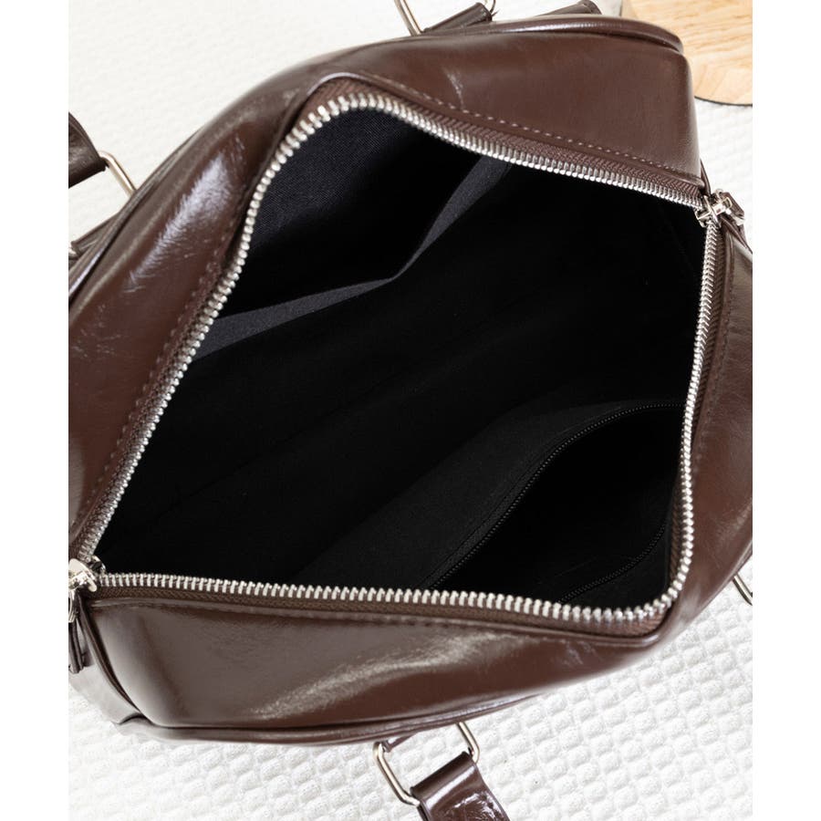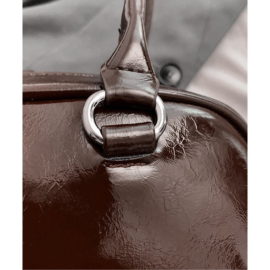 ツヤ感のある上質なエコレザー素材を使用し、カジュアルにもフォーマルにも使えるトートバッグ