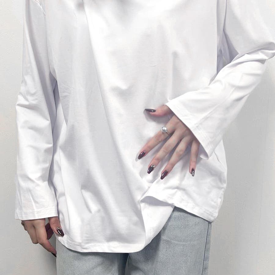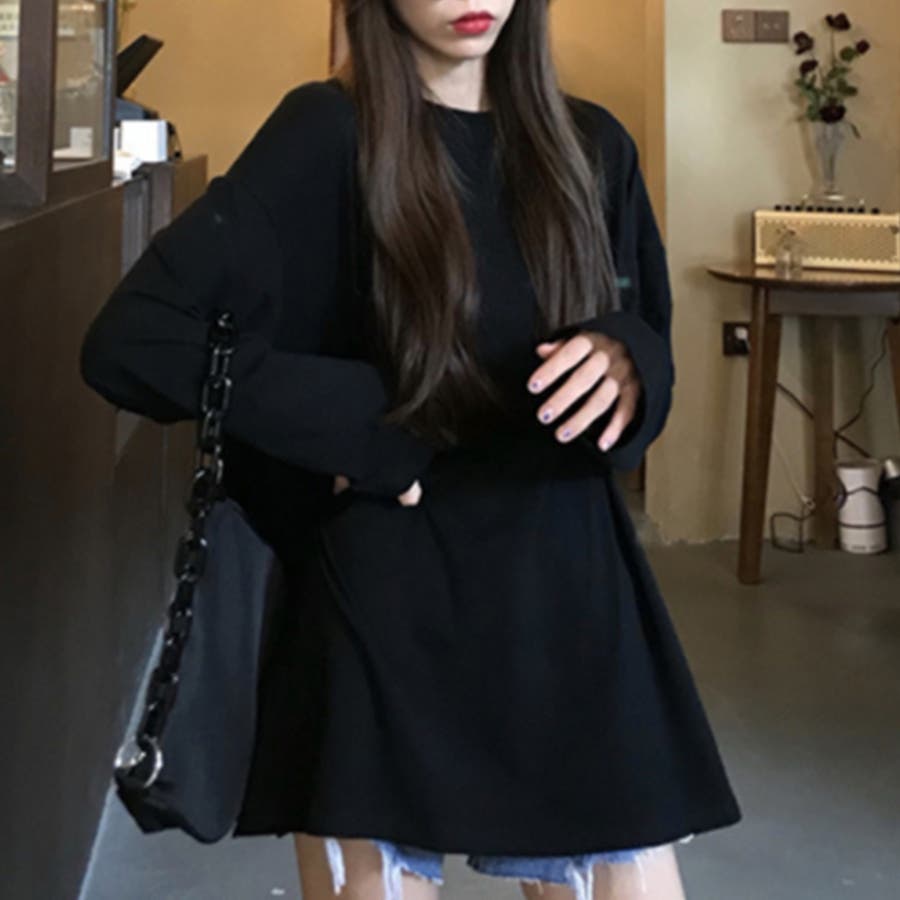 Tシャツ体型カバー ロングTシャツ春秋 ロンT オルチャン