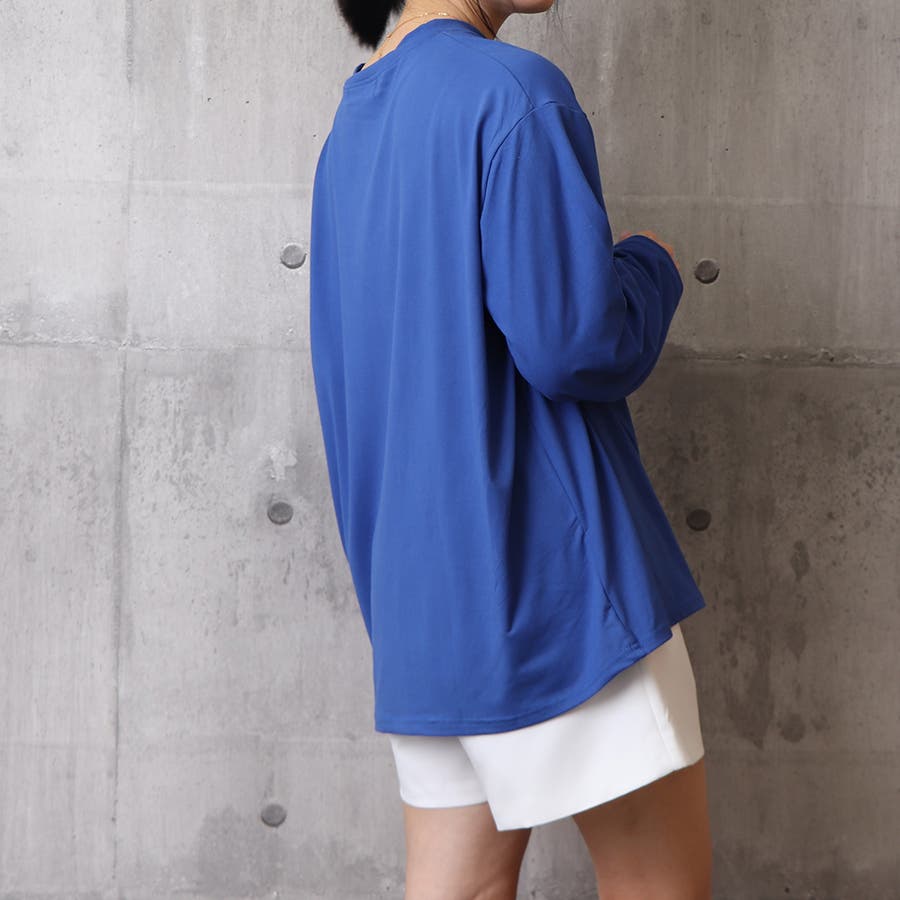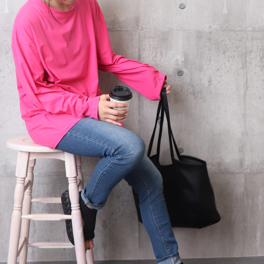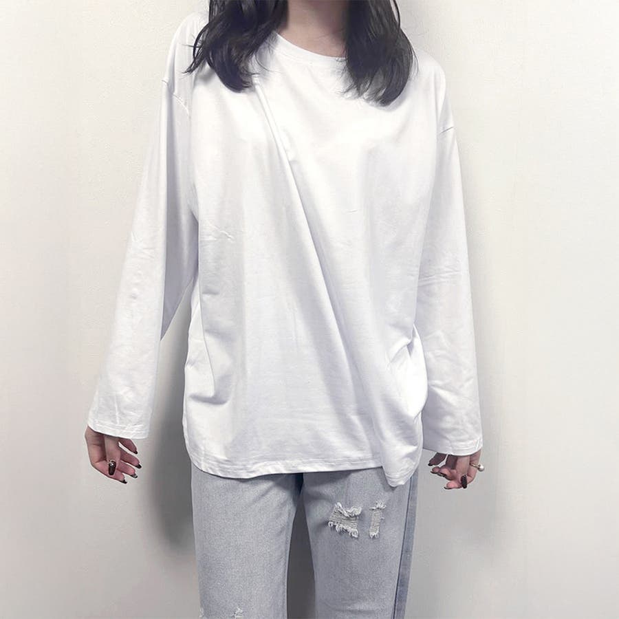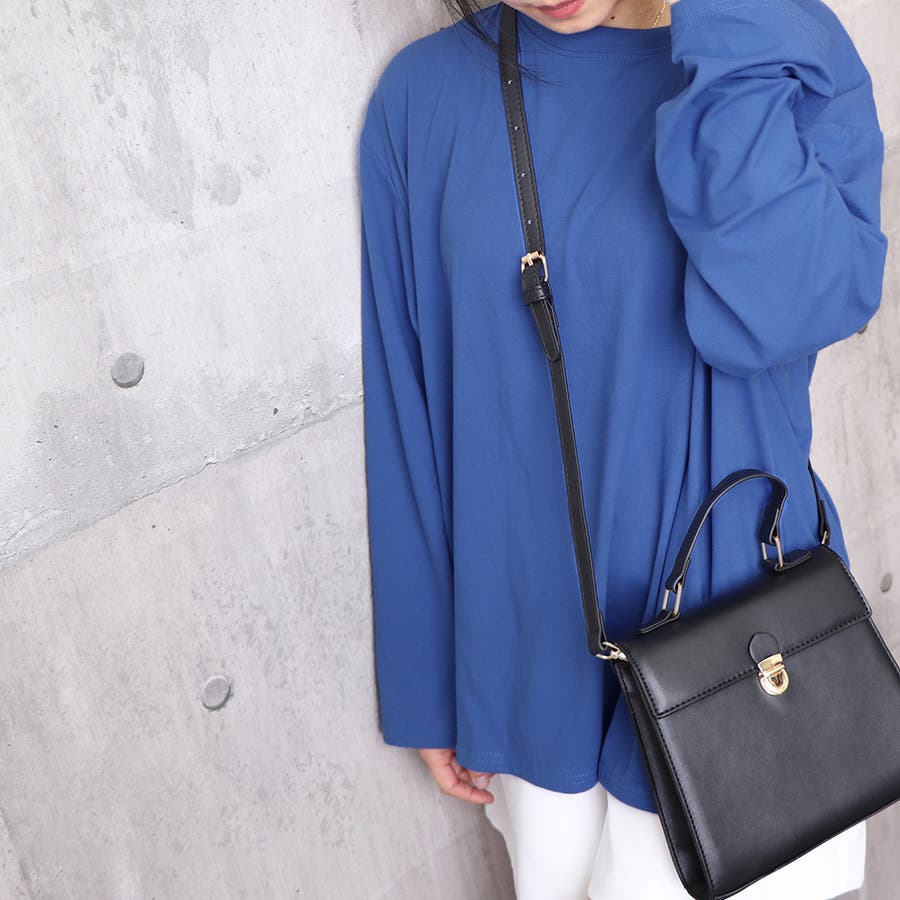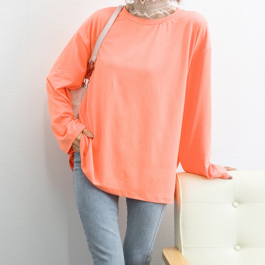 春秋コーデに欠かせない、ロングな丈感が特徴のクルーネック長袖Tシャツ