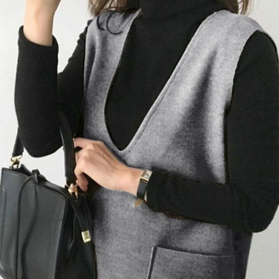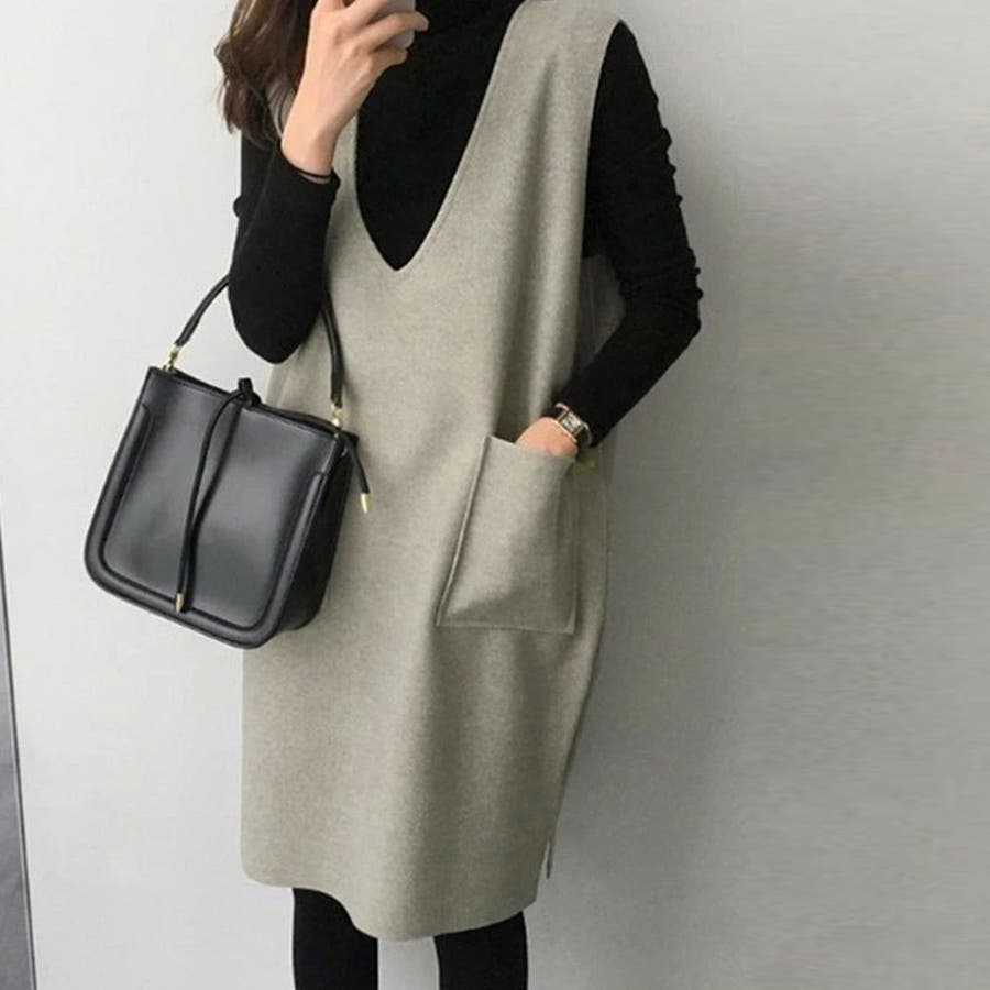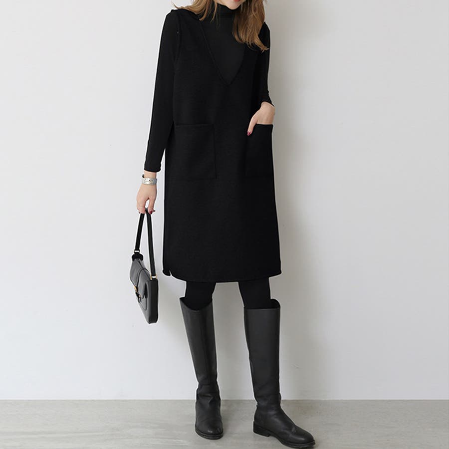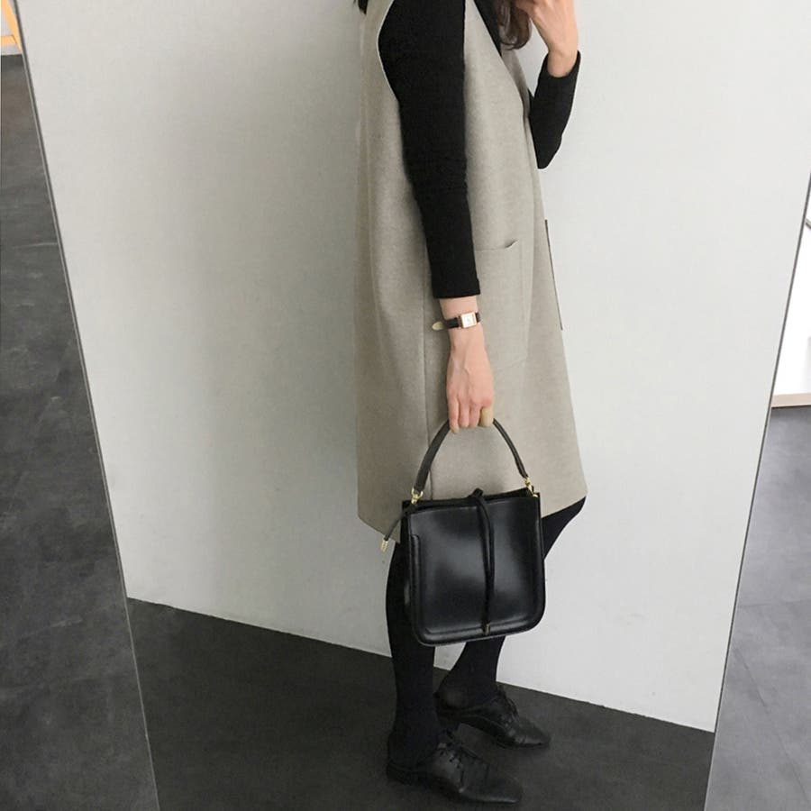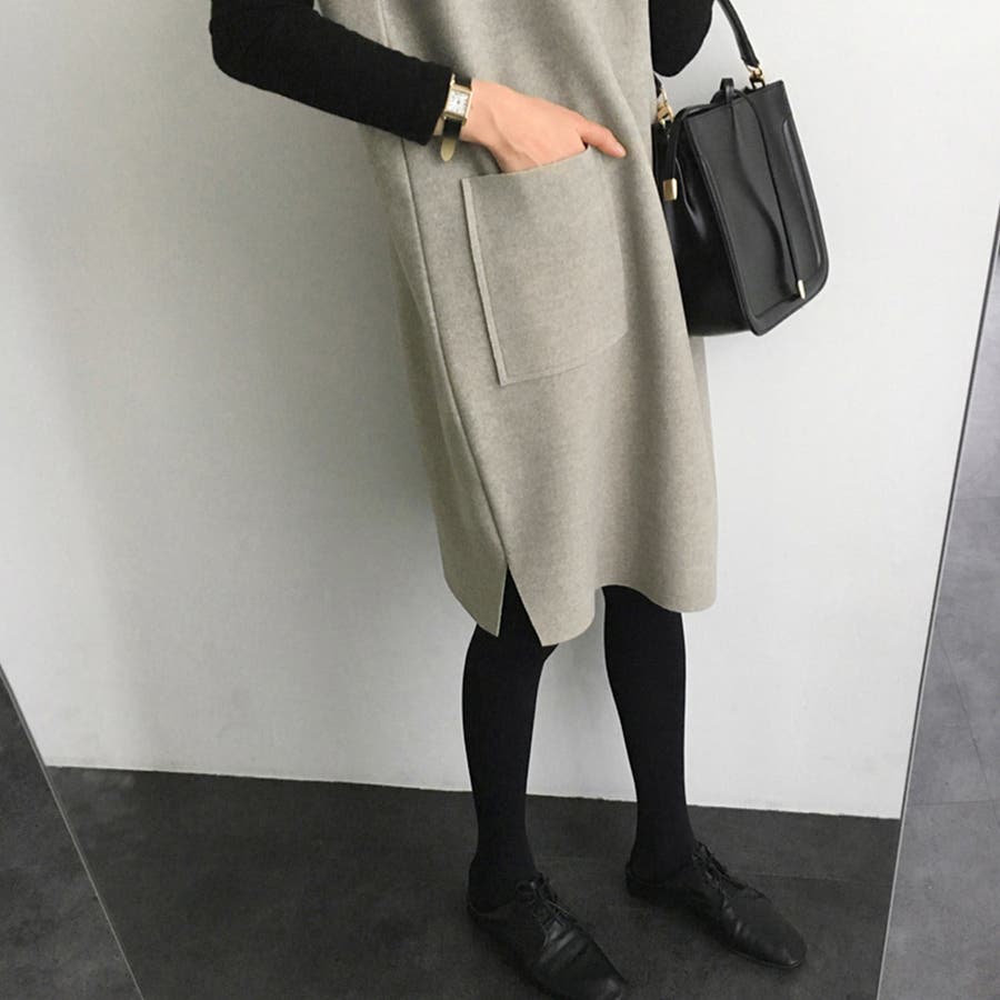 ゆったり無地ベスト 膝丈チュニック通勤 重ね着ベストワンピ