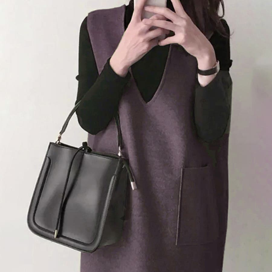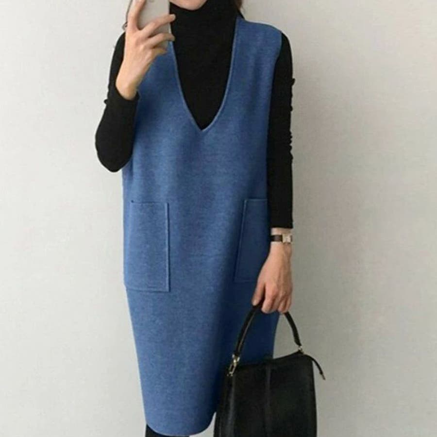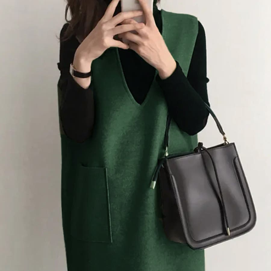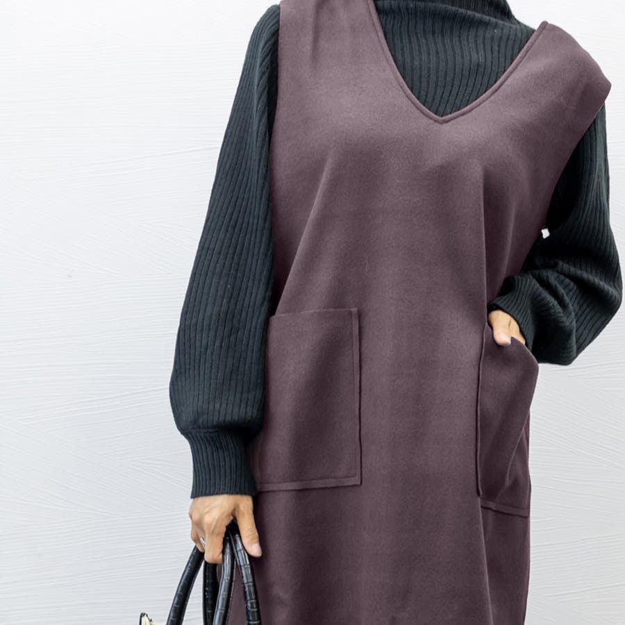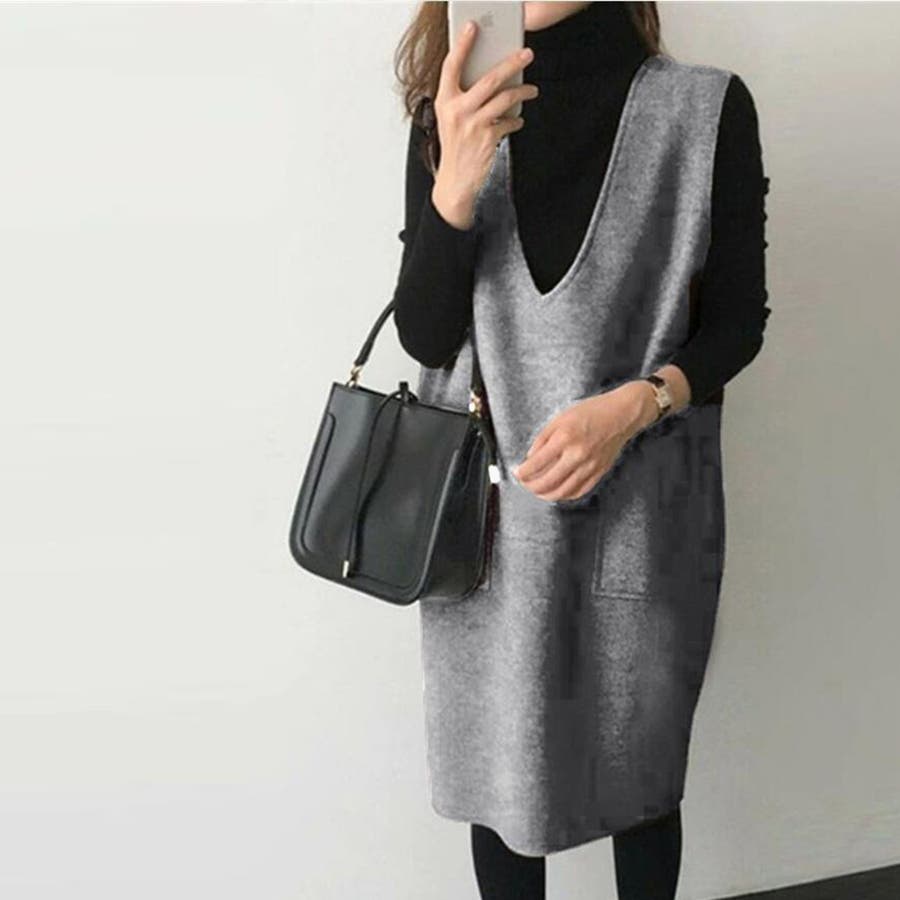 ゆったり無地ベスト 膝丈チュニック通勤 重ね着ベストワンピ