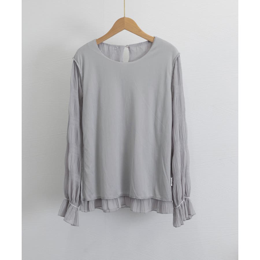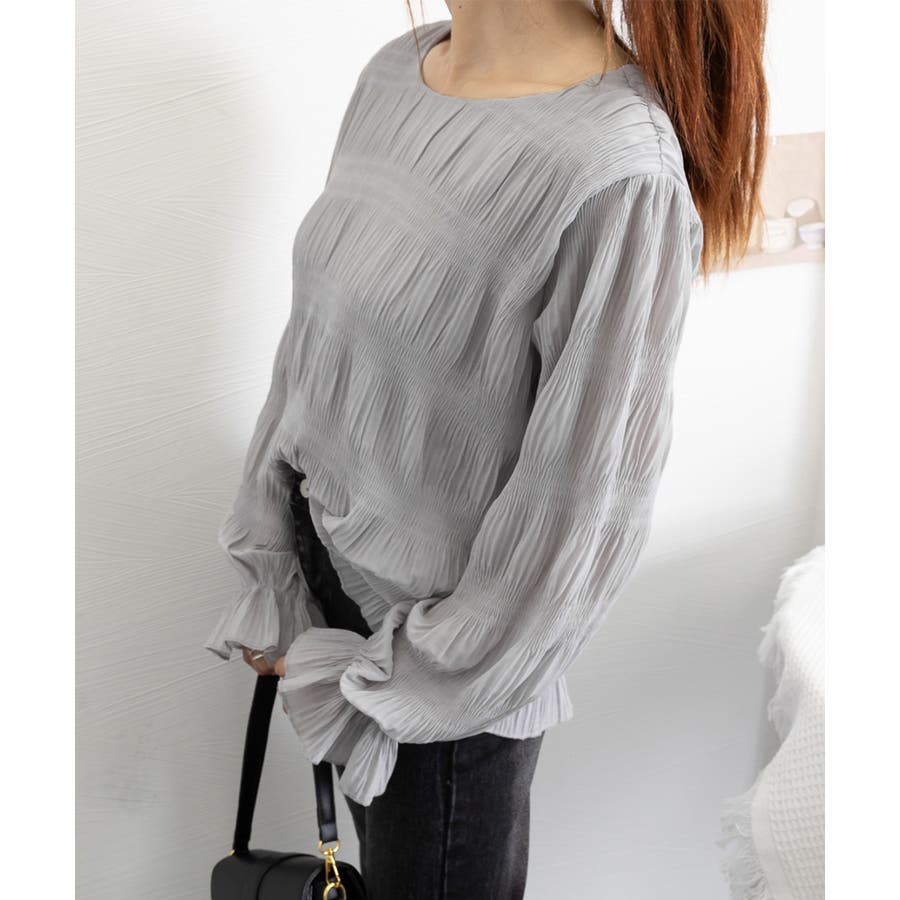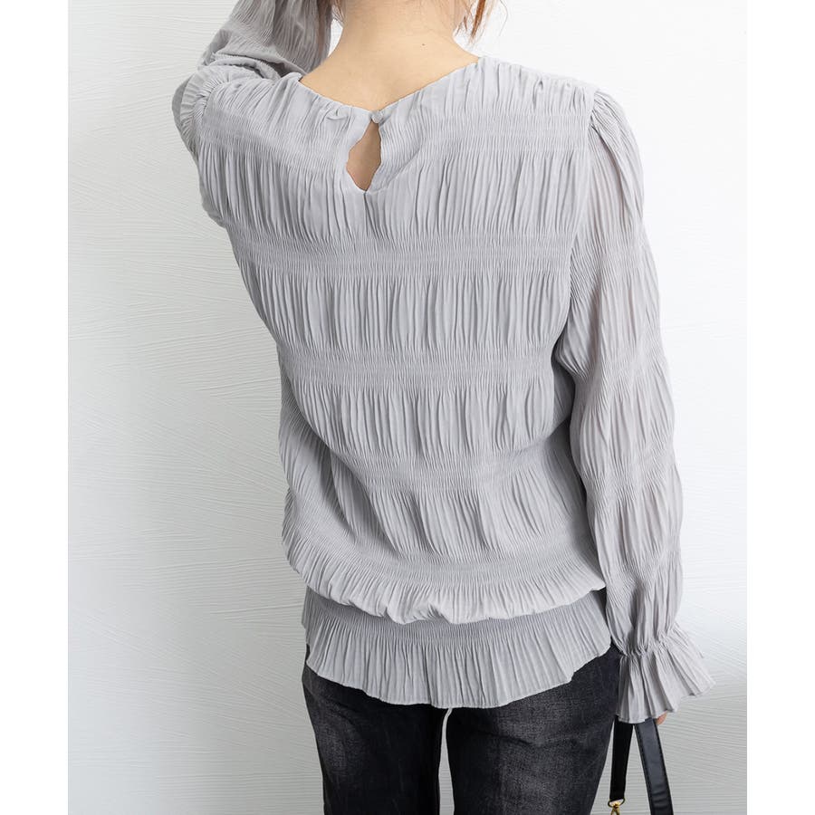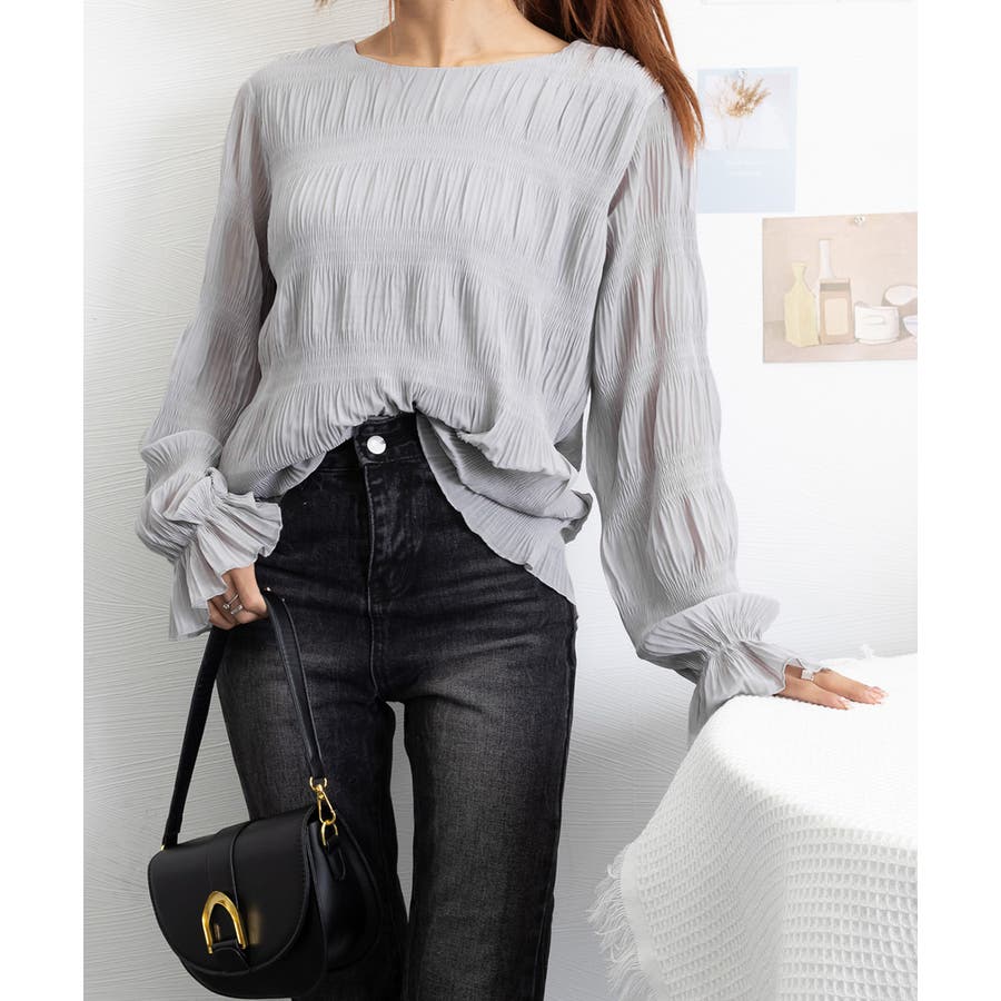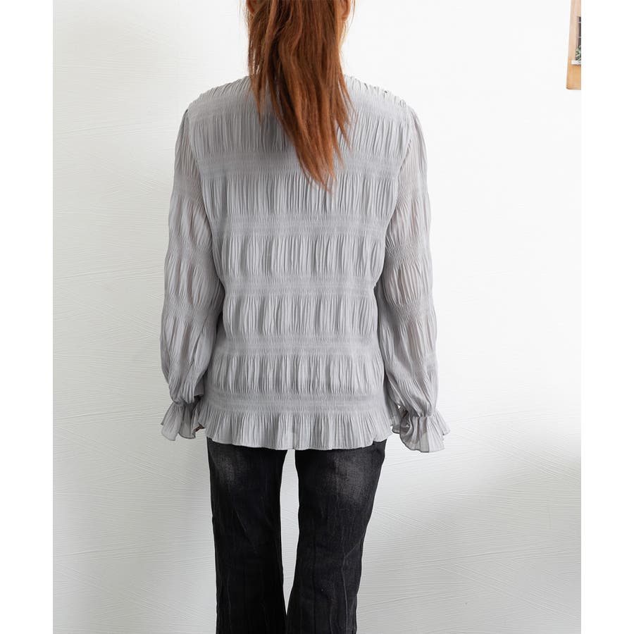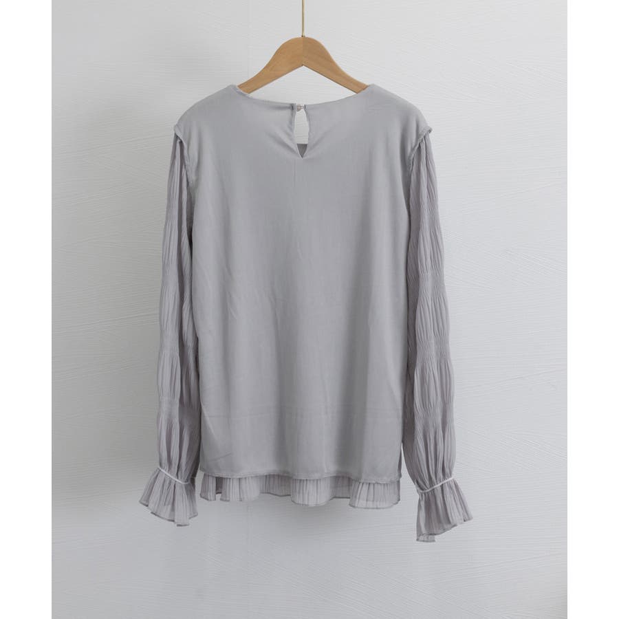 繊細なシャーリング加工を施したシアー素材が、スタイリングに抜け感を演出するシフォンブラウスです。