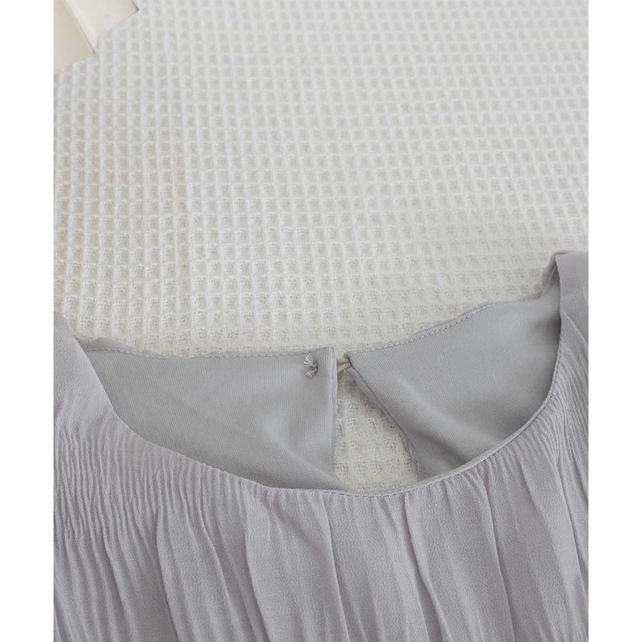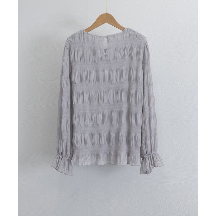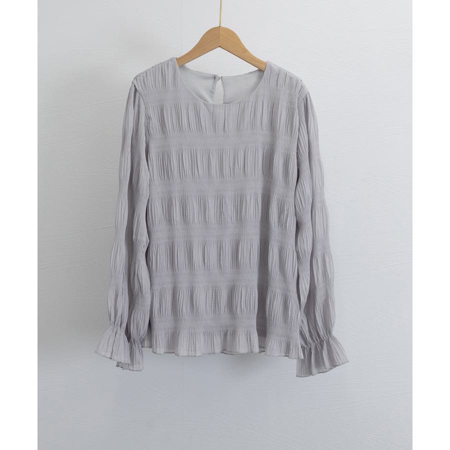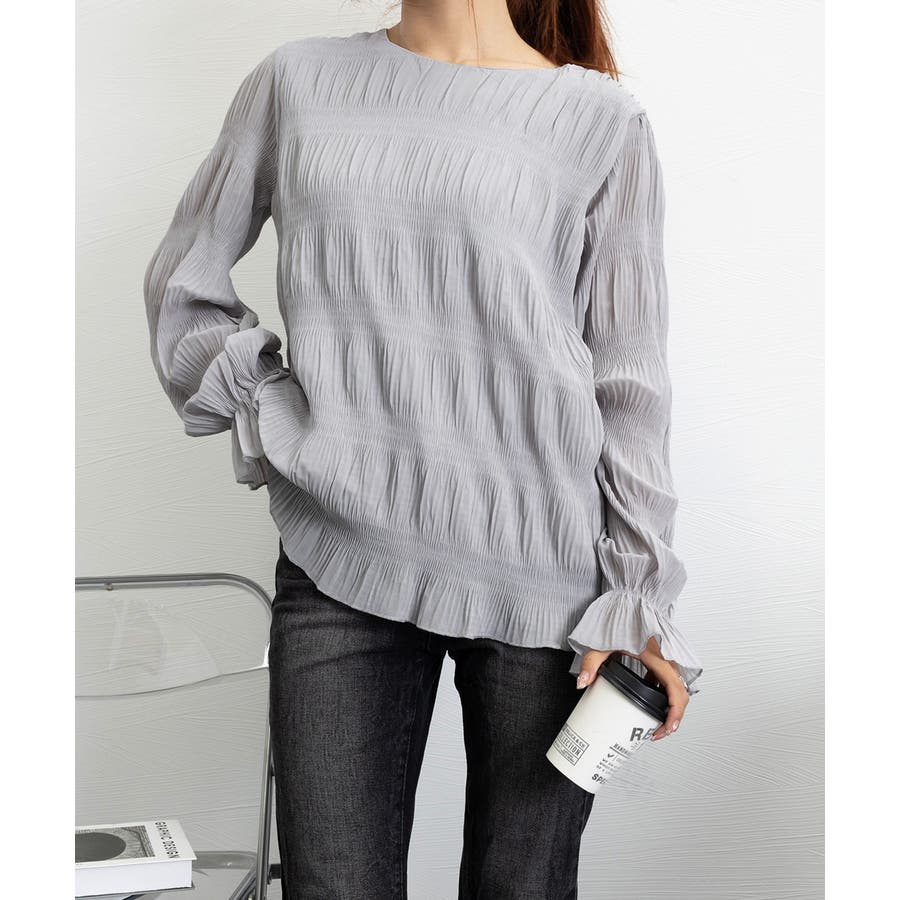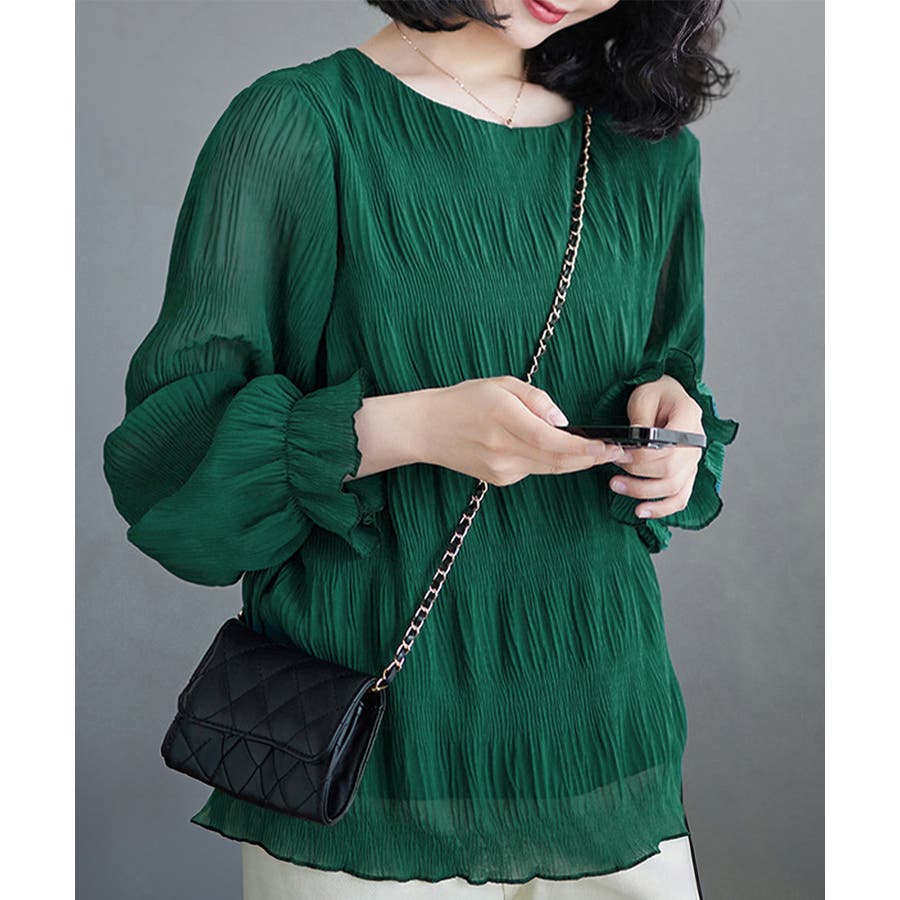 繊細なシャーリング加工を施したシアー素材が、スタイリングに抜け感を演出するシフォンブラウスです。