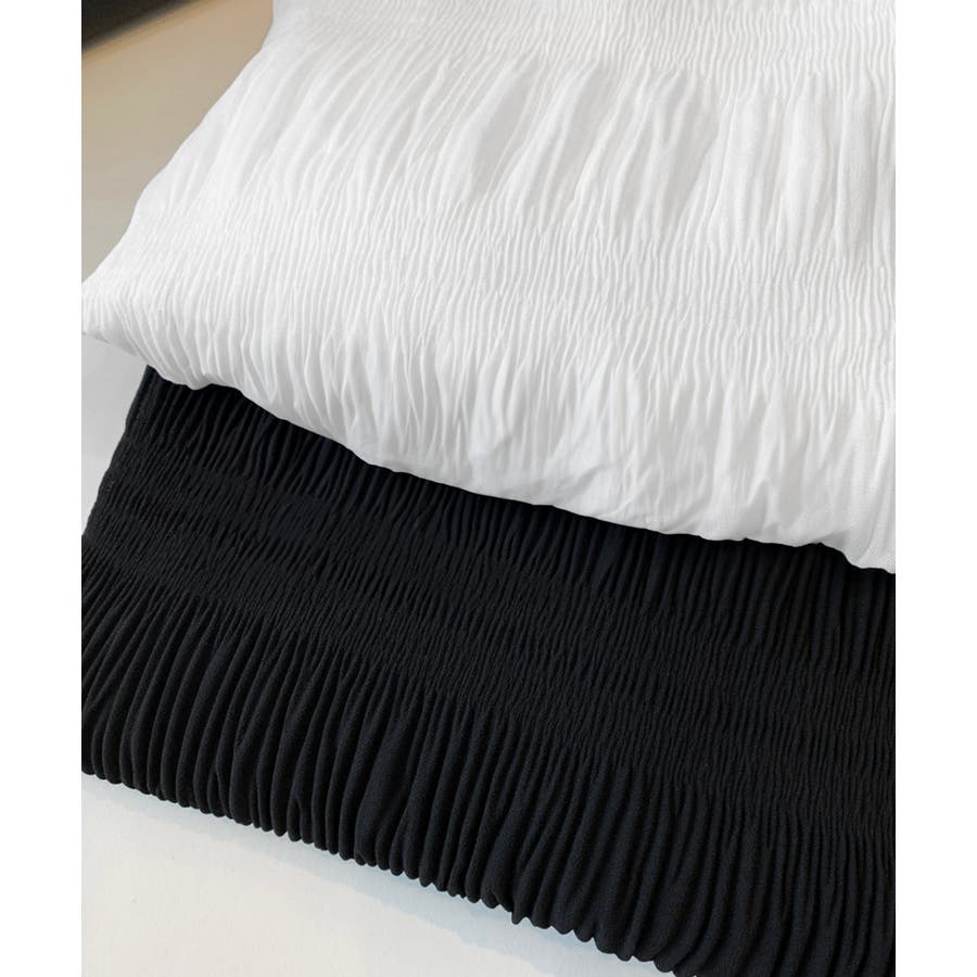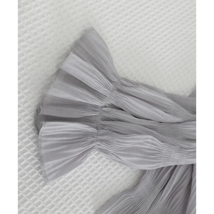 伸縮性:裏地あり/表地なし(プリーツの広がりにより楽に着られます)