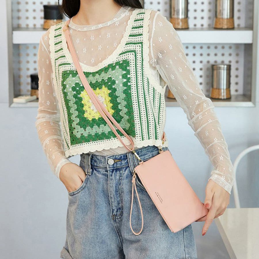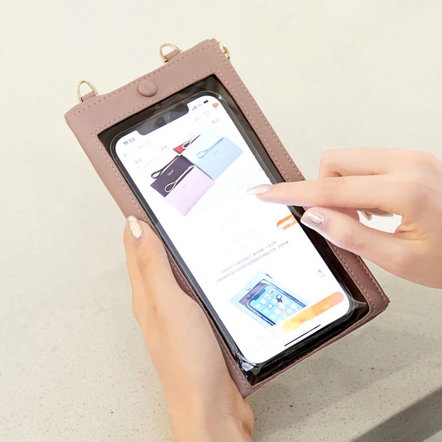 長さ調整可能なショルダー付きで両手が空くのが嬉しいポイント、独身女子はもちろん、忙しい子連れママさんにもおすすめのスマホポーチ