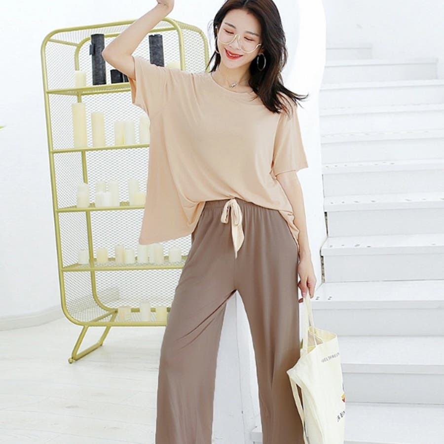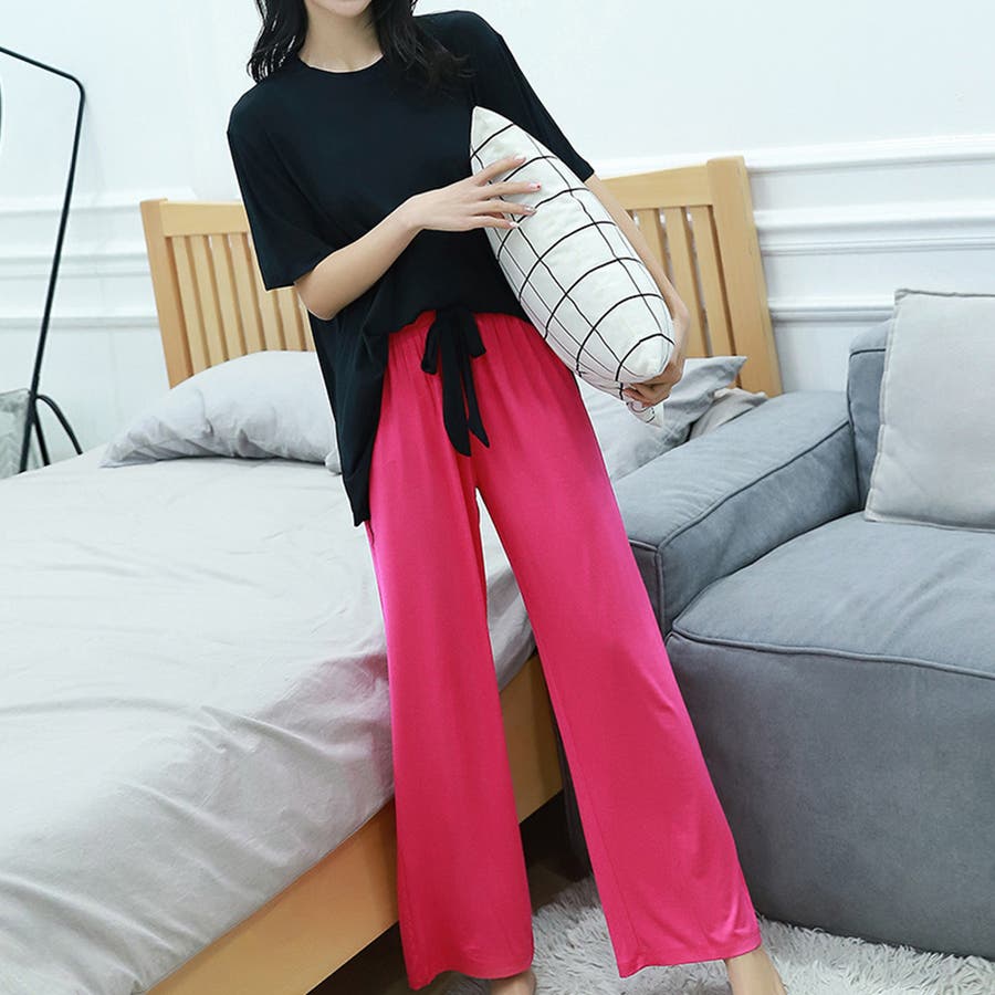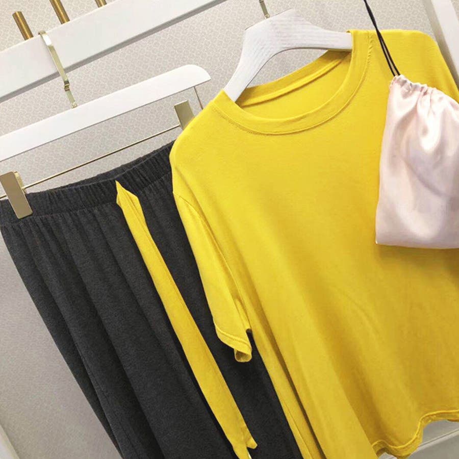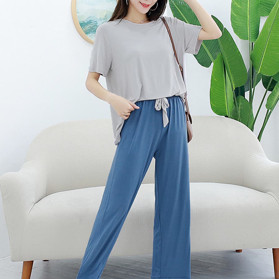 ロングパンツと半袖トップスのルームウェア2点セットです
