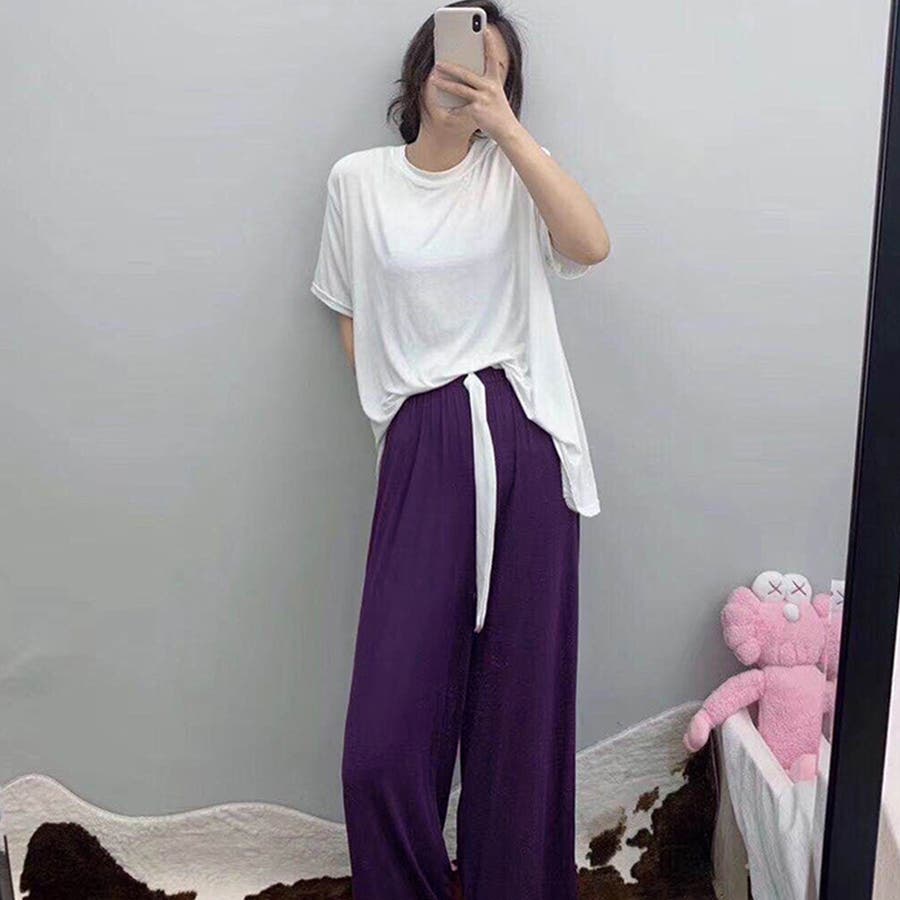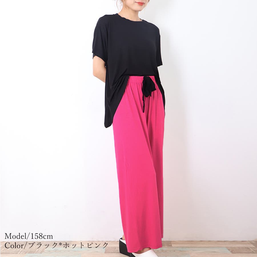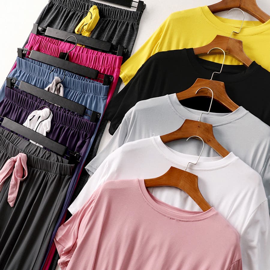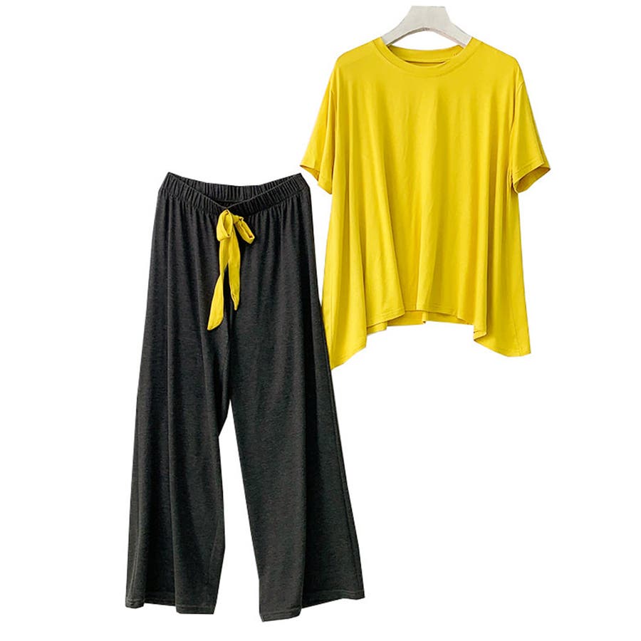 ロングパンツと半袖トップスのルームウェア2点セットです