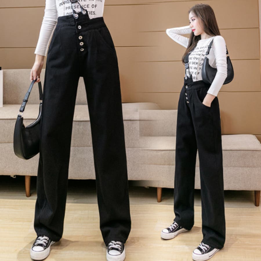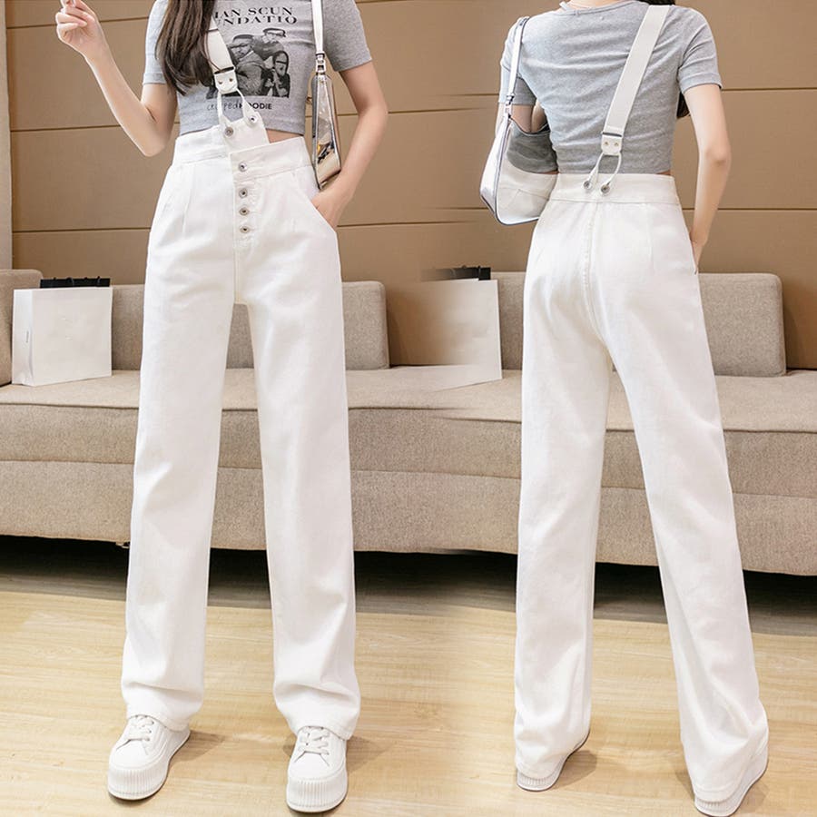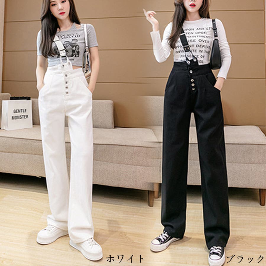 レディース ストレート サスペンダーパンツ 2way ジーンズ ジーパン 美脚 ハイウエスト オールインワン 韓国