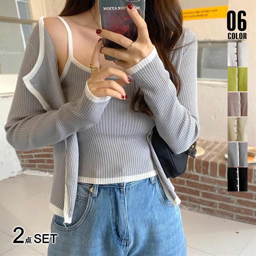 ニットカーディガン キャミ 2点セット