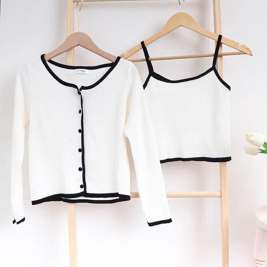 ニットカーディガンに同素材のキャミソールの2点セット