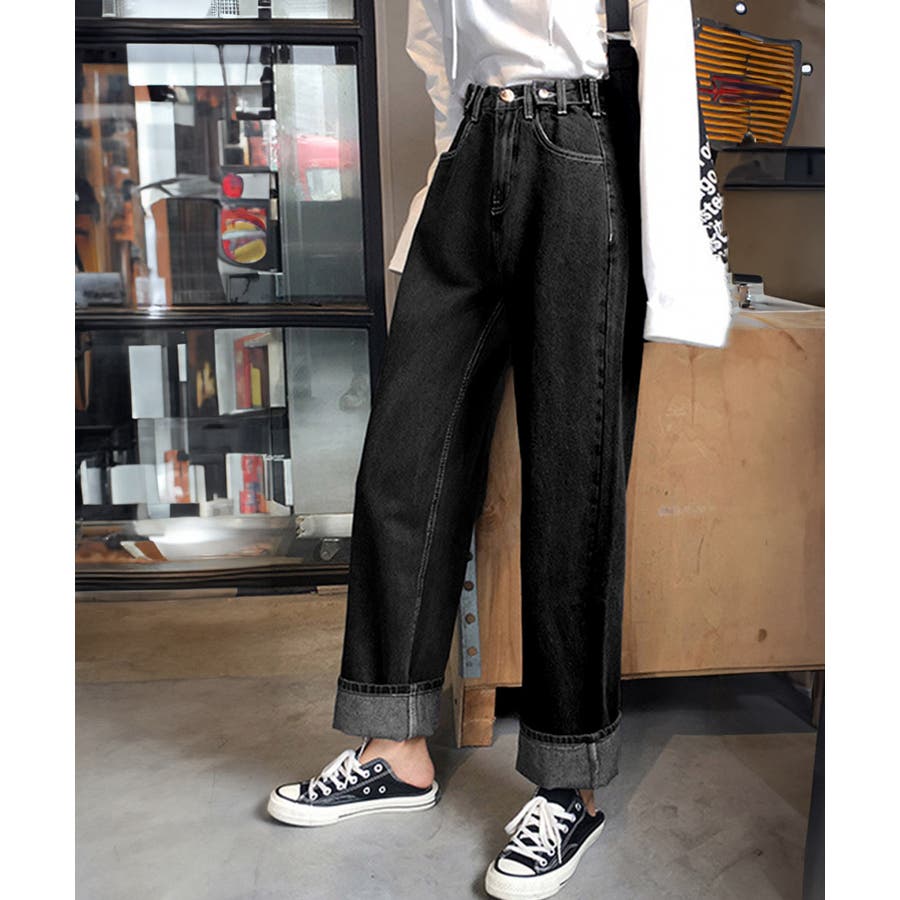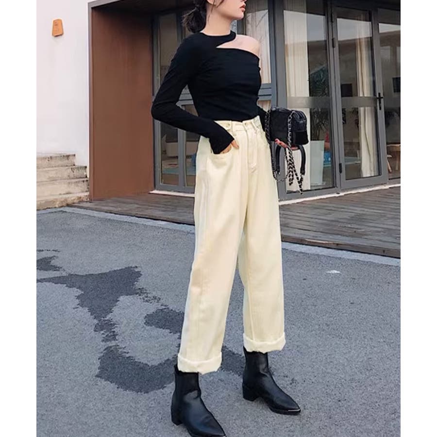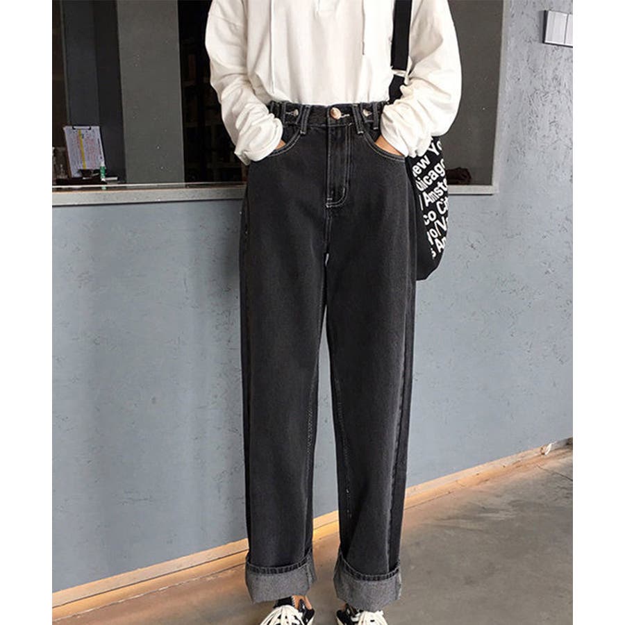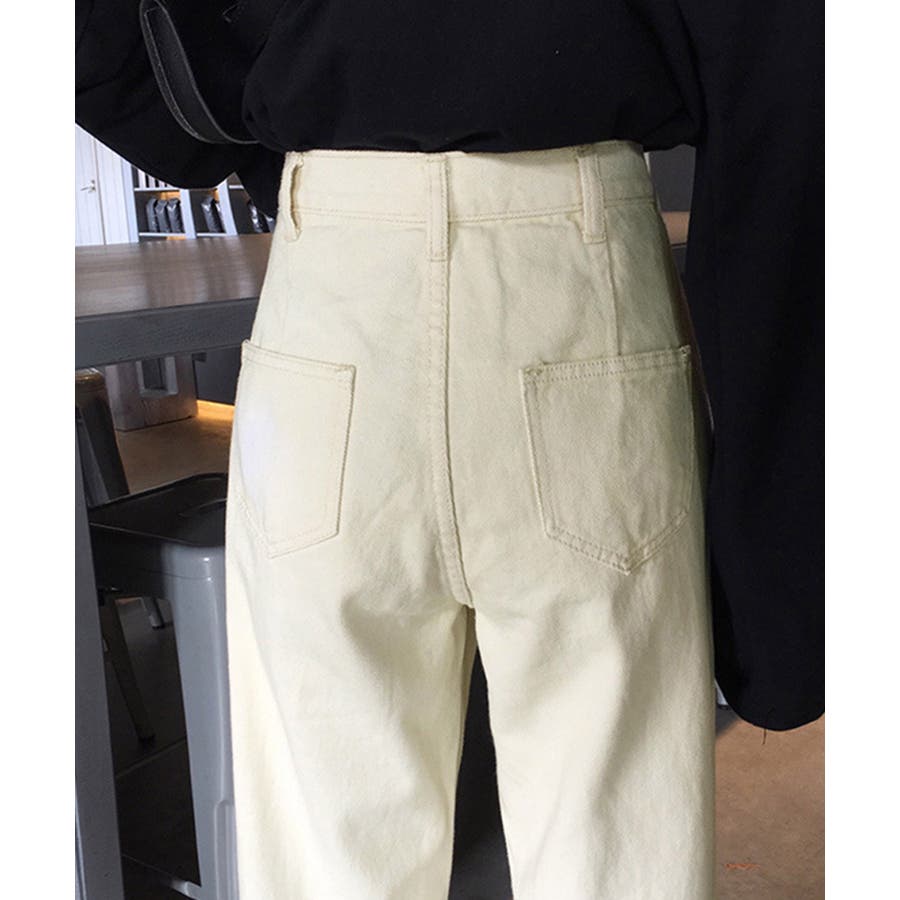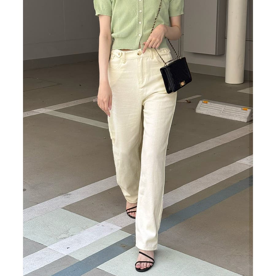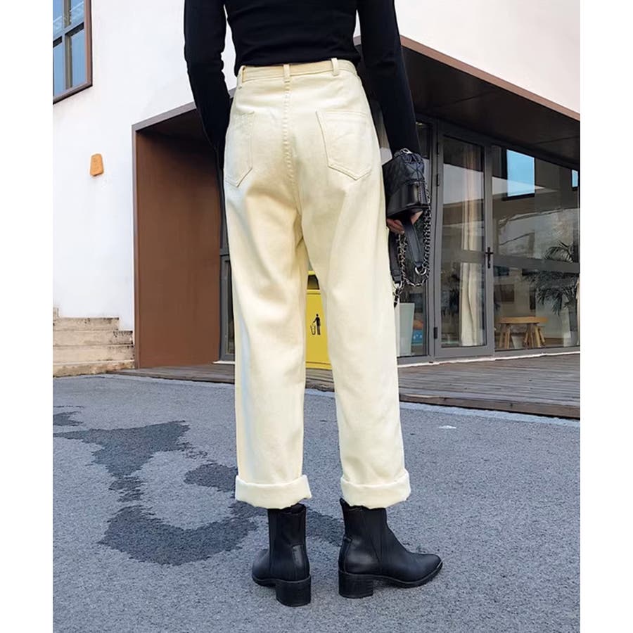 オルチャン長ズボン 裾 ロールアップ 細見えデニムパンツ