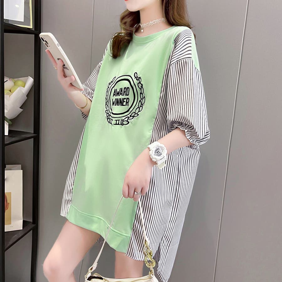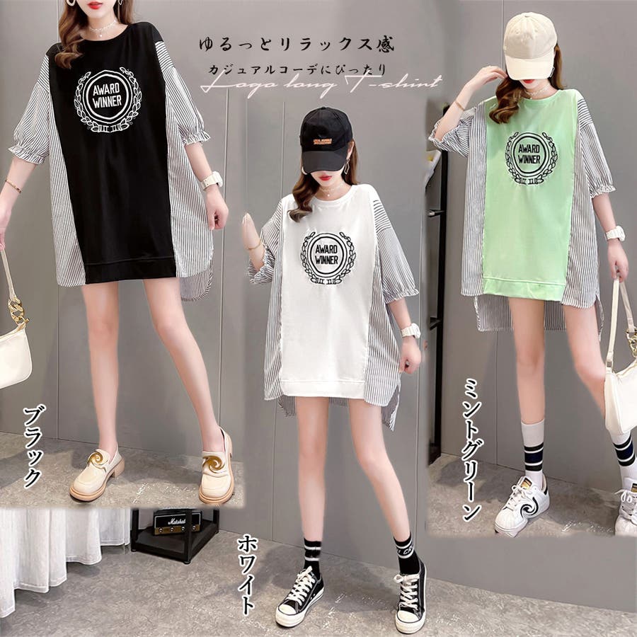 ロゴ チュニック 夏ロングTシャツ 半袖