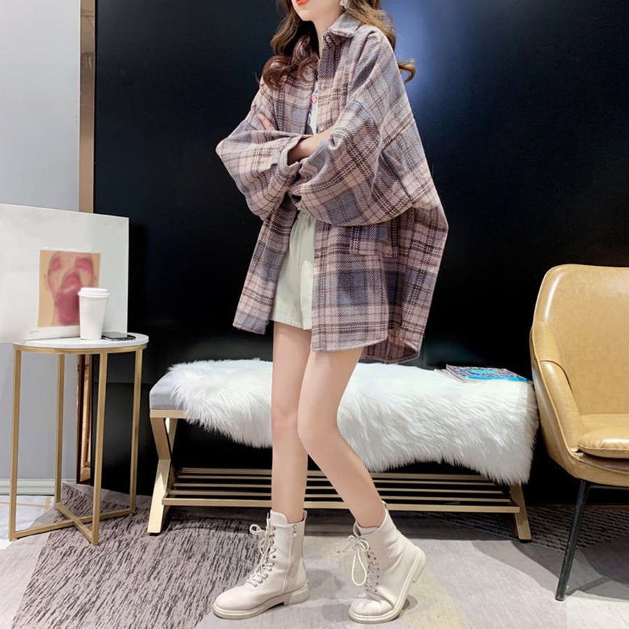 大きめ 長袖羽織り 体形カバー シャツ お洒落アウター秋冬