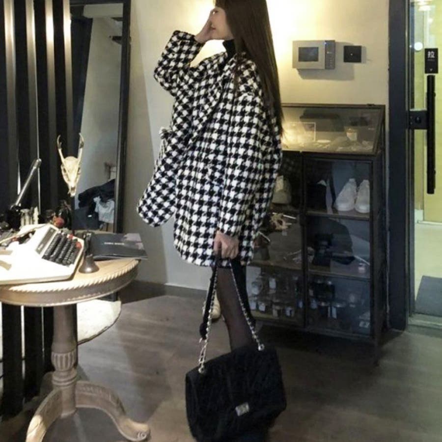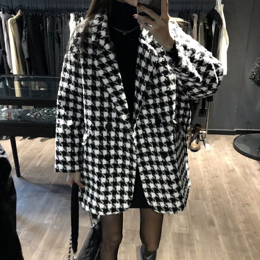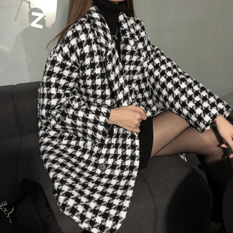 大ぶりの千鳥格子柄がクラシカルな味わいを感じさせるテーラードジャケットコート