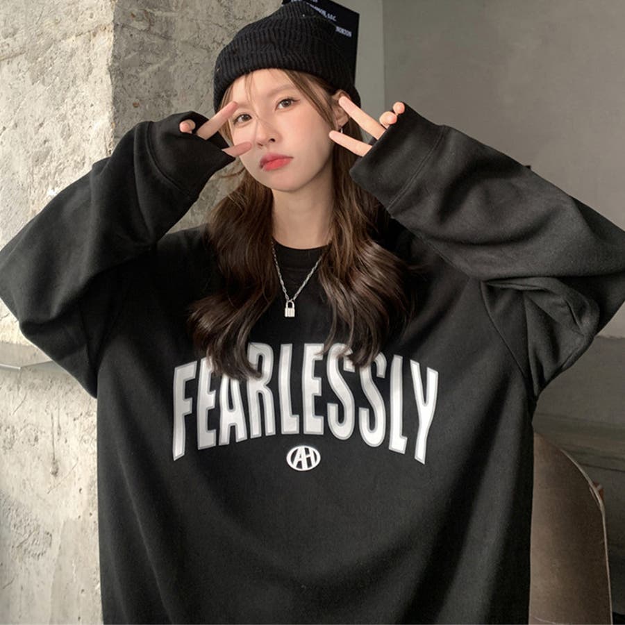 フロントの英字ロゴが目を惹くBF風トレーナー