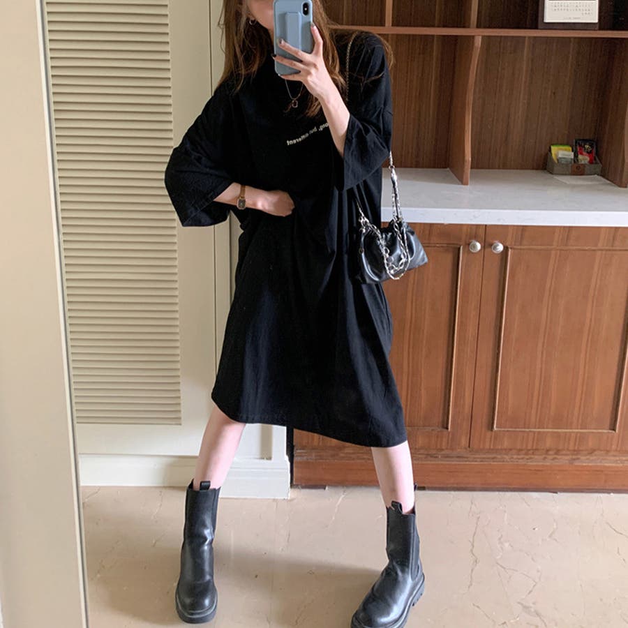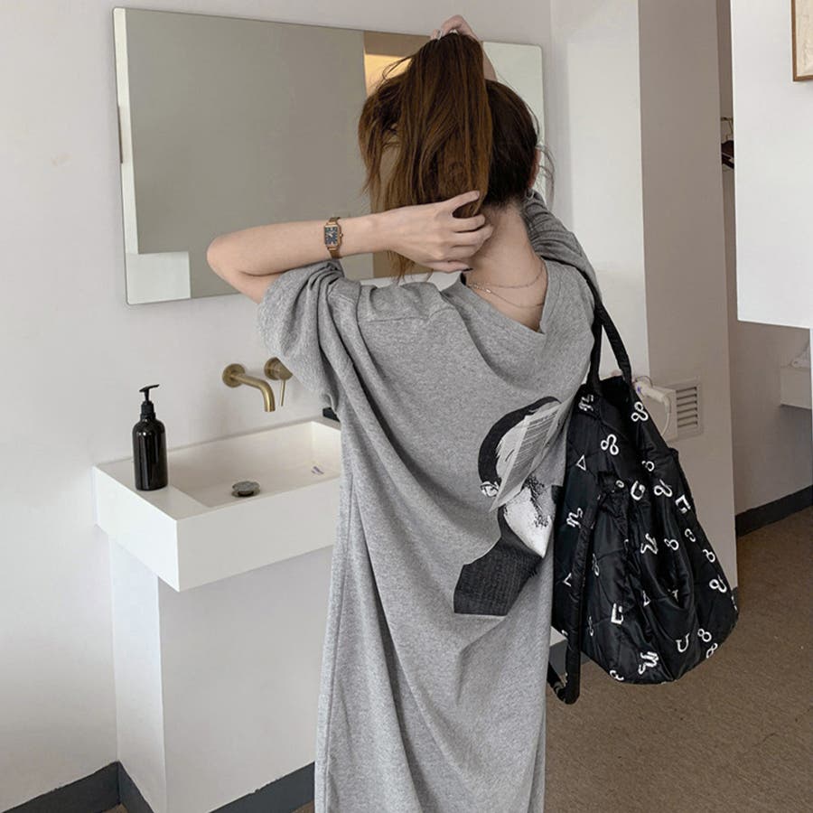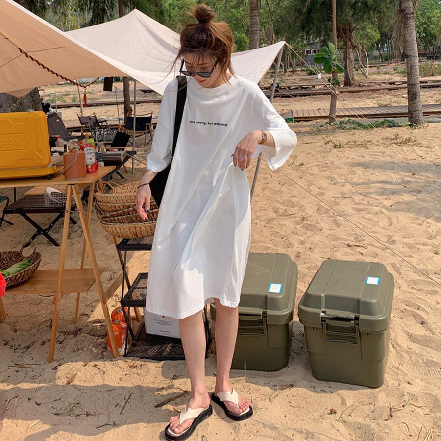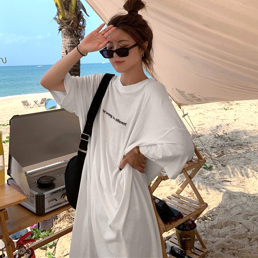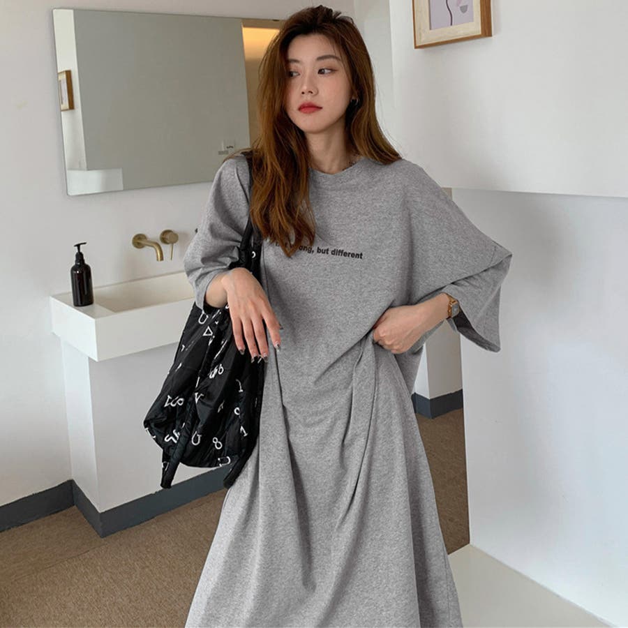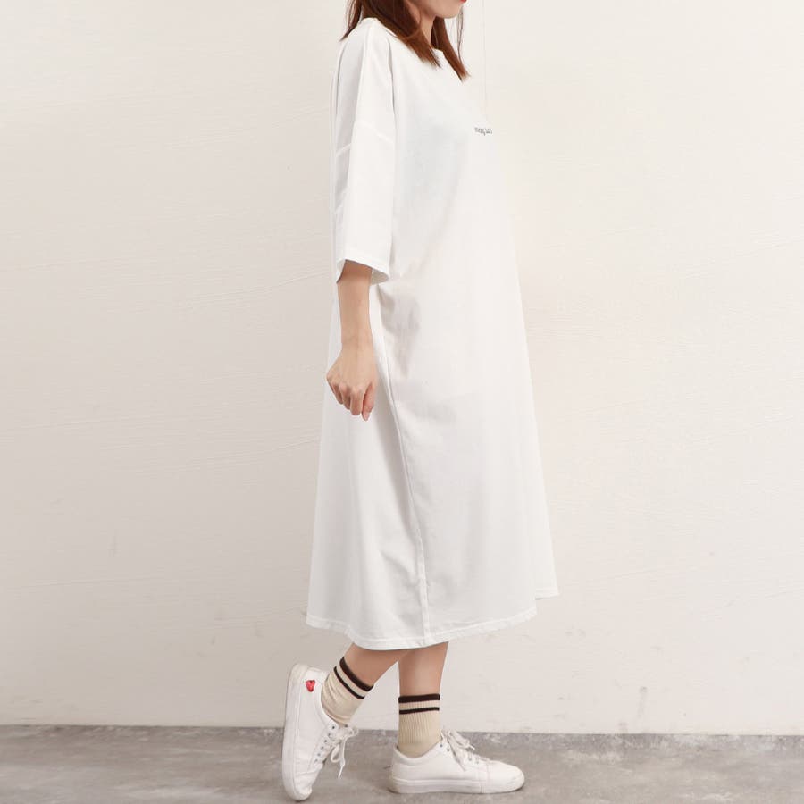 ルーズなシルエットがカジュアルで可愛いロング丈Tシャツワンピース