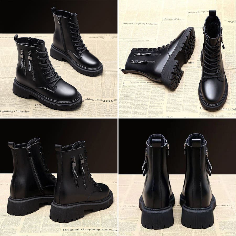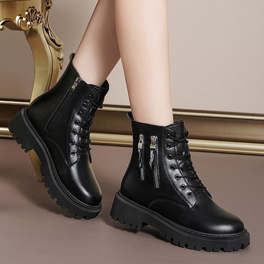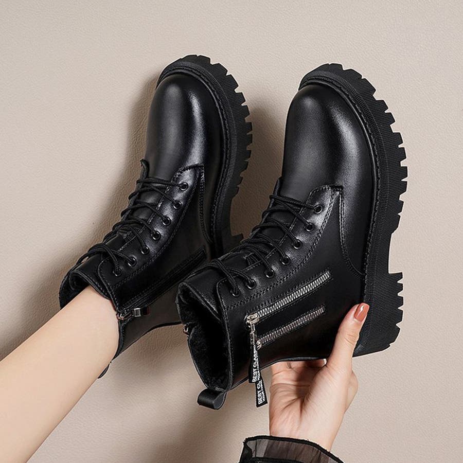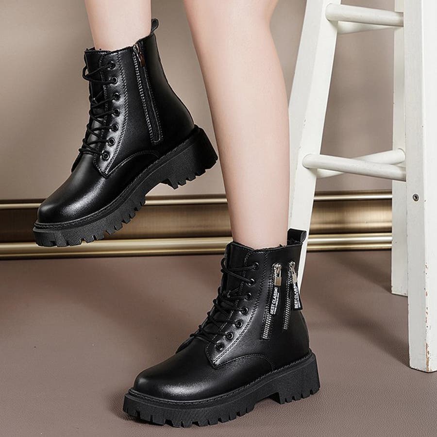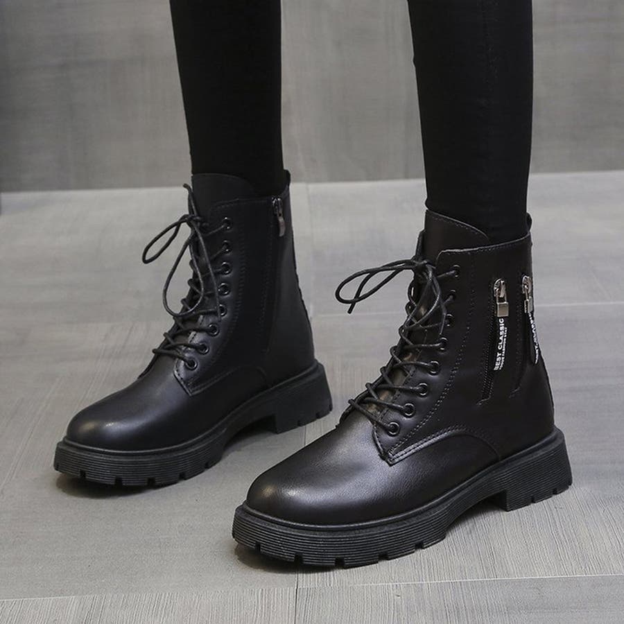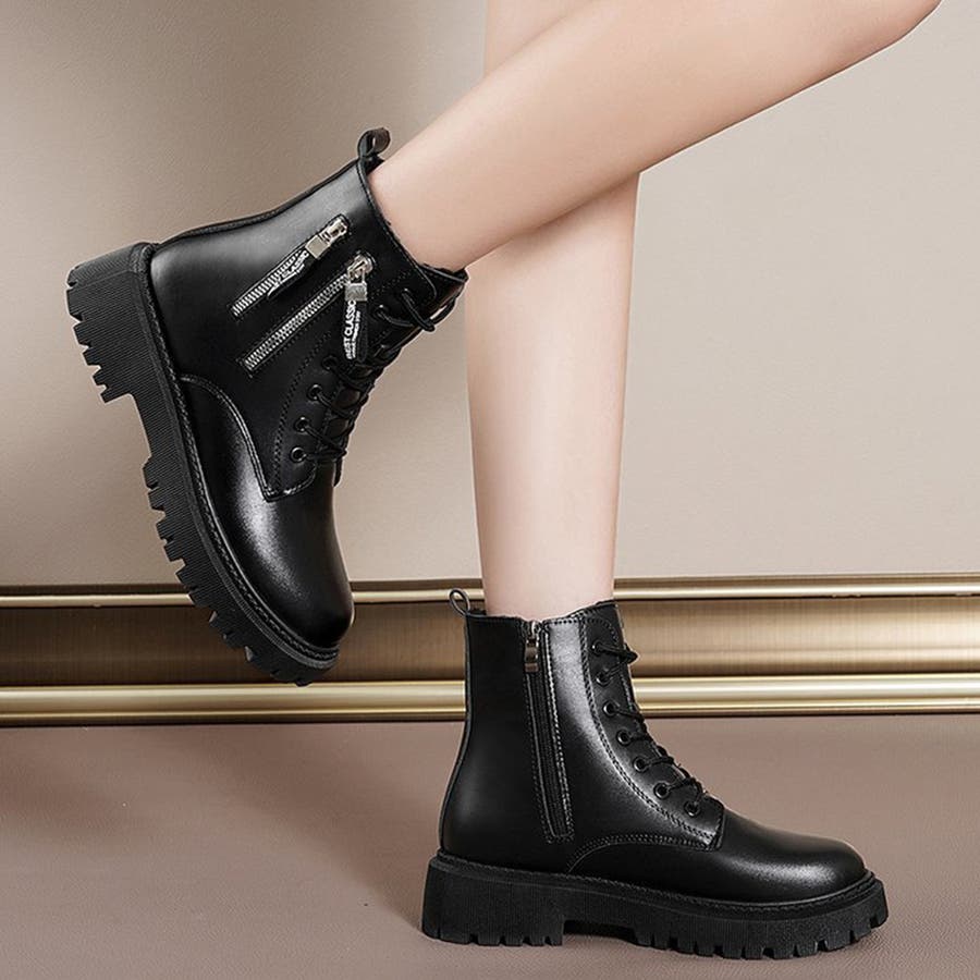 秋冬厚底靴疲れない 通勤通学 ブーツ黒 ローヒールおしゃれ