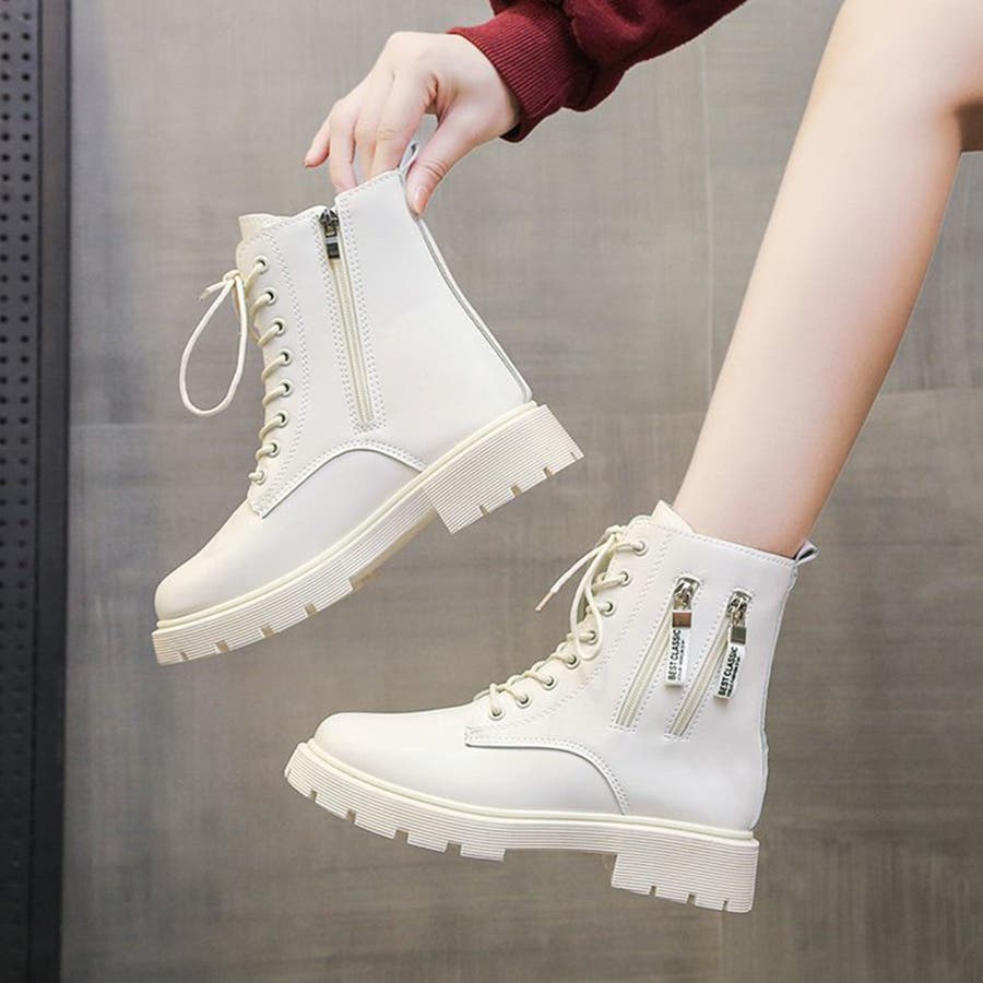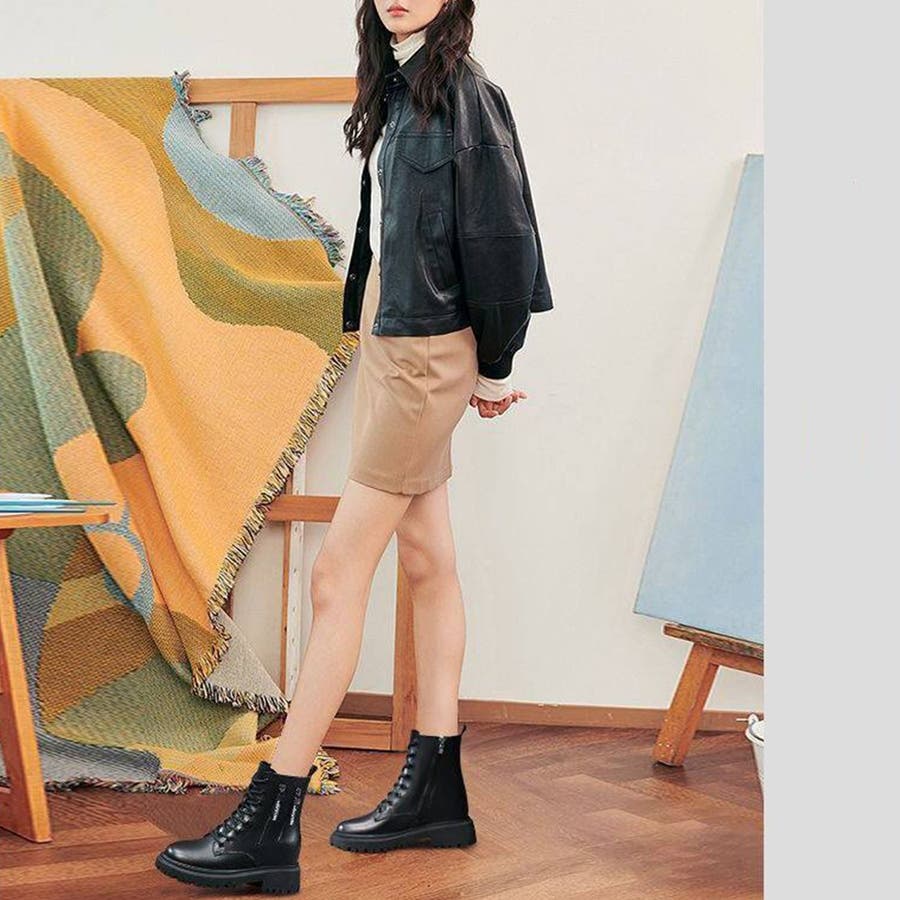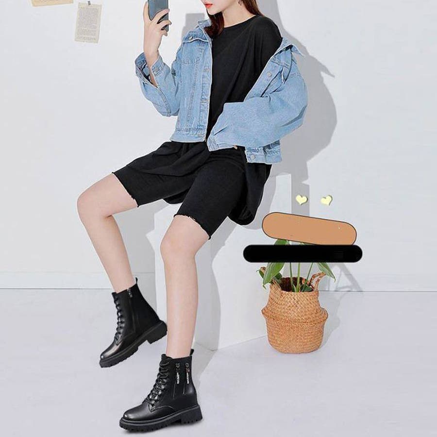 ボリューミーなアウトソールは身長アップ見せがバッチリな韓国新作DESIGNの編み上げショートブーツ