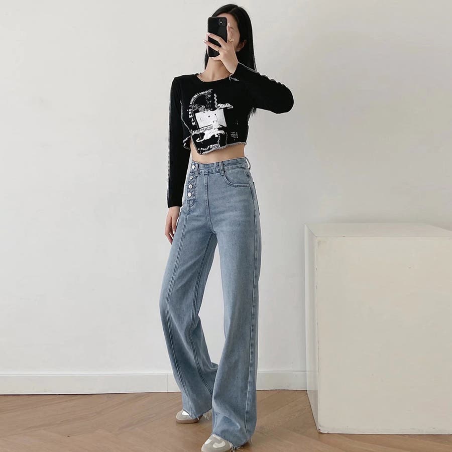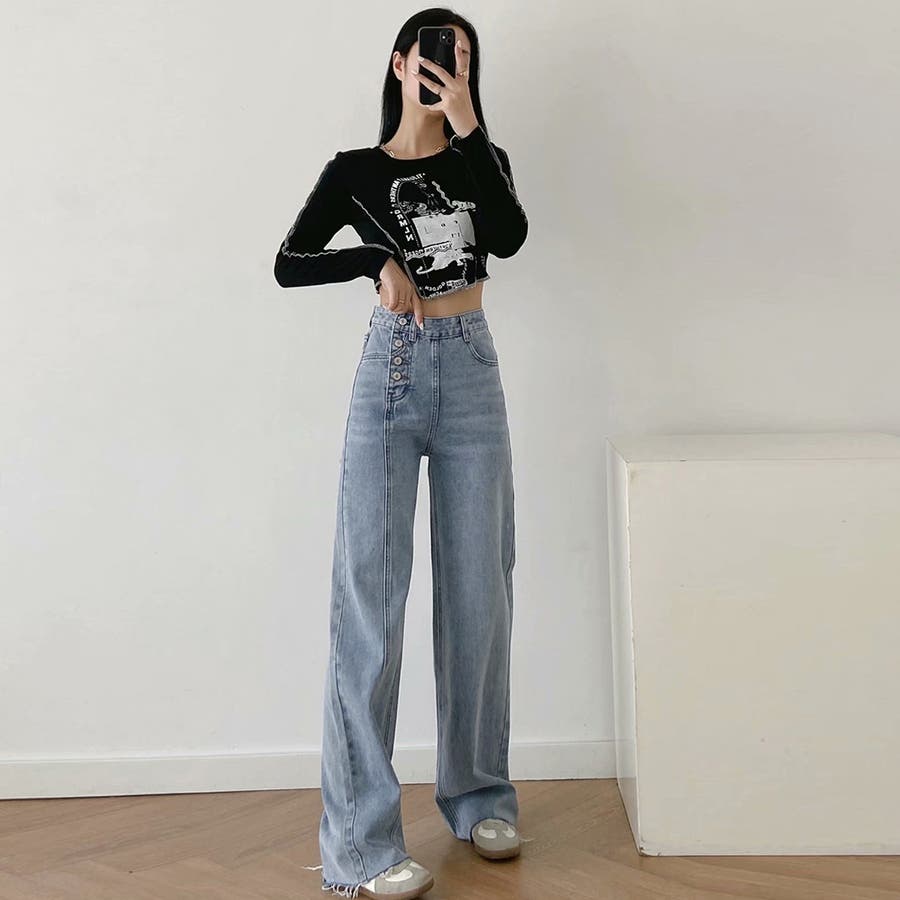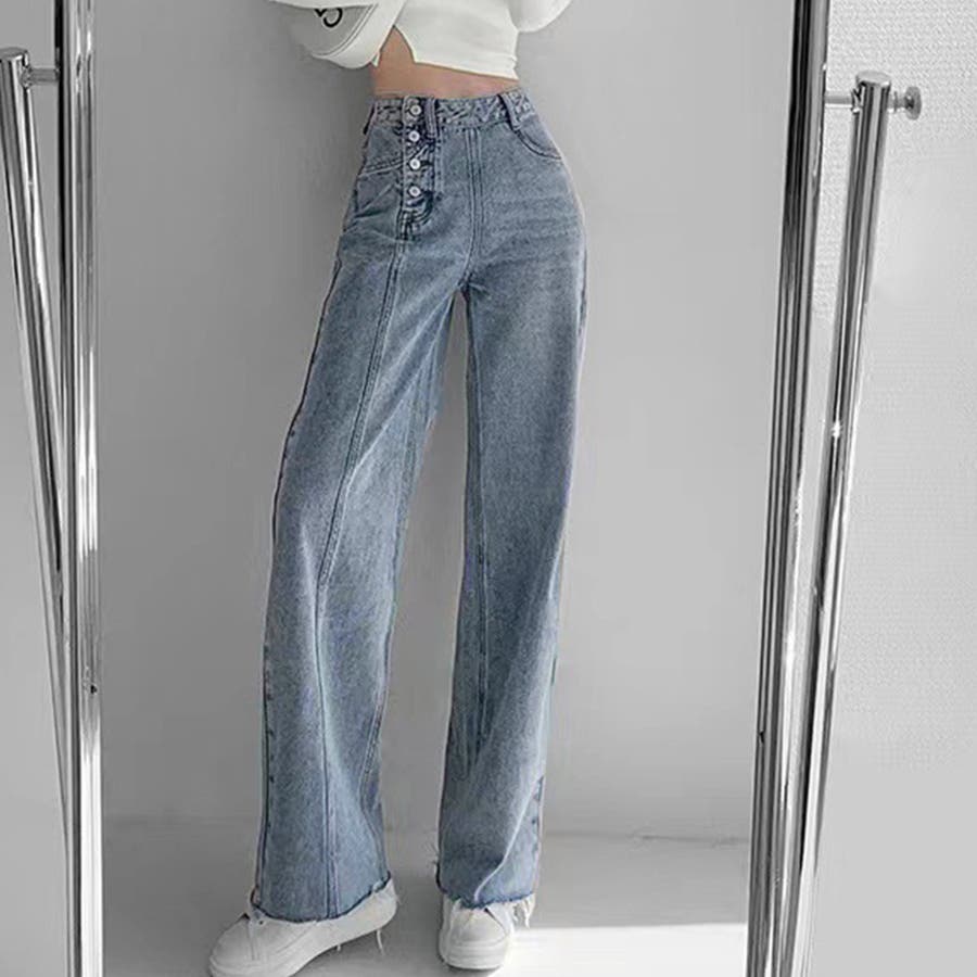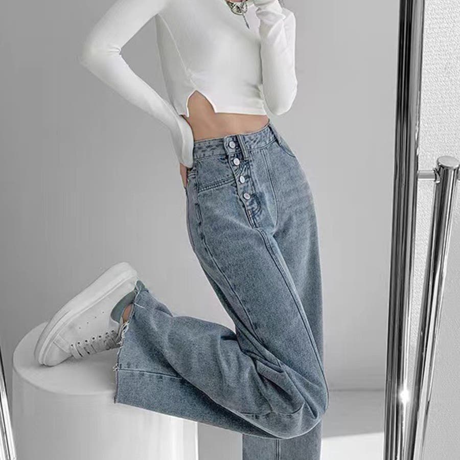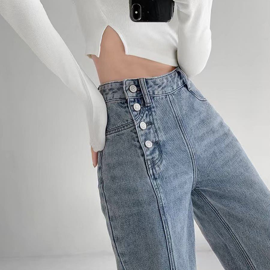4連ボタンデザイン 美脚デニム春夏秋冬 脚長ジーパン着やせ