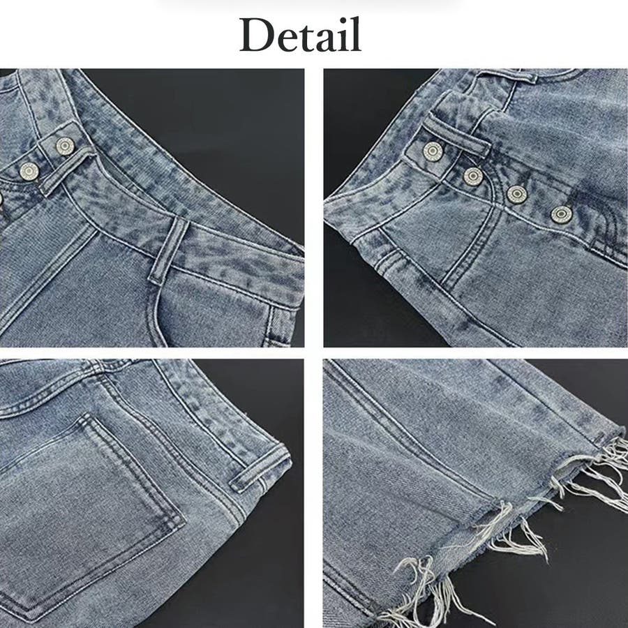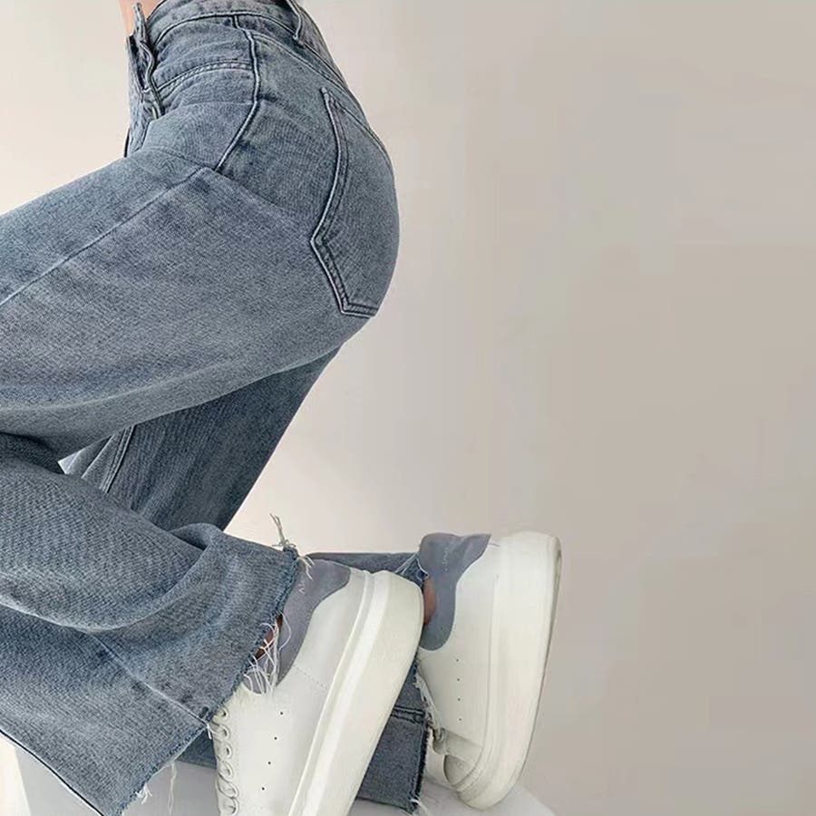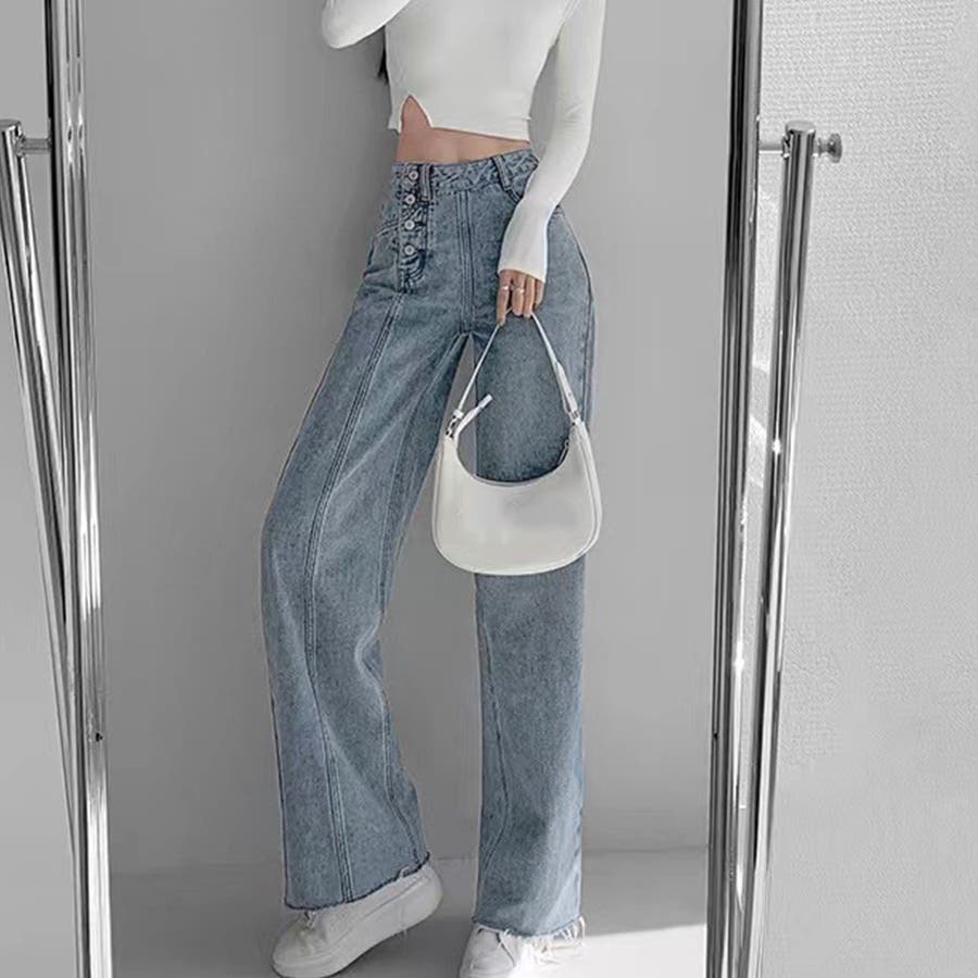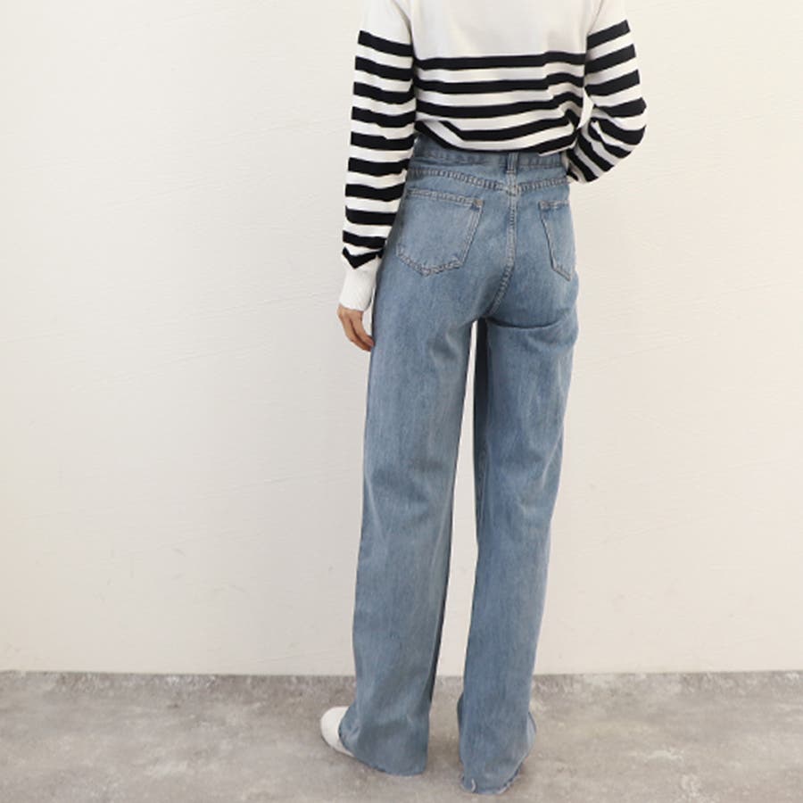 レディース セミワイドパンツ ストリート ロングパンツ 切りっぱなし ジーパン カジュアル ズボン お洒落 ジーンズ