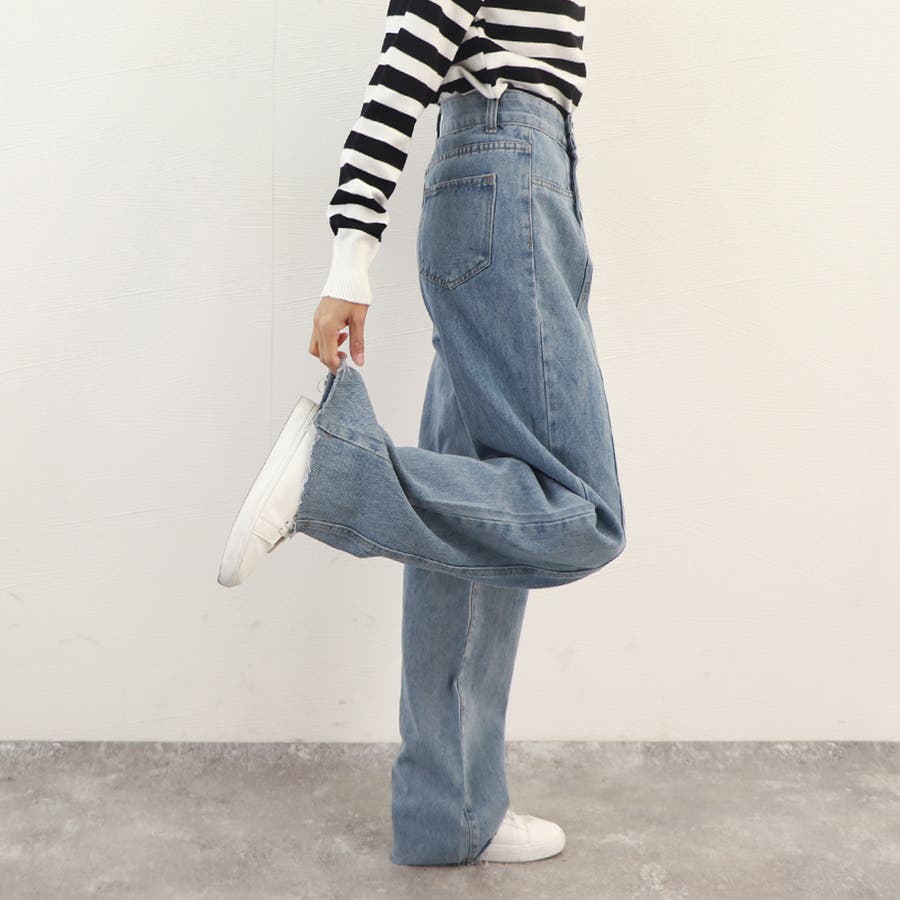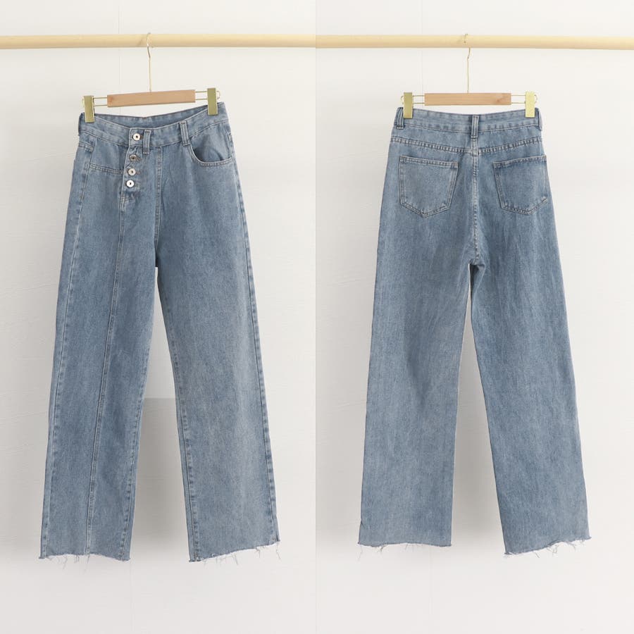4連ボタンがアクセントのハイウエストデザインでスタイルアップに導いてくれるデニムワイドパンツ
