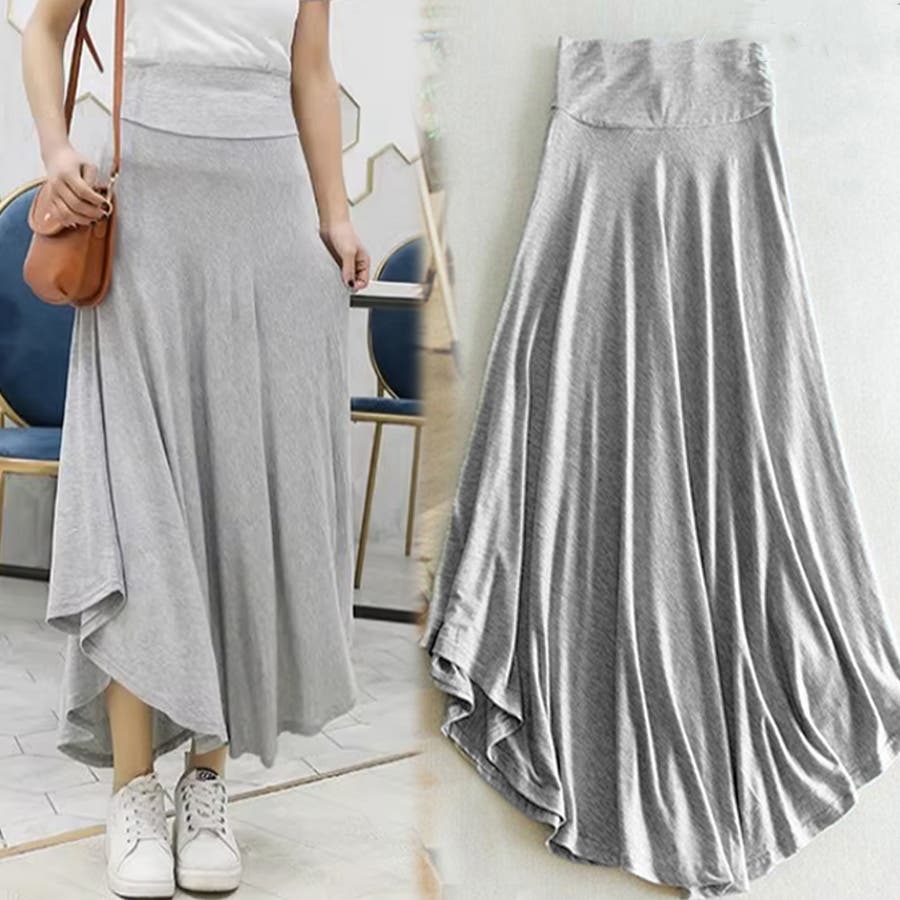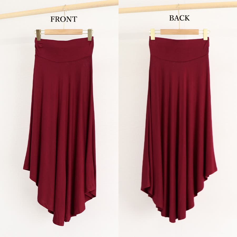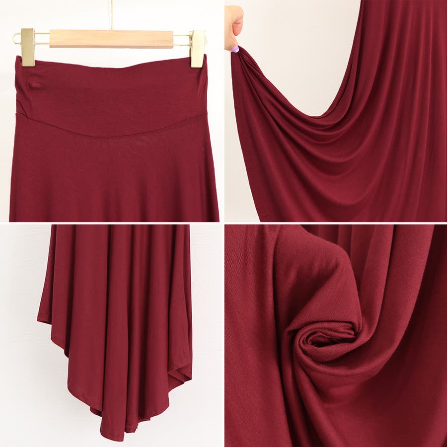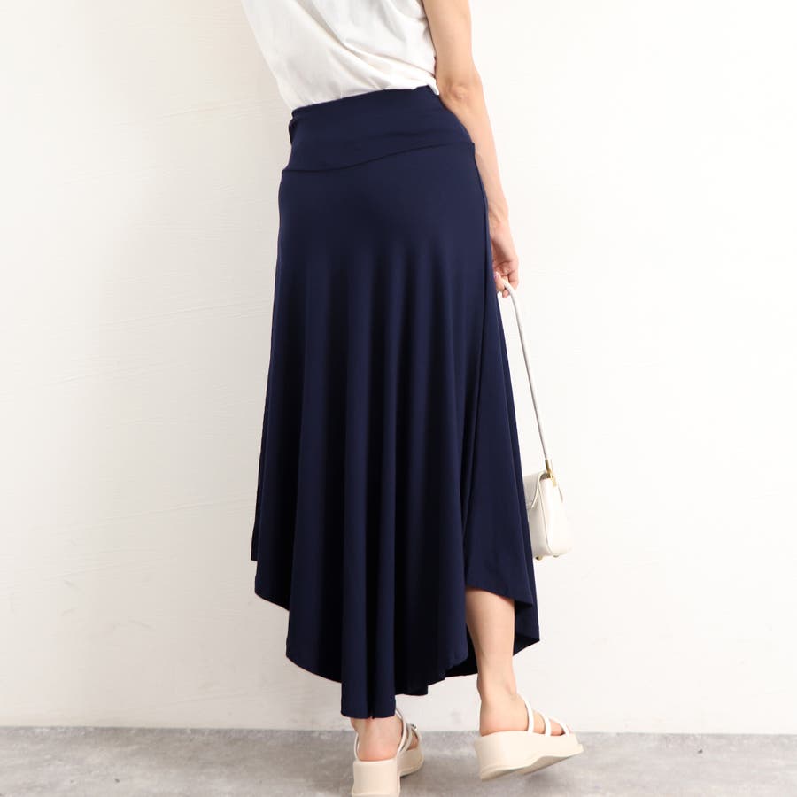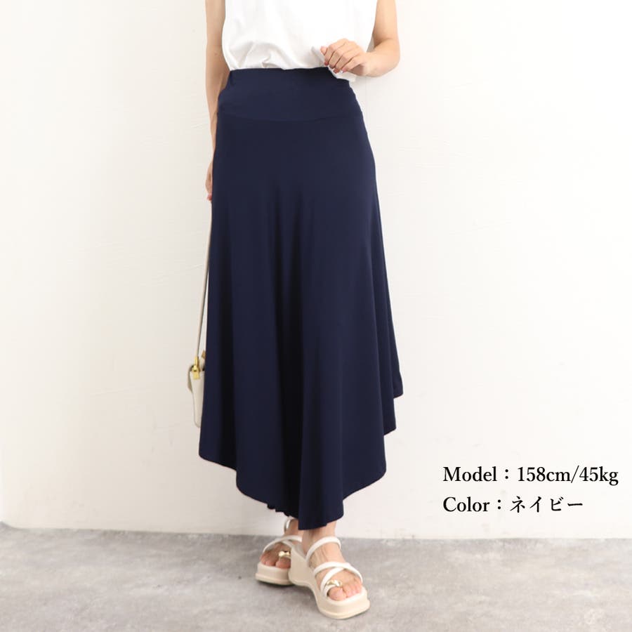 とろんと落ち、歩く度に優美に揺れ、上品な印象になるアンバランス丈とろみスカート