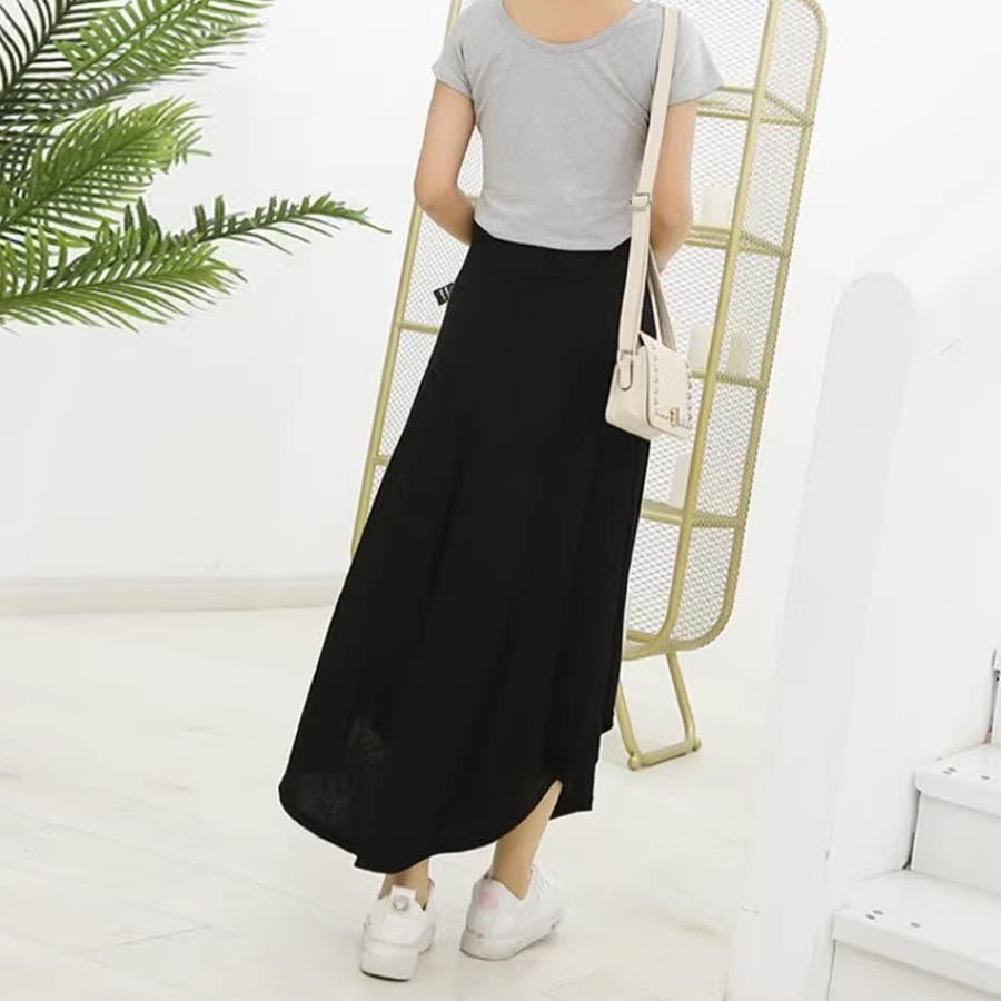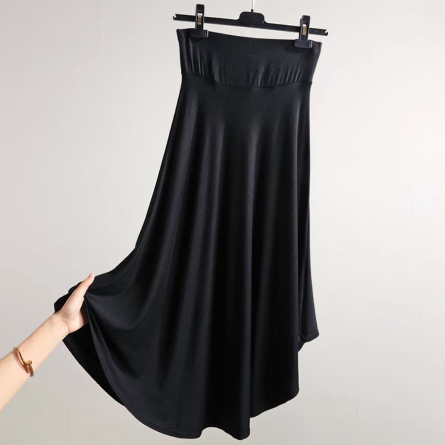 大人スカート着やせ ミモレスカート 黒 アシンメトリー裾