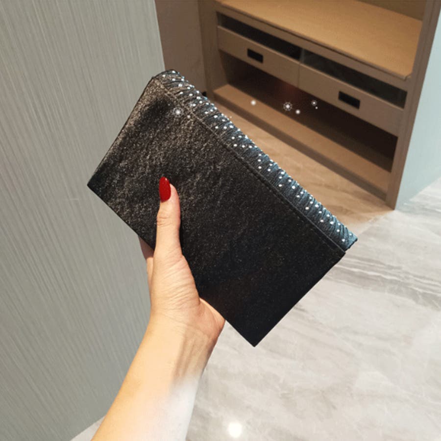 繊細なラインストーンが派手になり過ぎず、フォーマルシーンなどでもドレスの引き立て役にピッタリのクラッチバッグ