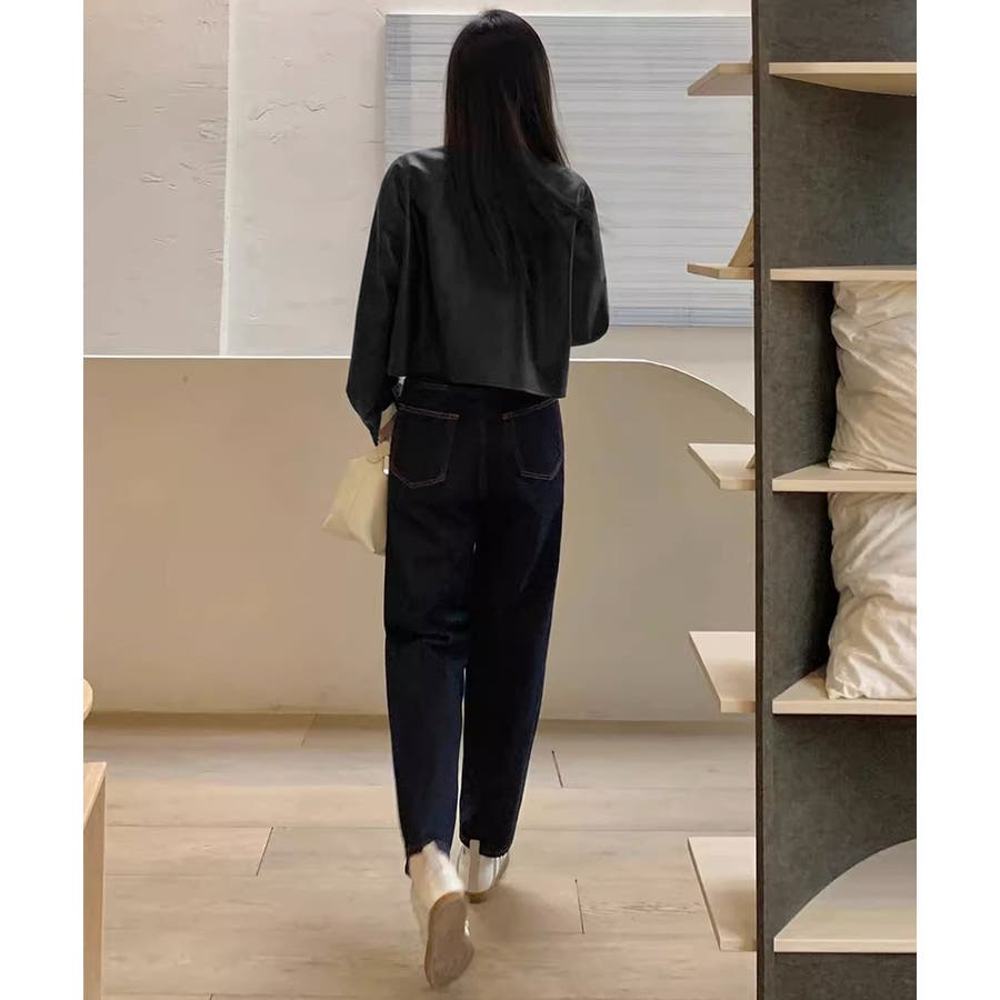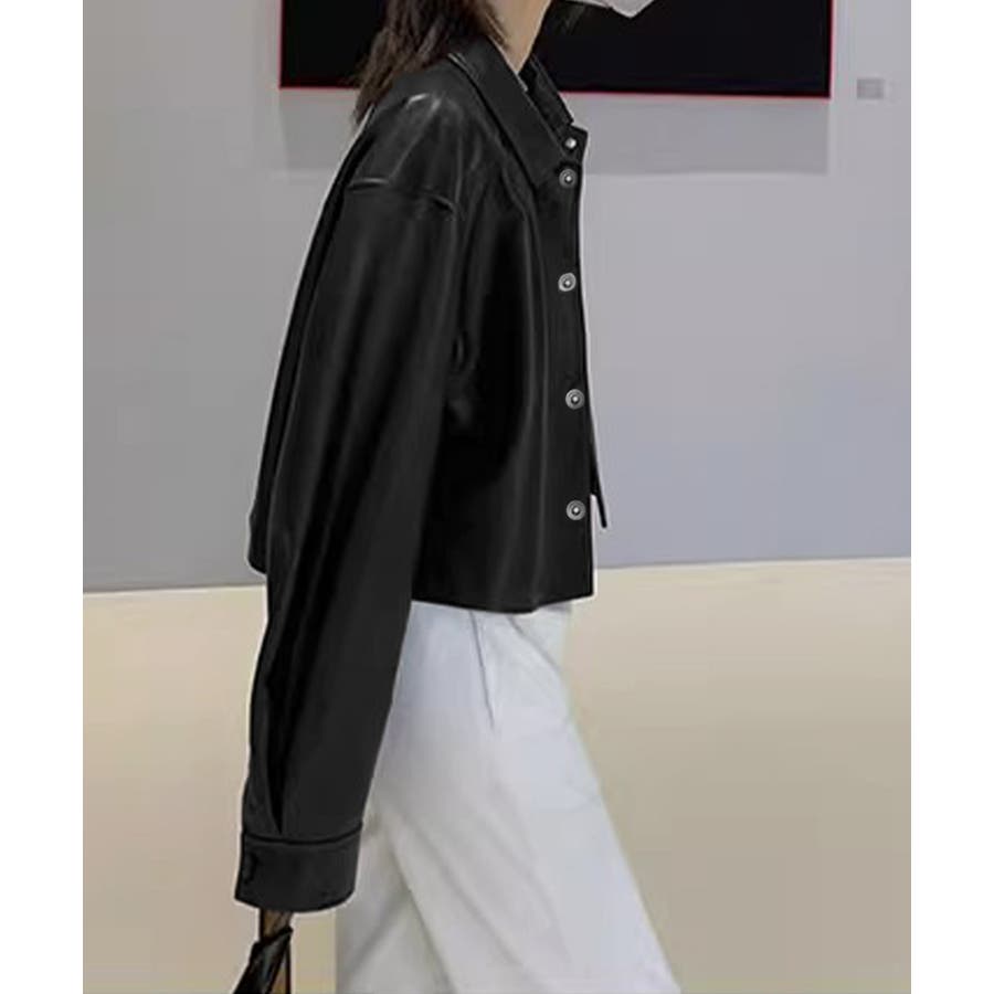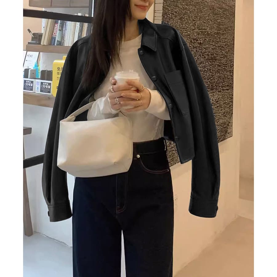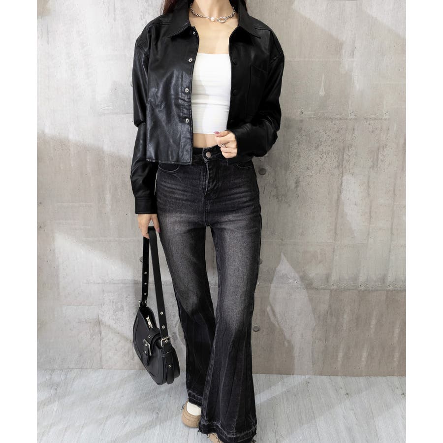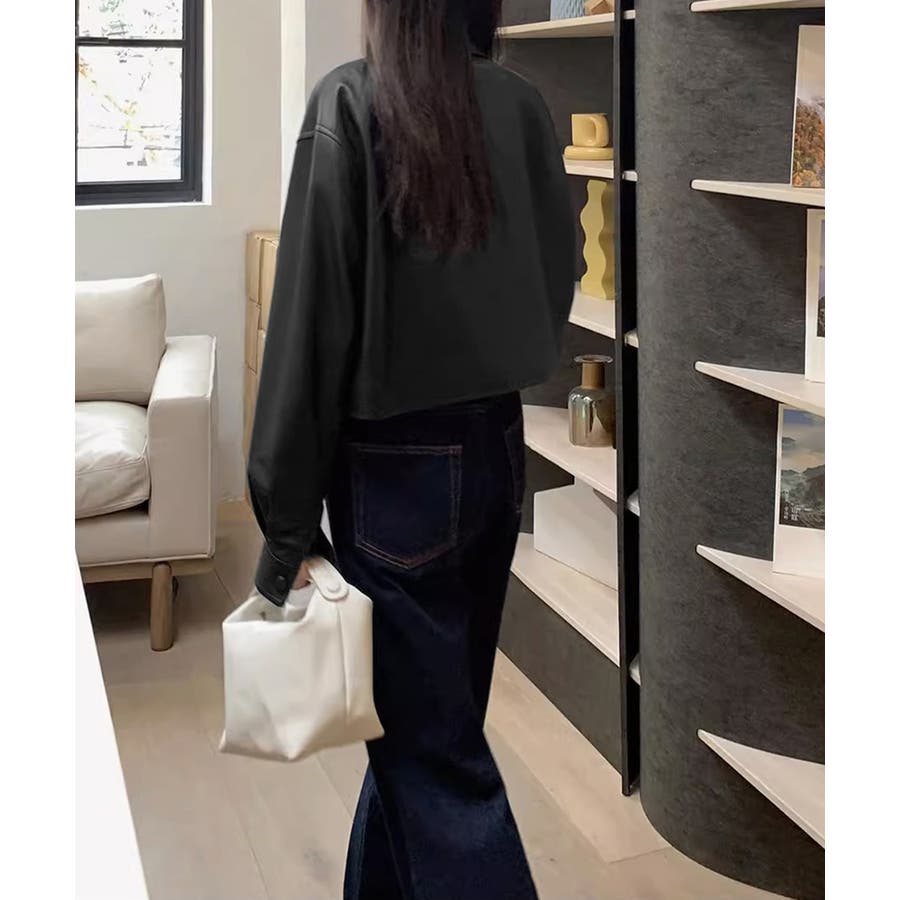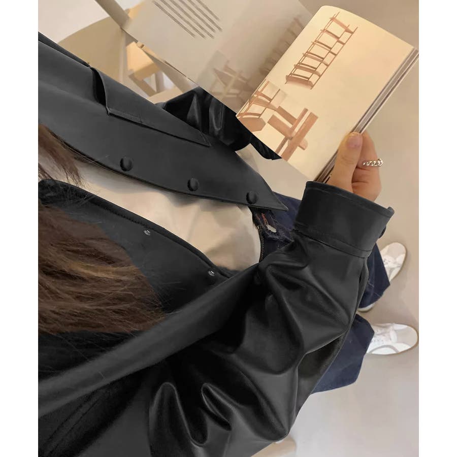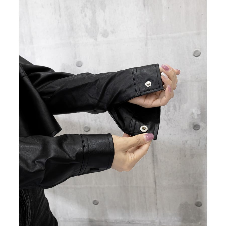 すっきりしたシルエットでシャープな印象の、ショート丈フェイクレザージャケットが新登場。